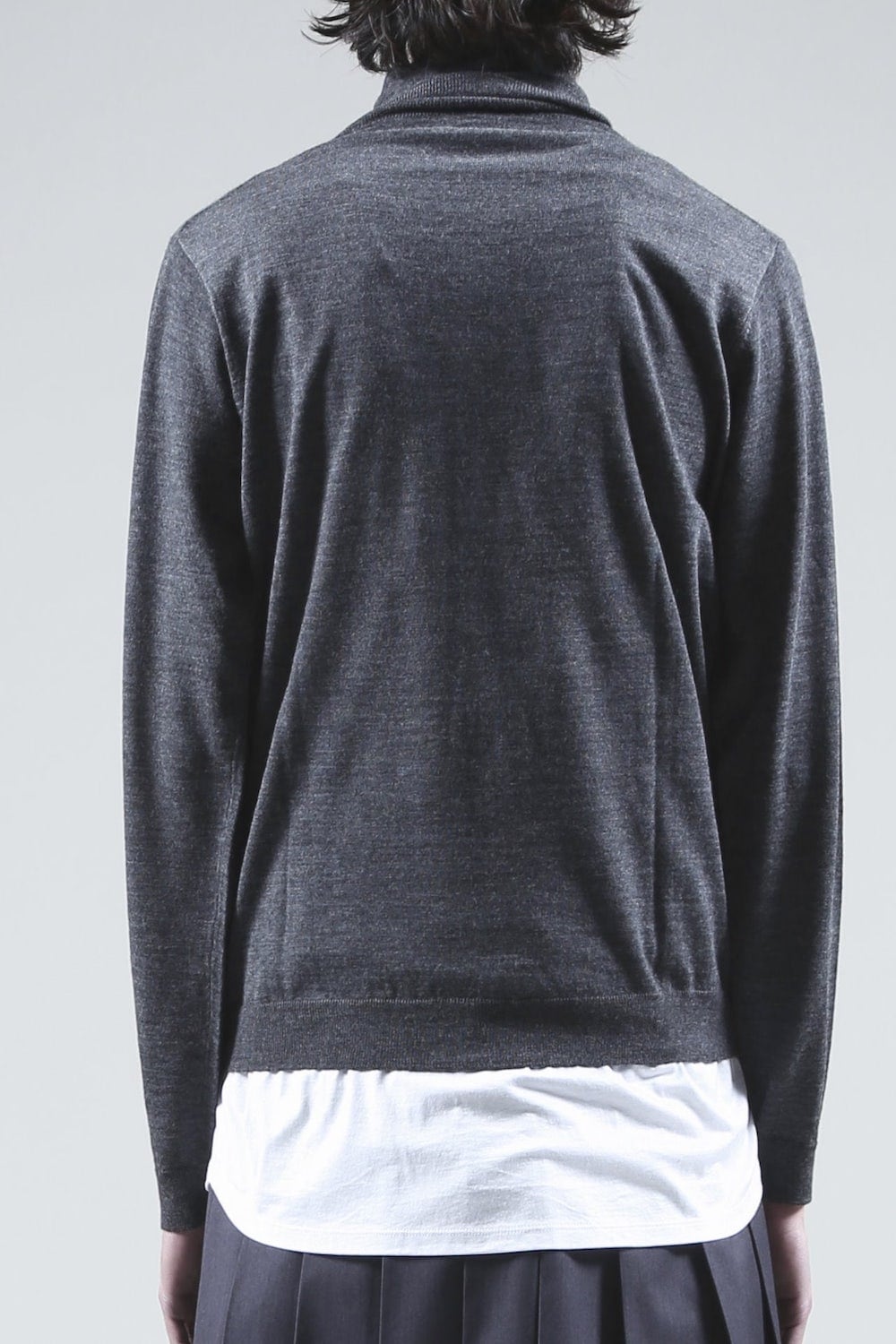 ハイゲージ(14G)のメリノウールを使用し編み上げた上質ニット。タートル部分にGマーク刺繍入り。