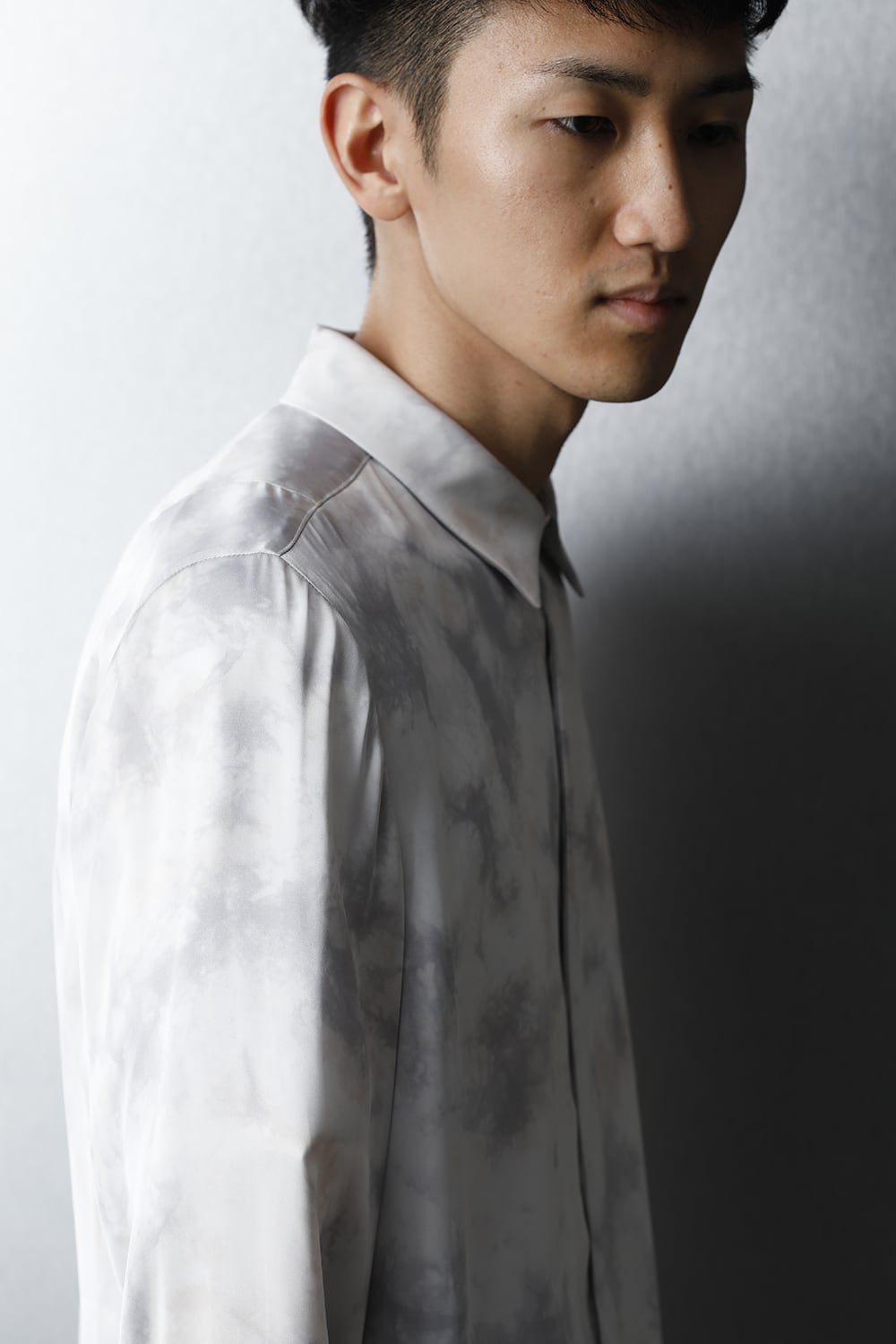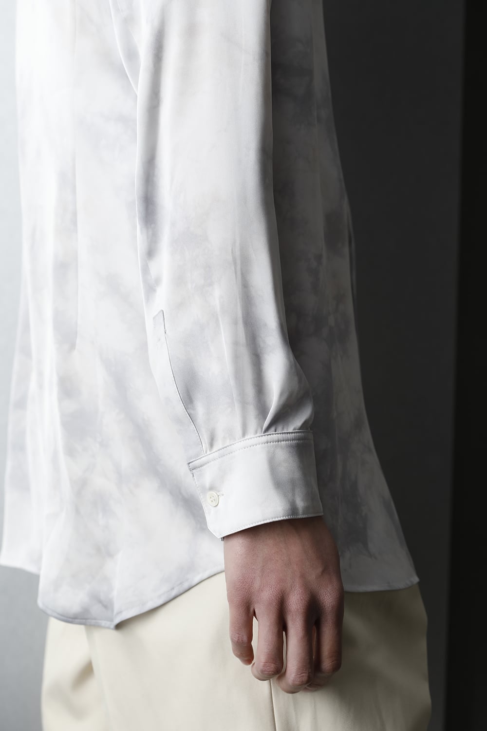 落ち感があり、肌触りのよいサテン素材に絵画のような雰囲気が漂う大理石(マーブル)柄をプリント。