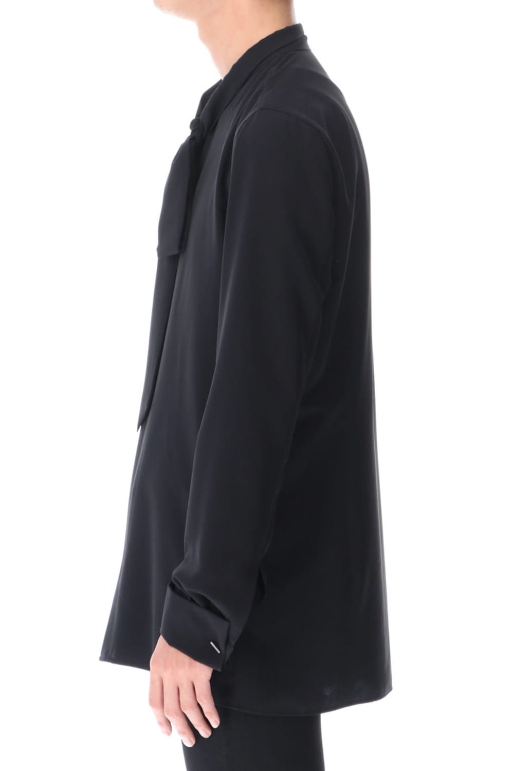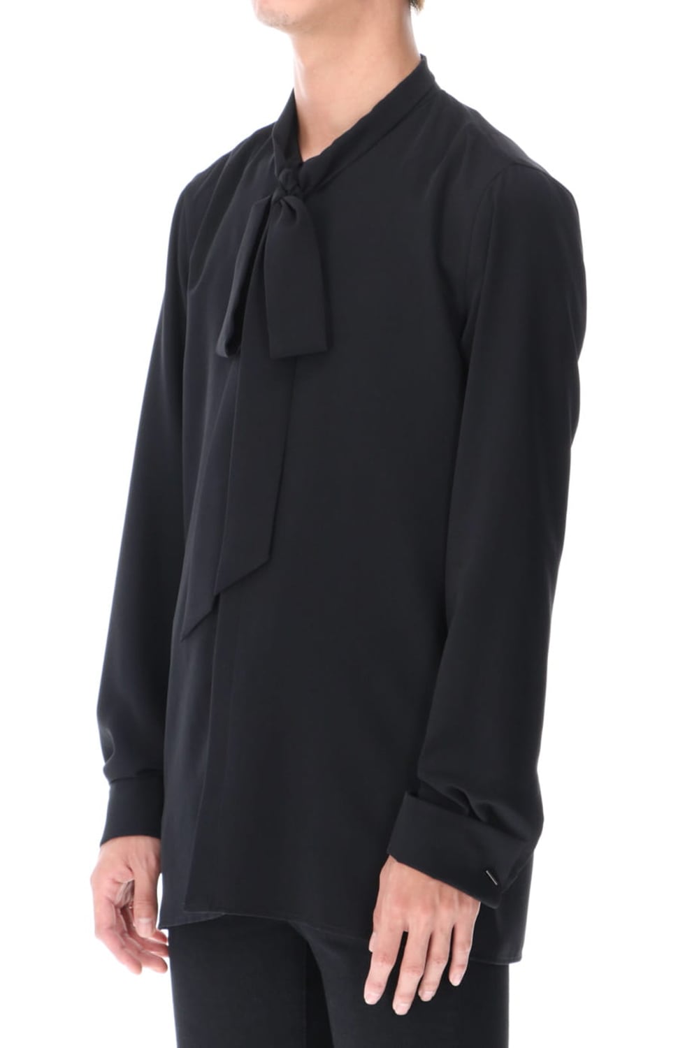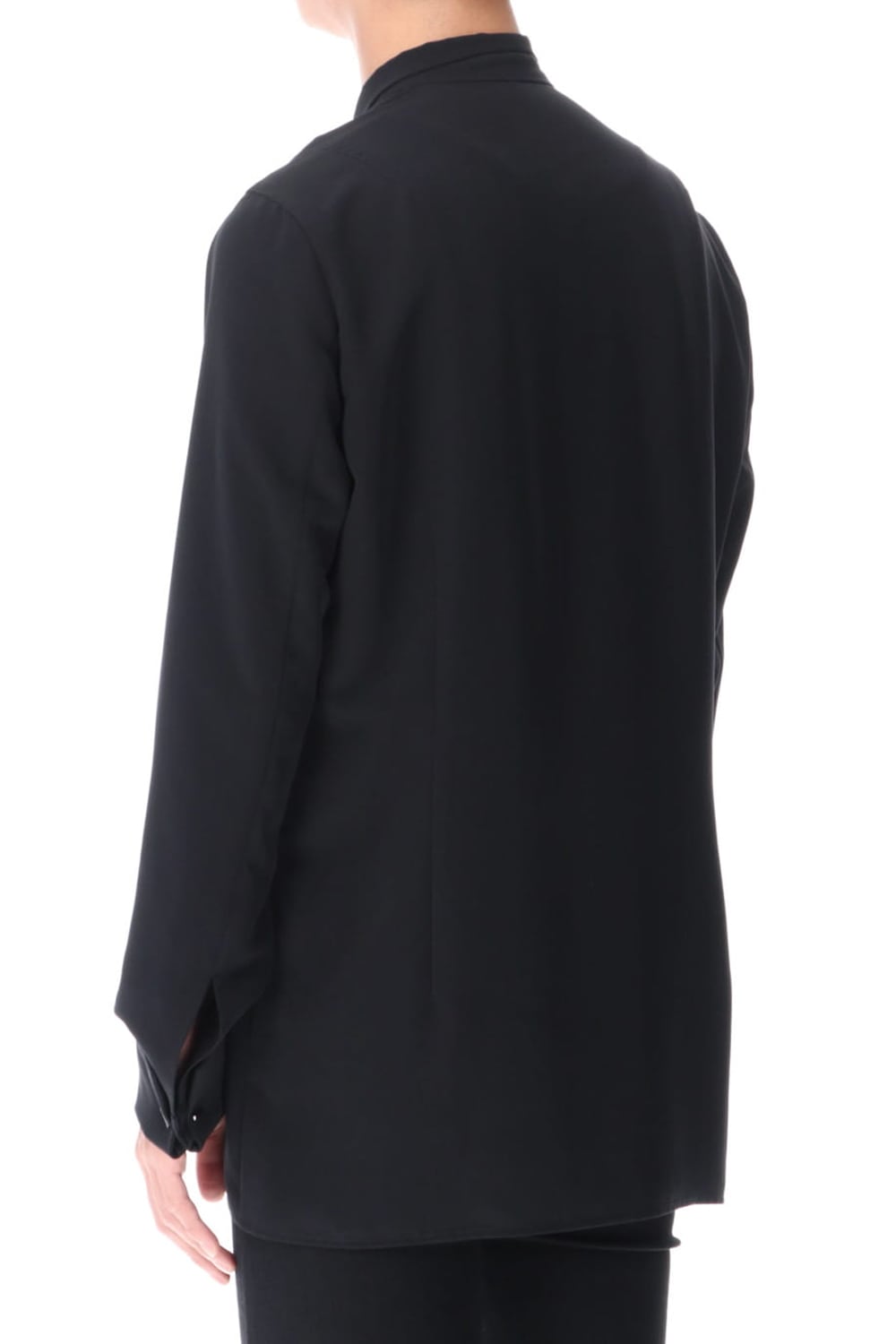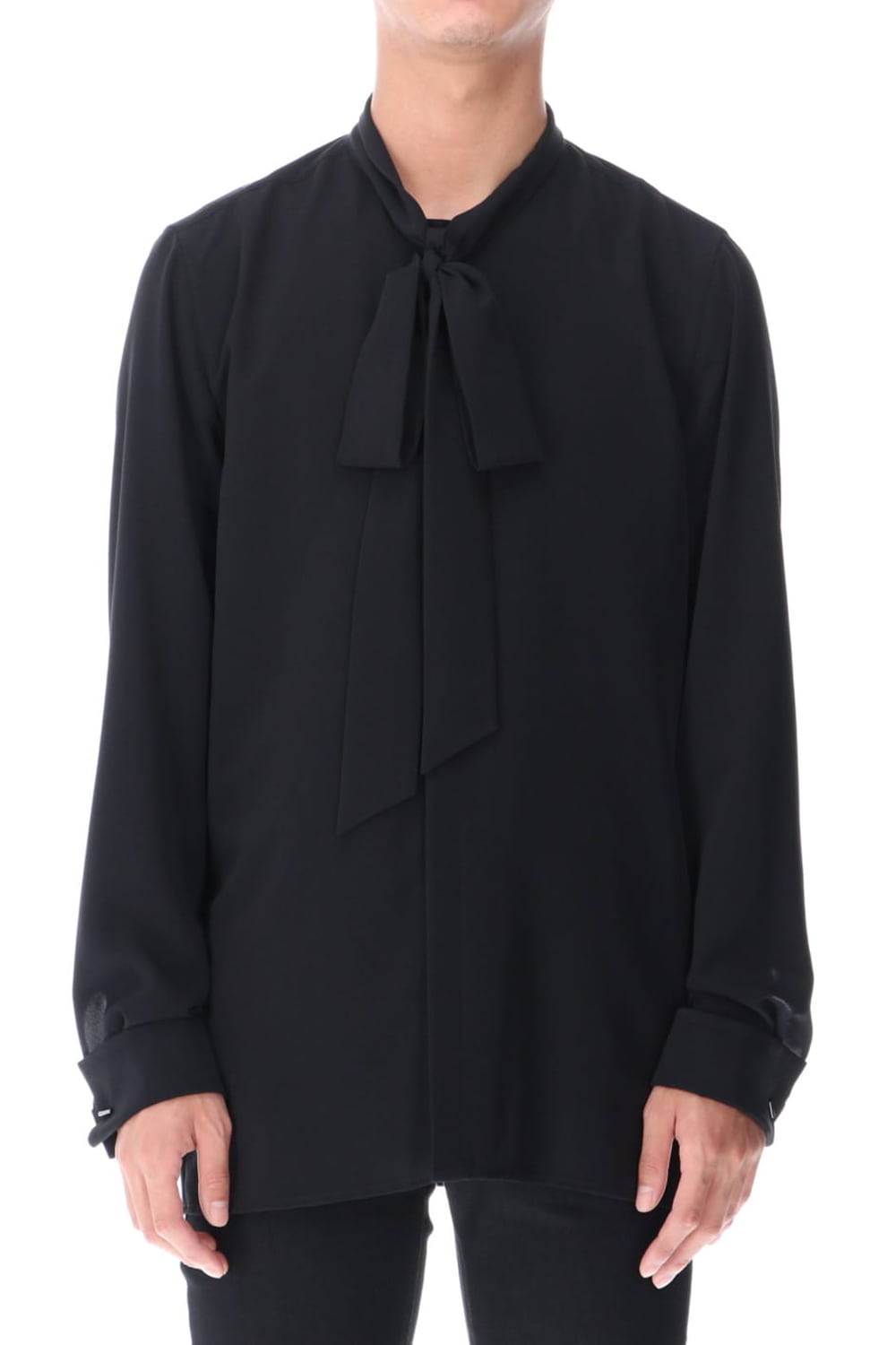 ミニマルで美しいデザインのシャツにリボンが加わることでフェミニンな印象に。