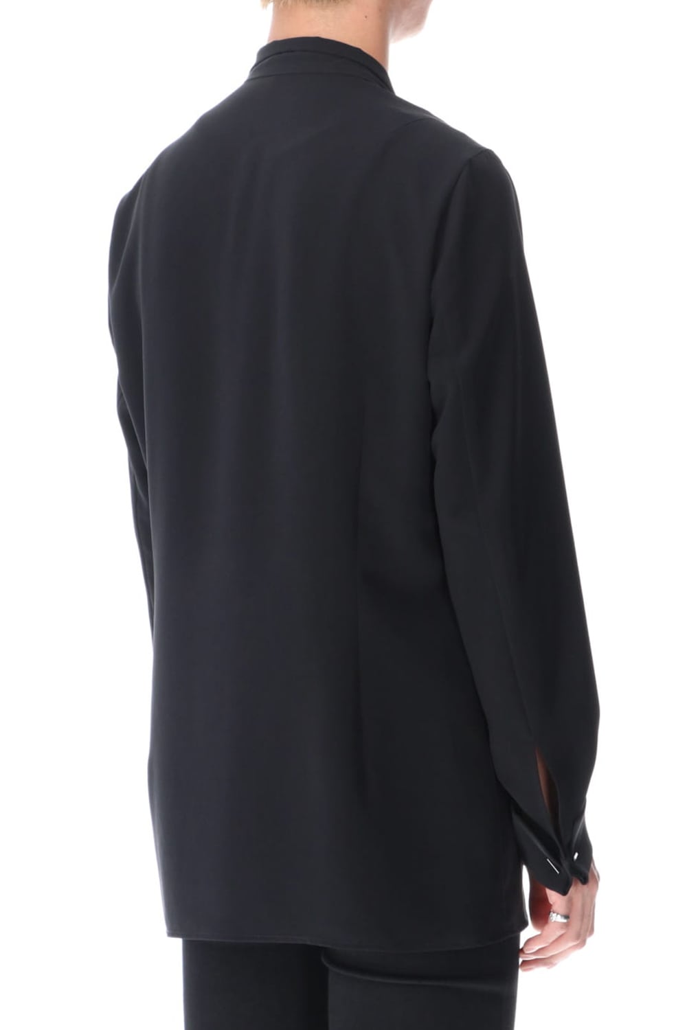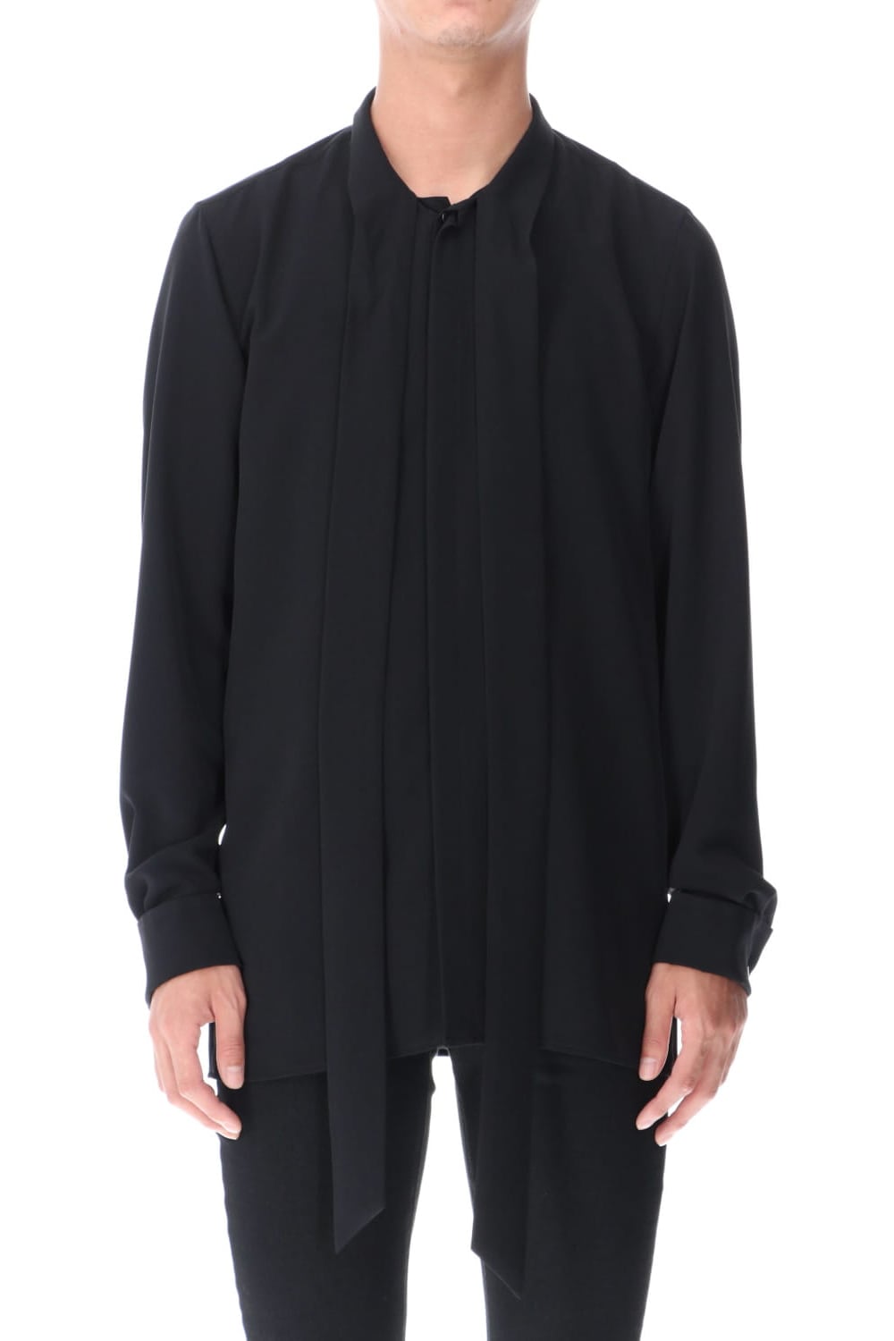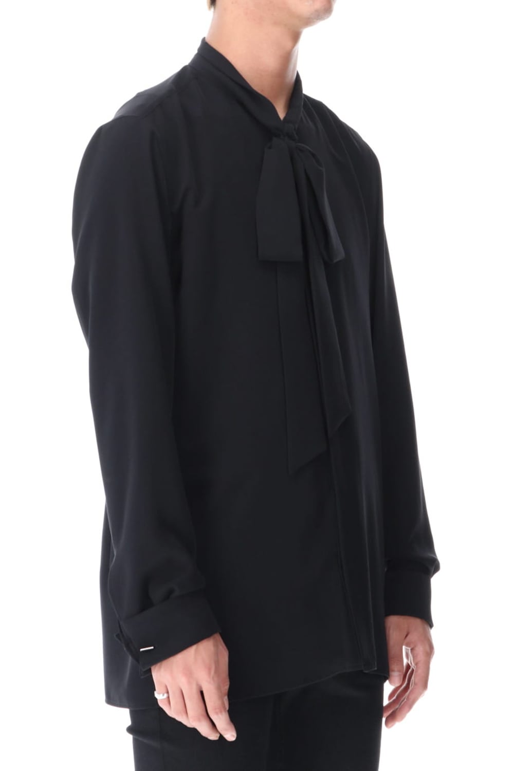 ミニマルで美しいデザインのシャツにリボンが加わることでフェミニンな印象に。