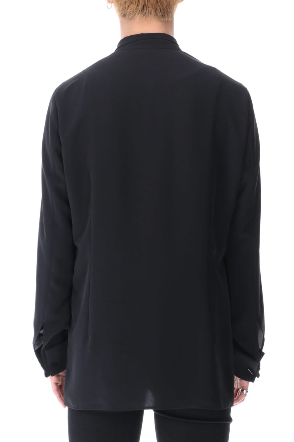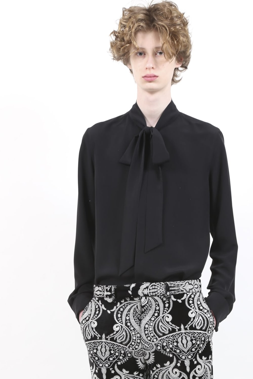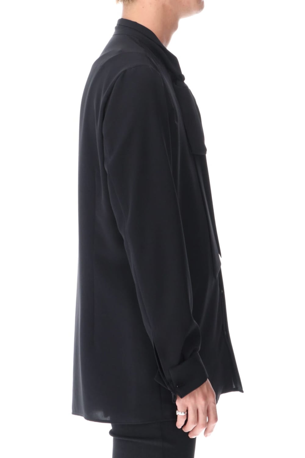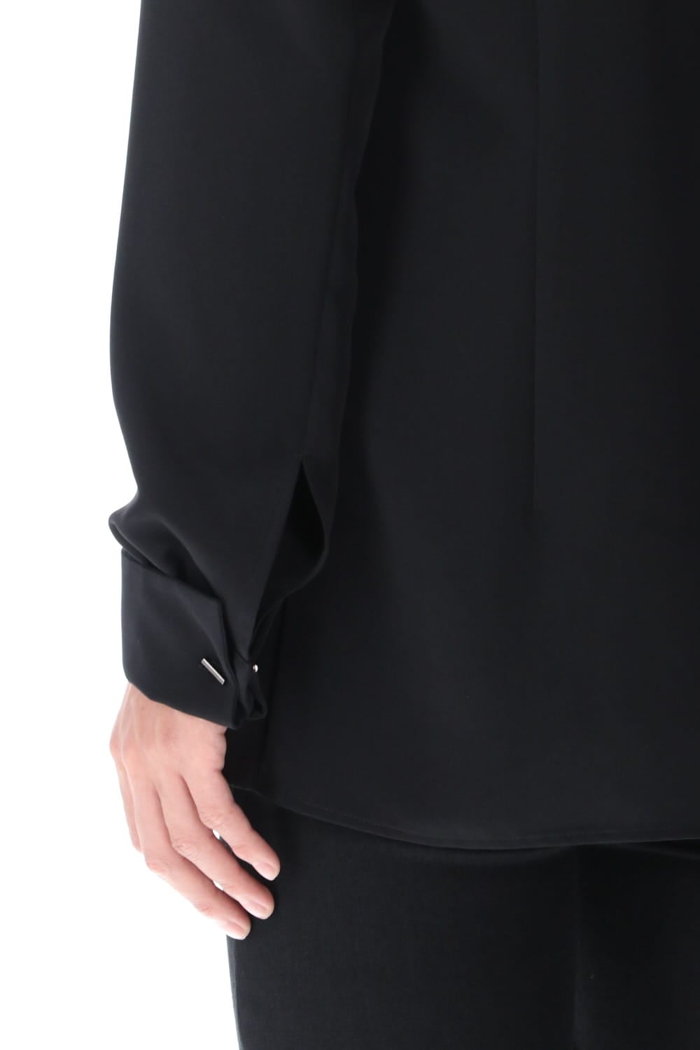 ミニマルで美しいデザインのシャツにリボンが加わることでフェミニンな印象に。