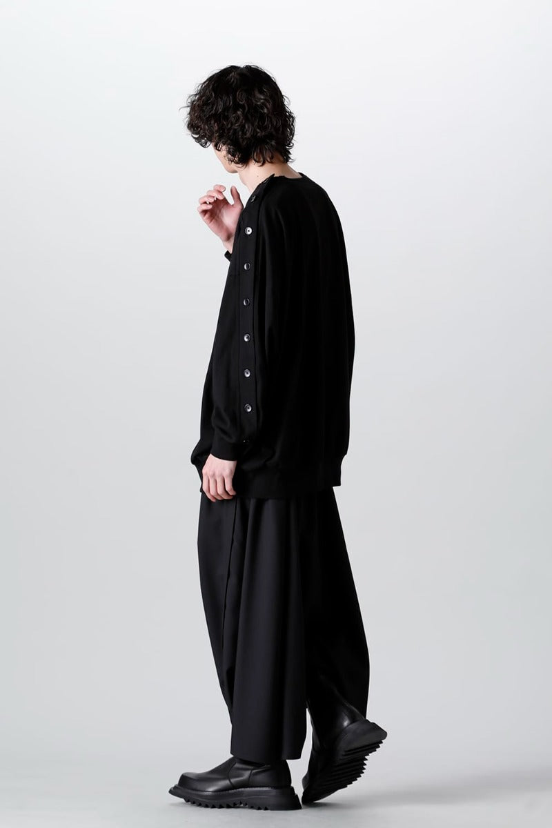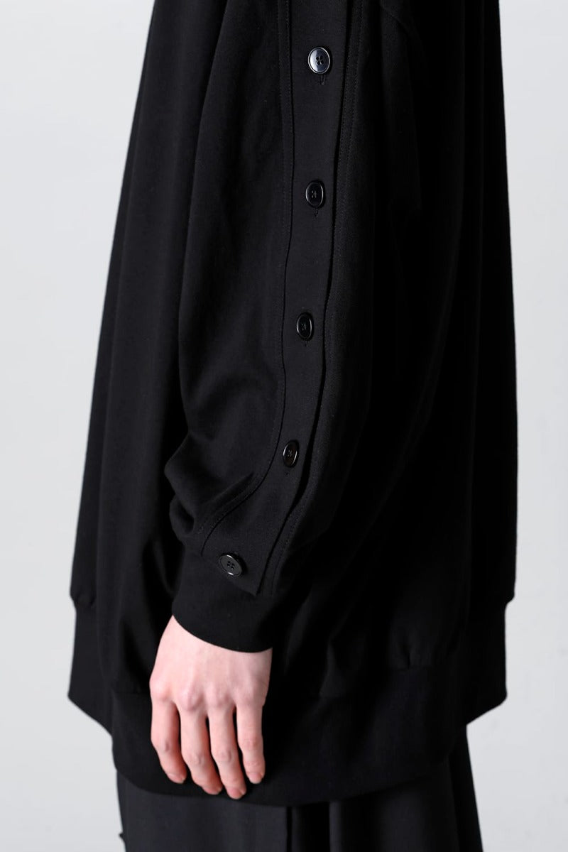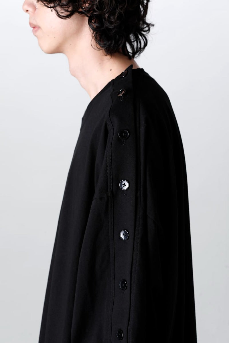 左肩から袖口までと右前裾には釦開きのスリット付きで、開閉が可能となっています。