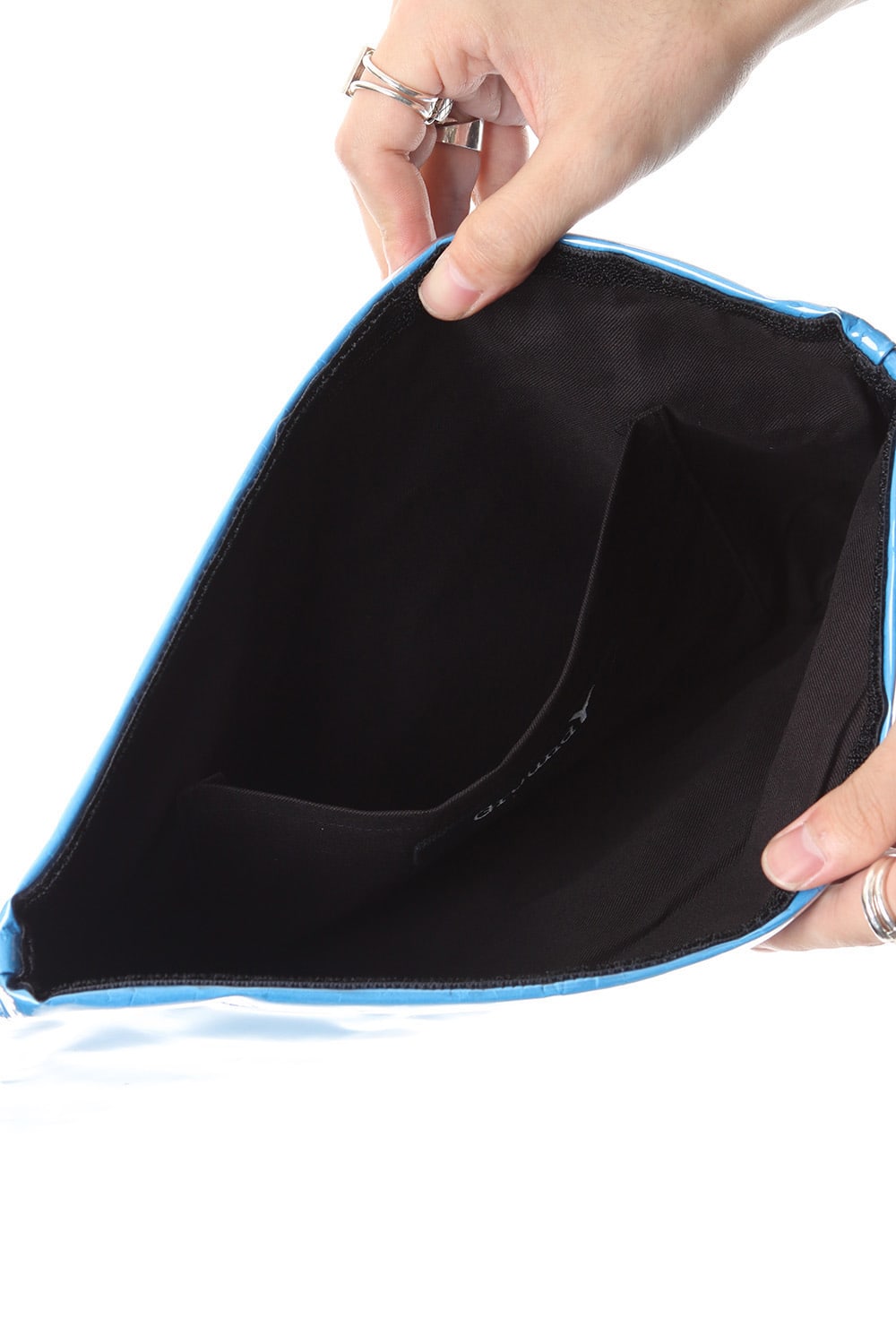 紙でできたクラッチバッグをビニールで覆ったデザインのクラッチバッグ。