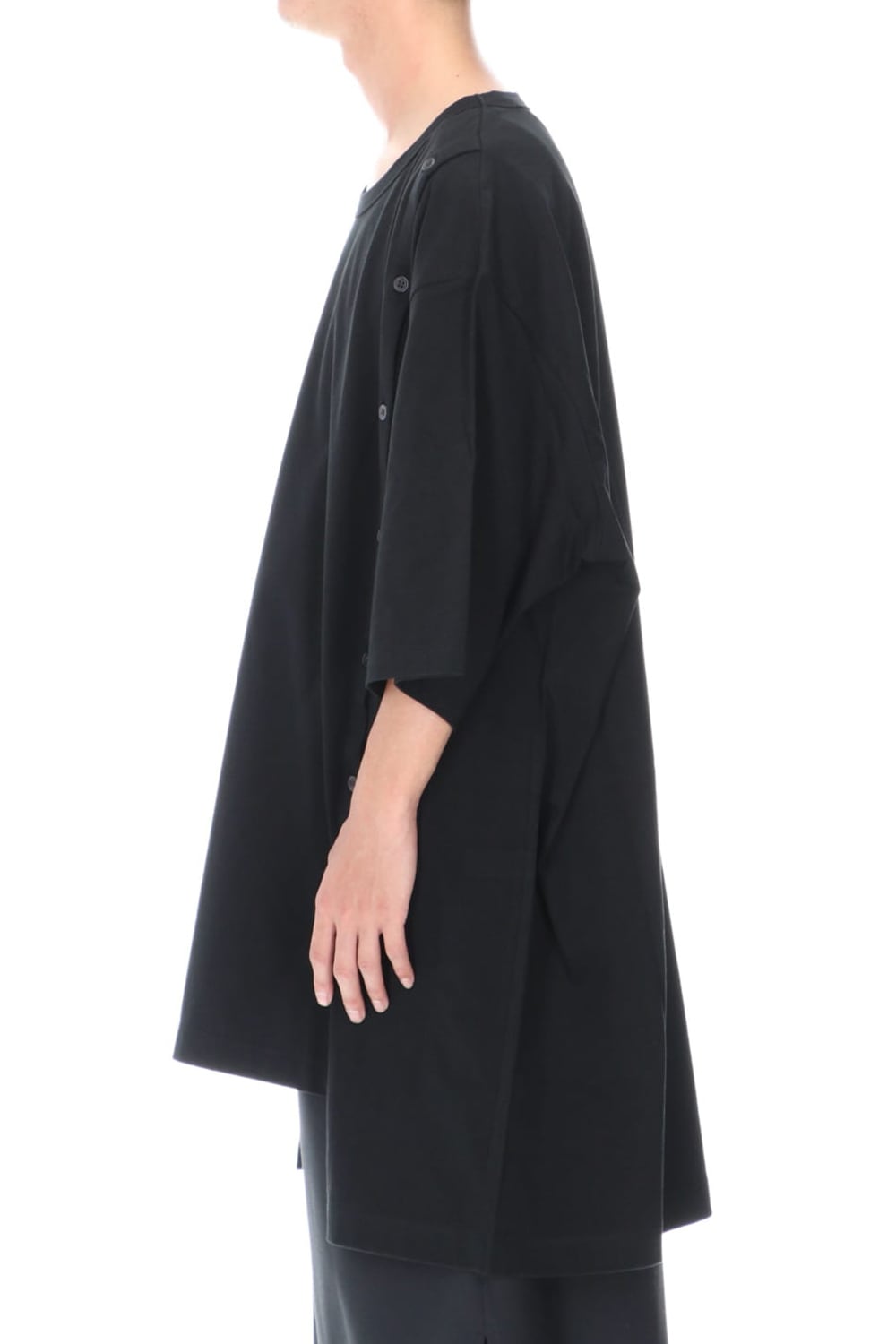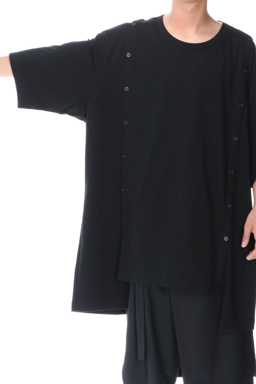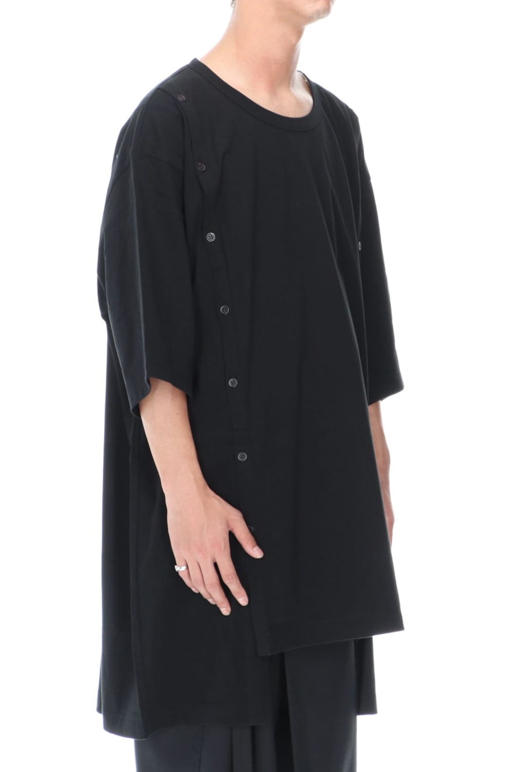 ジャージー オープン ボタン ショートスリーブ ジャンボ T ブラック
