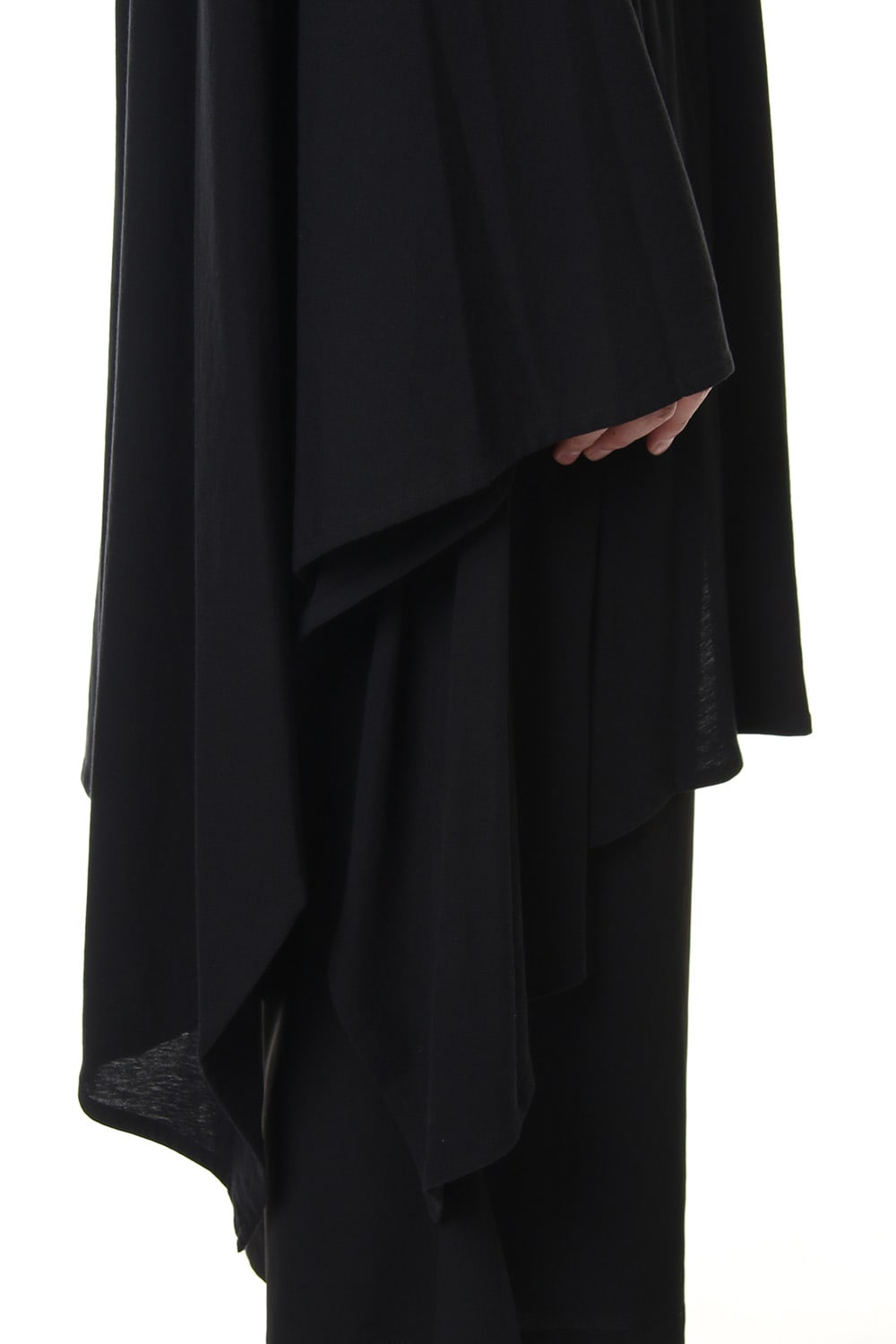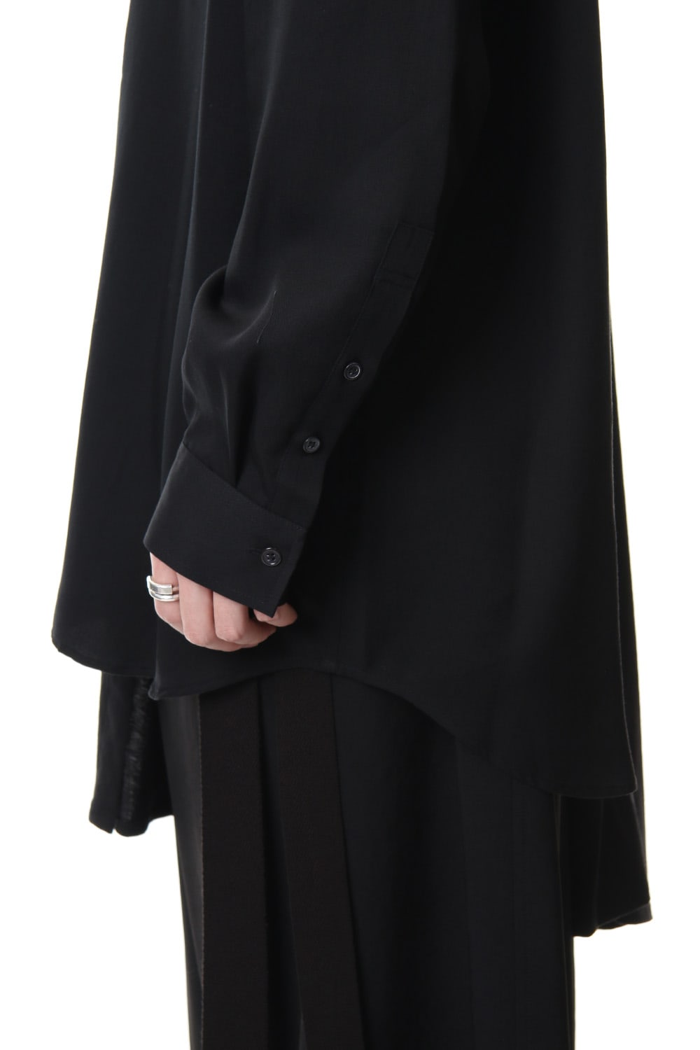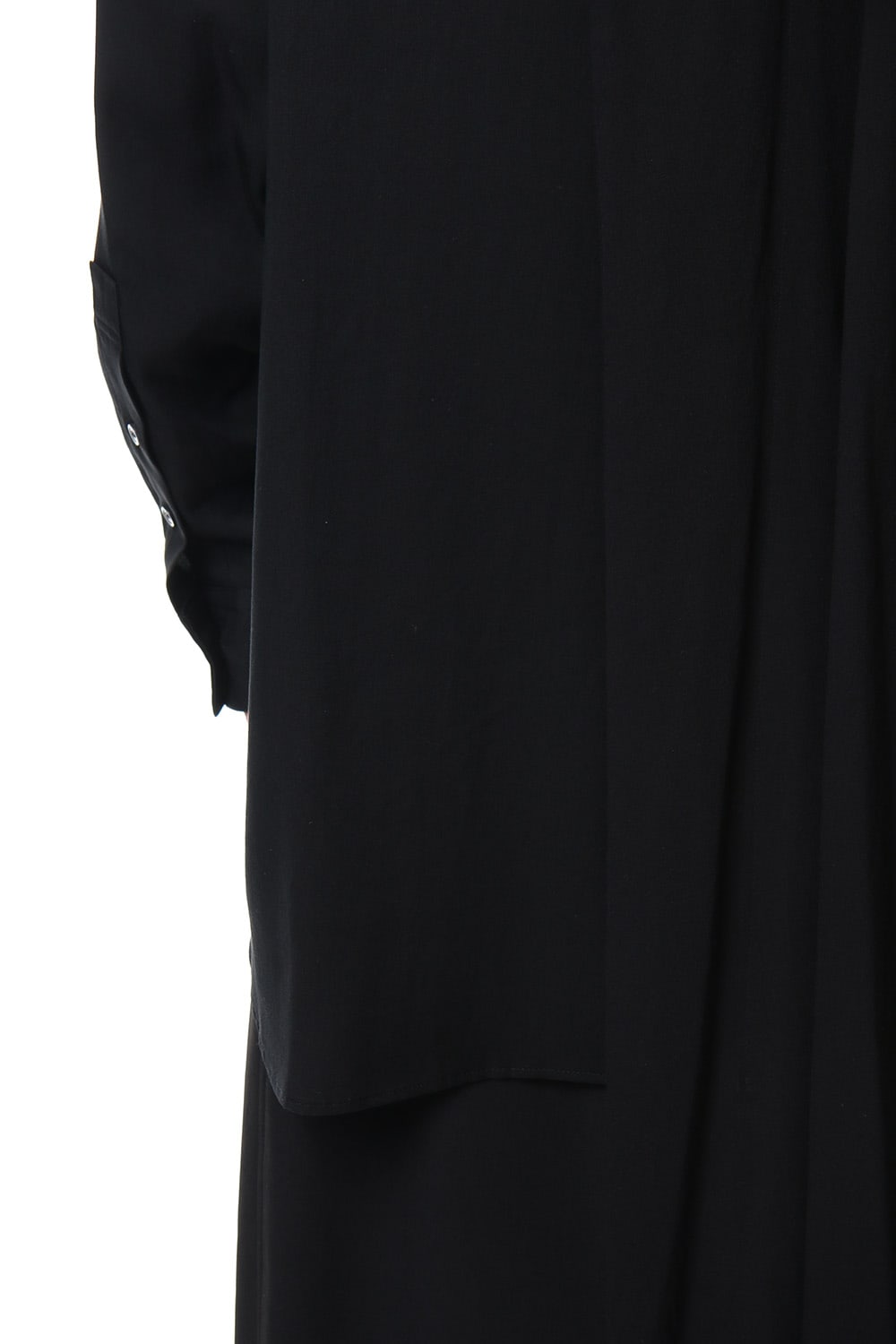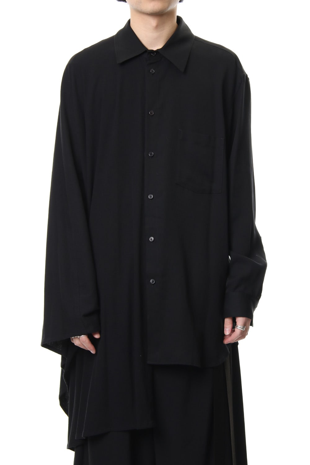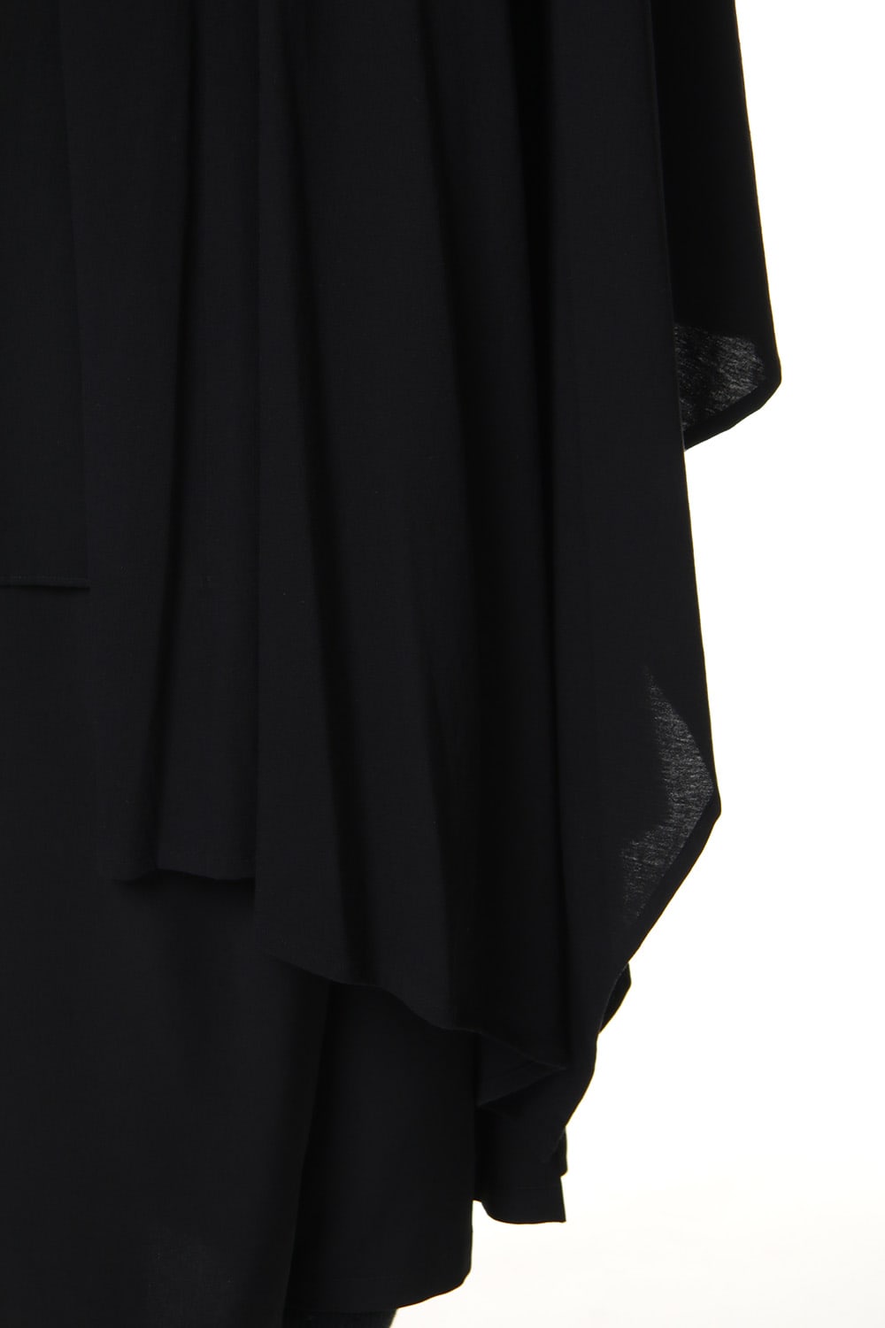 左半身シャツ、右半身マントにし、それぞれ異素材のテンセルとコットン生地を使用しドッキングマントシャツ。