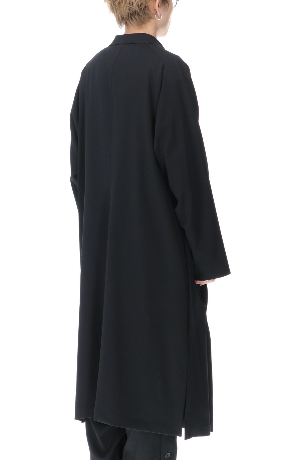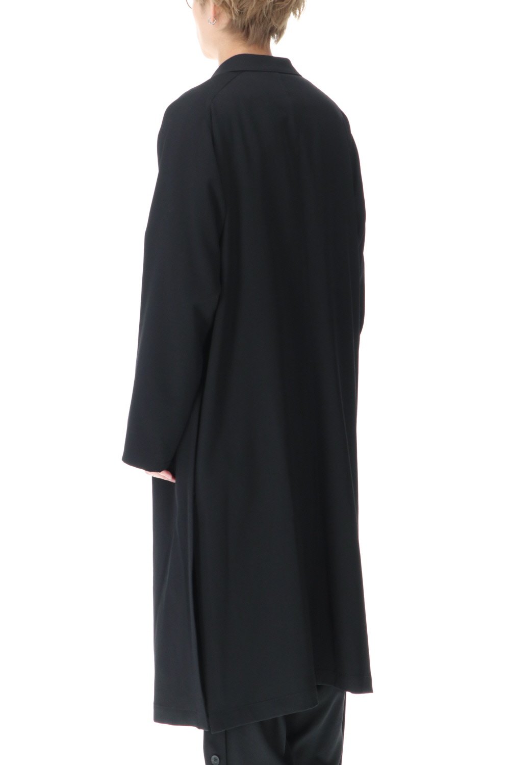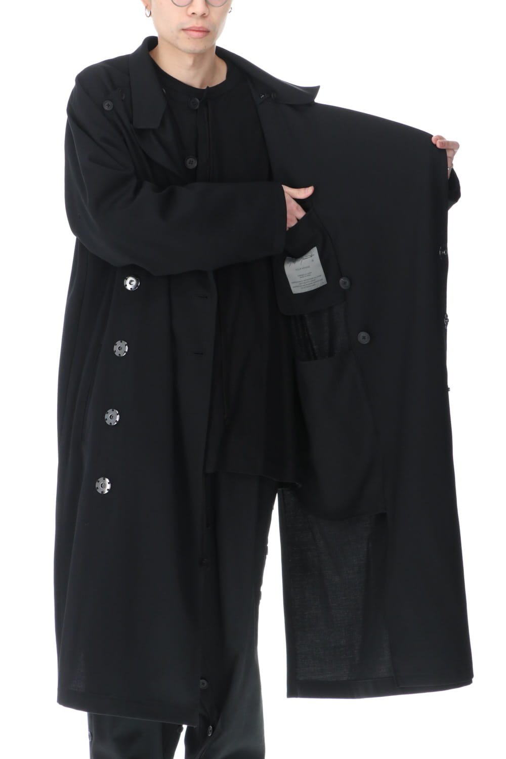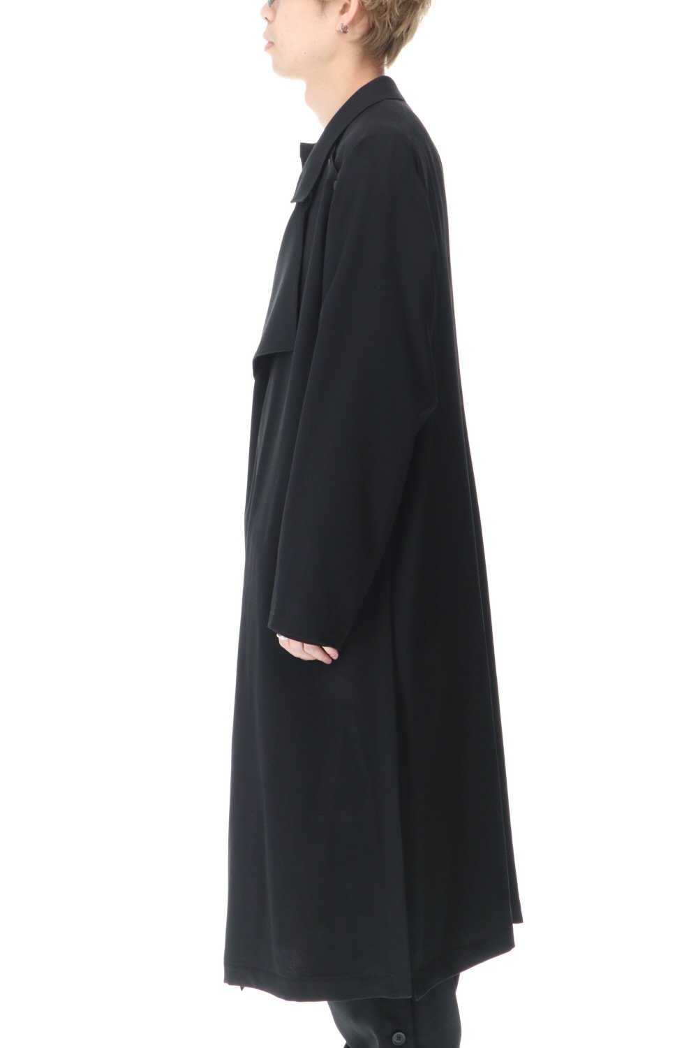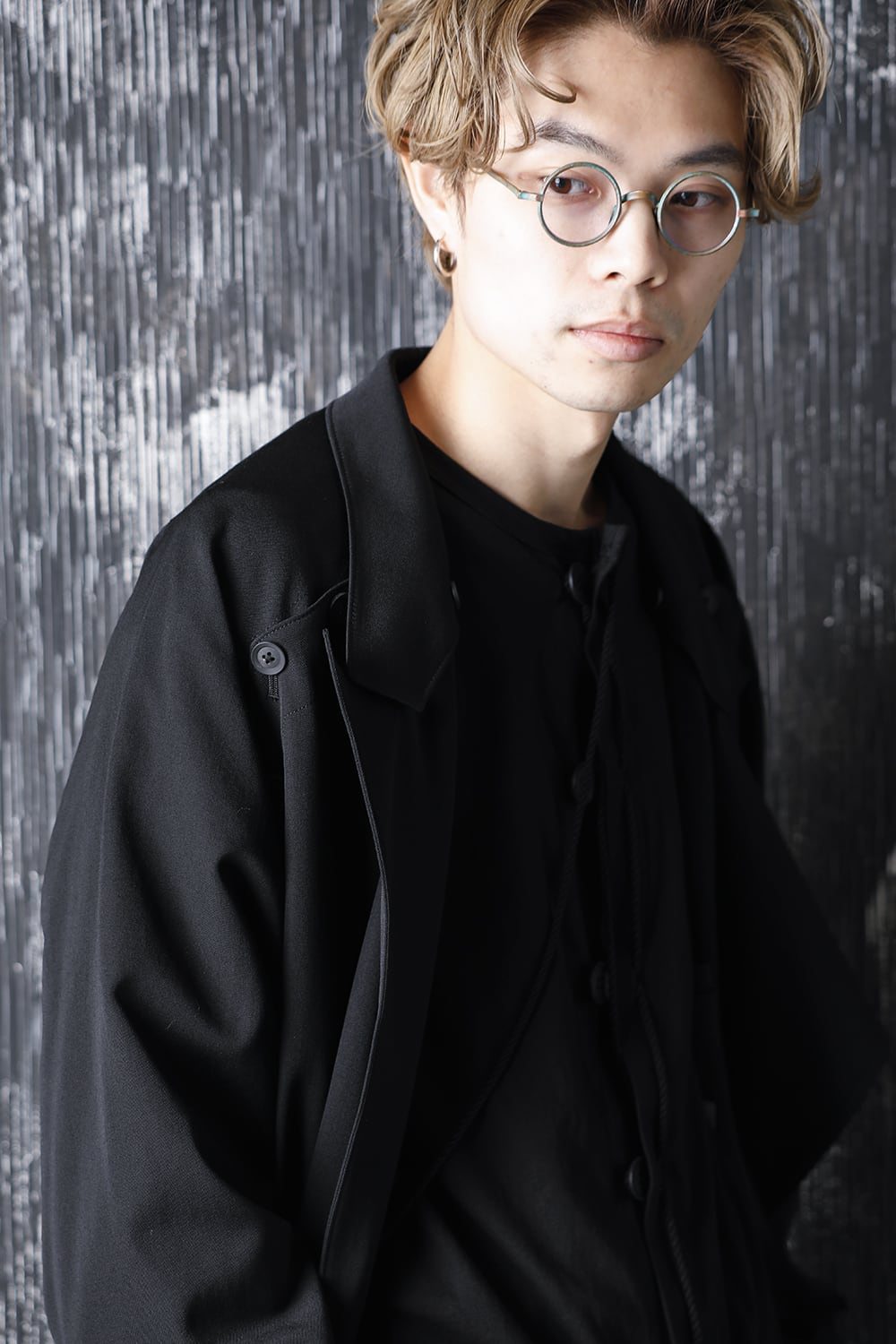 アシンメトリーなフロントデザインが特徴的な変形コート。 ラグランスリーブの前袖部分から脇線を通ってボタン開閉が可能となった自由自在な変形機構が楽しめるデザインコート。 素材は同ブランド定番のウールギャバジンを使用。 分解デザインが目立った今シーズンのコレクションらしいアイコニックなデザインです。