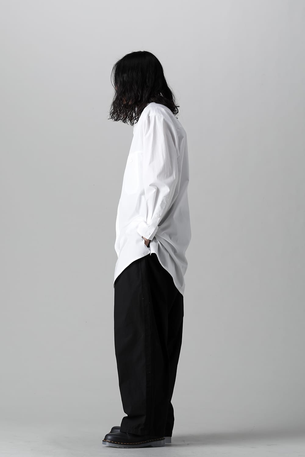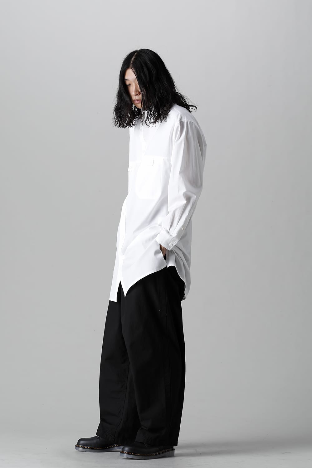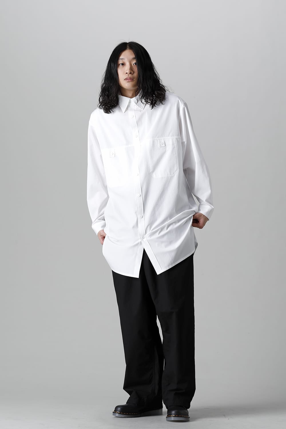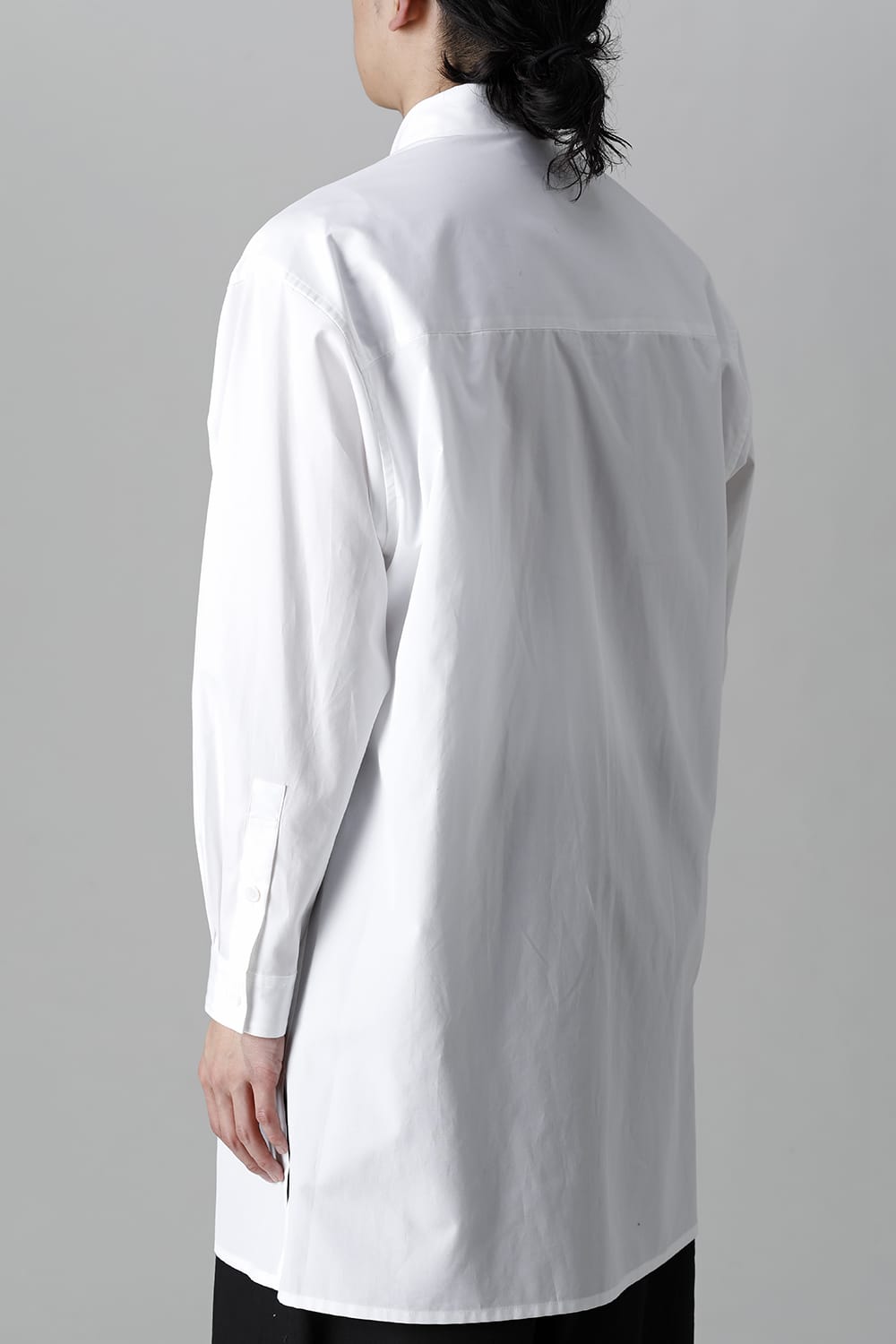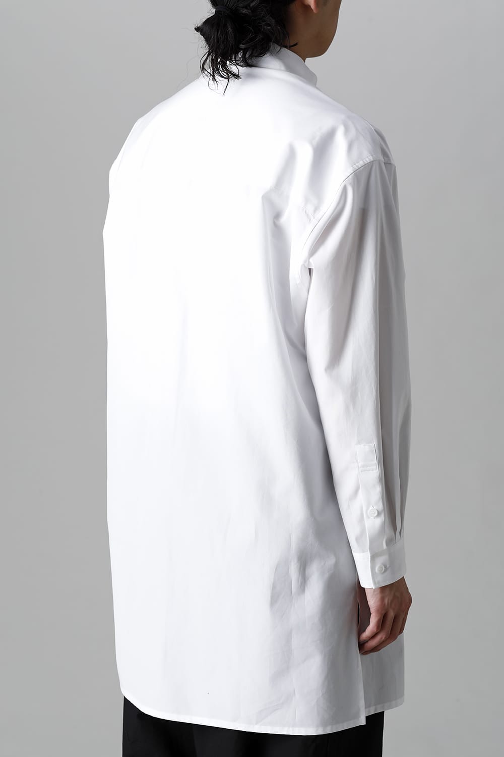 フロントの切り替えデザインとポケットがアクセントとなったコットンブロードのミドルレングスシャツ。ハリのあるコットン素材が同ブランドの定番素材であるウールギャバとの相性が良い定番トップスです。インナーからトップスまで通年で扱えるアイテムですので、まず一着同ブランドの定番インナーを手に入れたいという方にご覧いただきたい一着です。