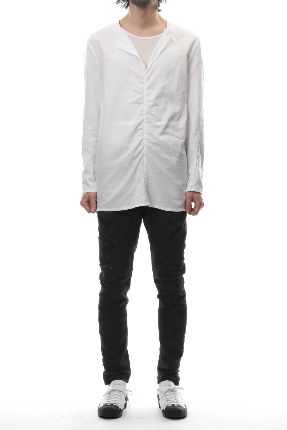 17 2ndシーズンでも好評だったダストジーンズ。キックバックのパワーを最大限に出せれる糸に、最後の整理加工の縮率調整など、ストレッチの動きやすさ、ストレスを感じさせない生地に仕上がっています。加工は、スプレー加工、黒顔料染め、全ズリ、シェービング、次亜スプレー、汚し加工、立体、ベーキング等、複数の工程作業で独特の表情に仕上がった究極のパンツです。
