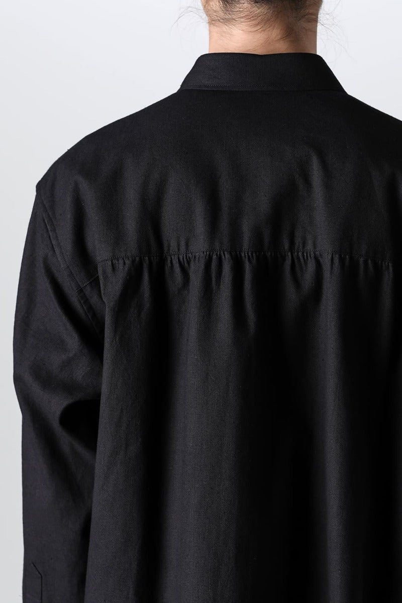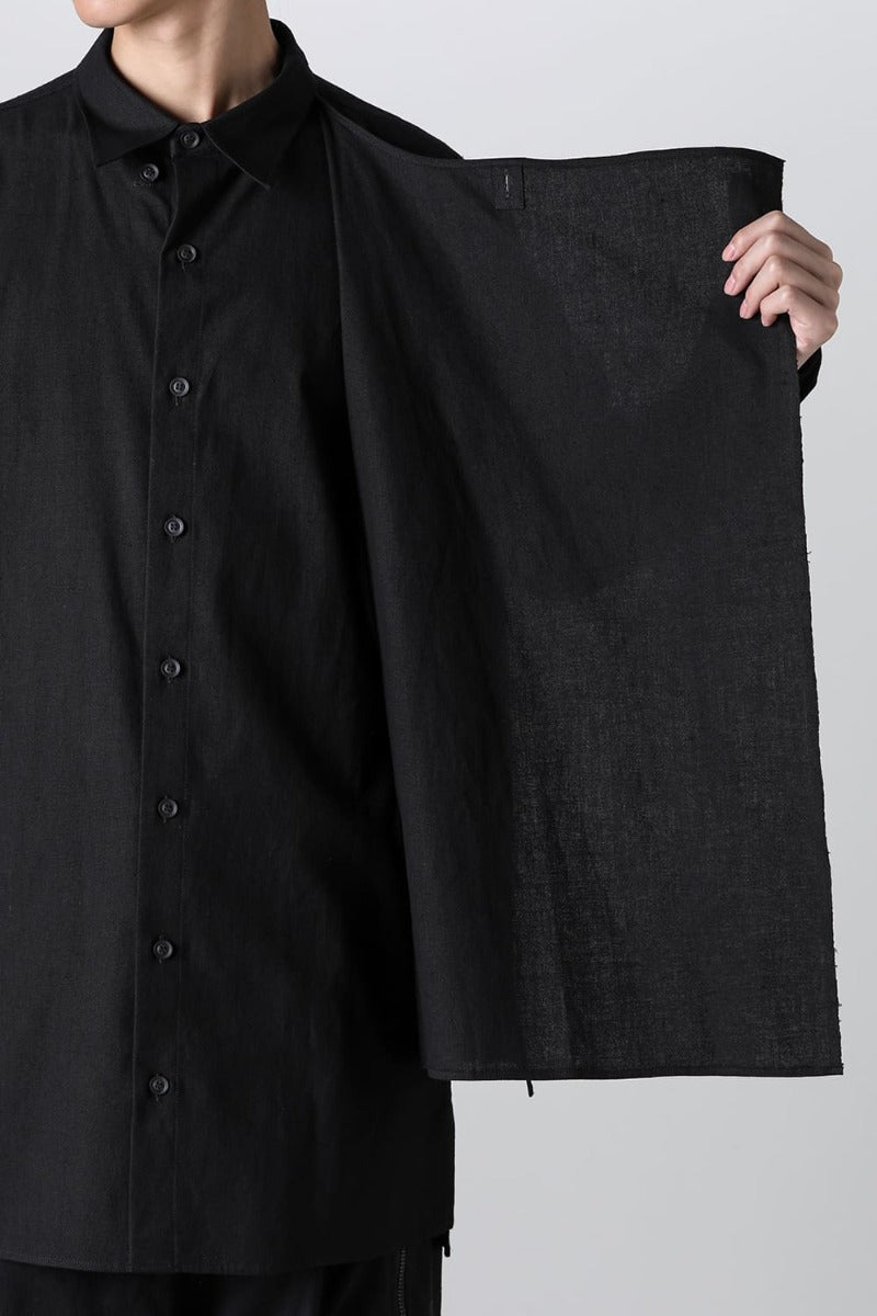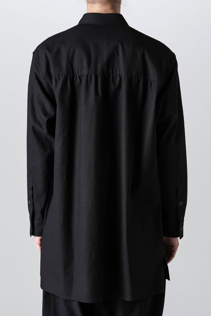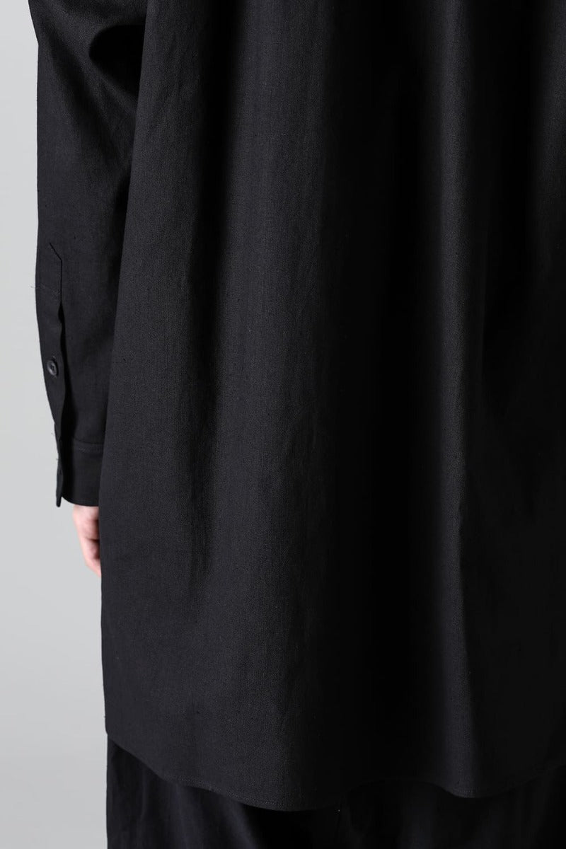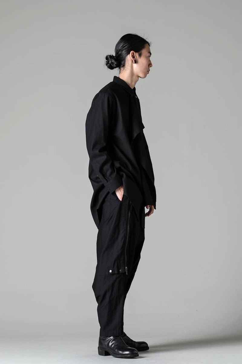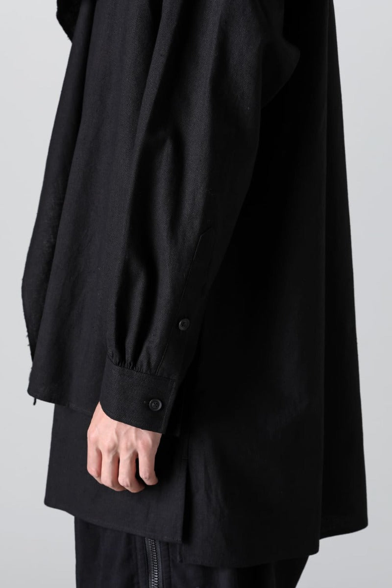 Yohji Yamamotoのシャツの定番生地としてもイメージが根強いブロード生地よりもドレープ性に優れ、荒目の織地と粗野な表情を楽しめる生地となっています。
