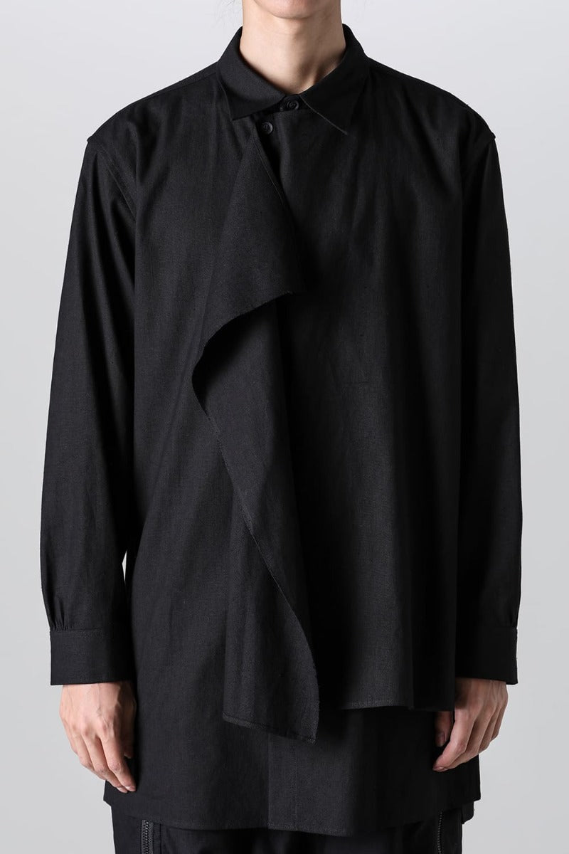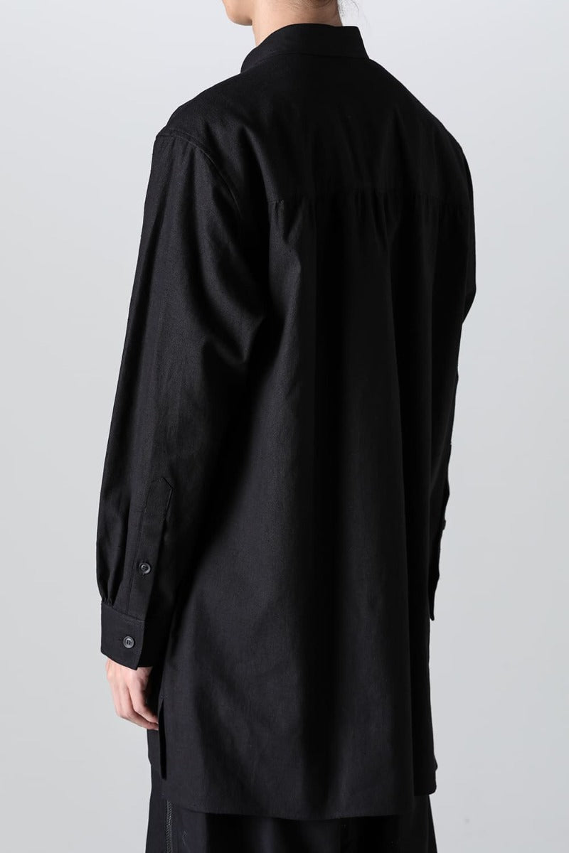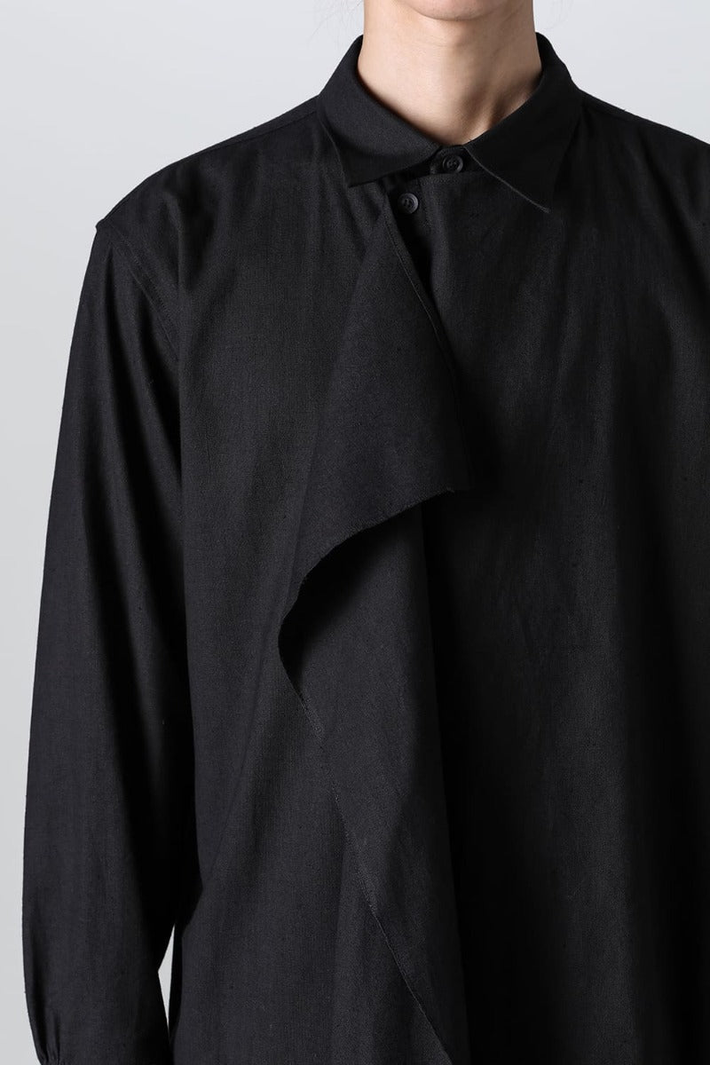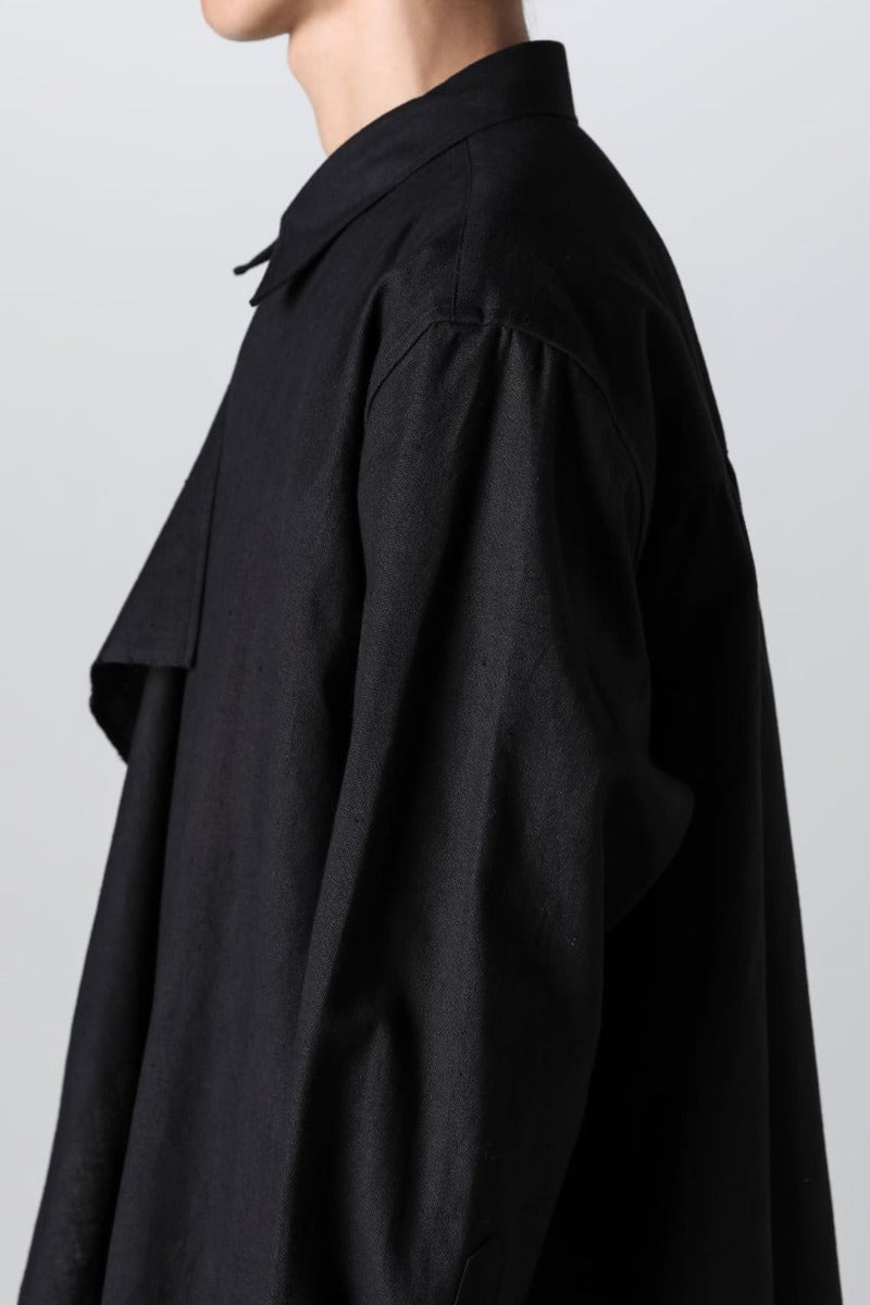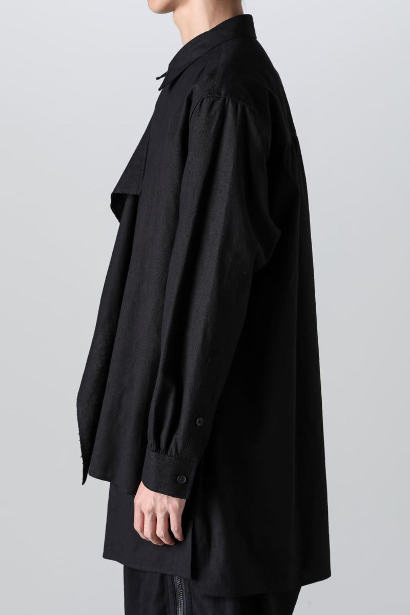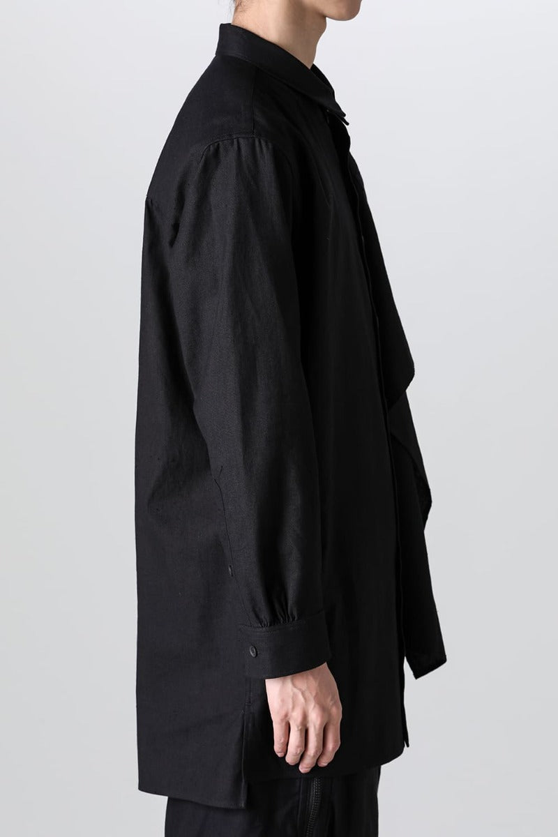 Yohji Yamamotoのシャツの定番生地としてもイメージが根強いブロード生地よりもドレープ性に優れ、荒目の織地と粗野な表情を楽しめる生地となっています。
