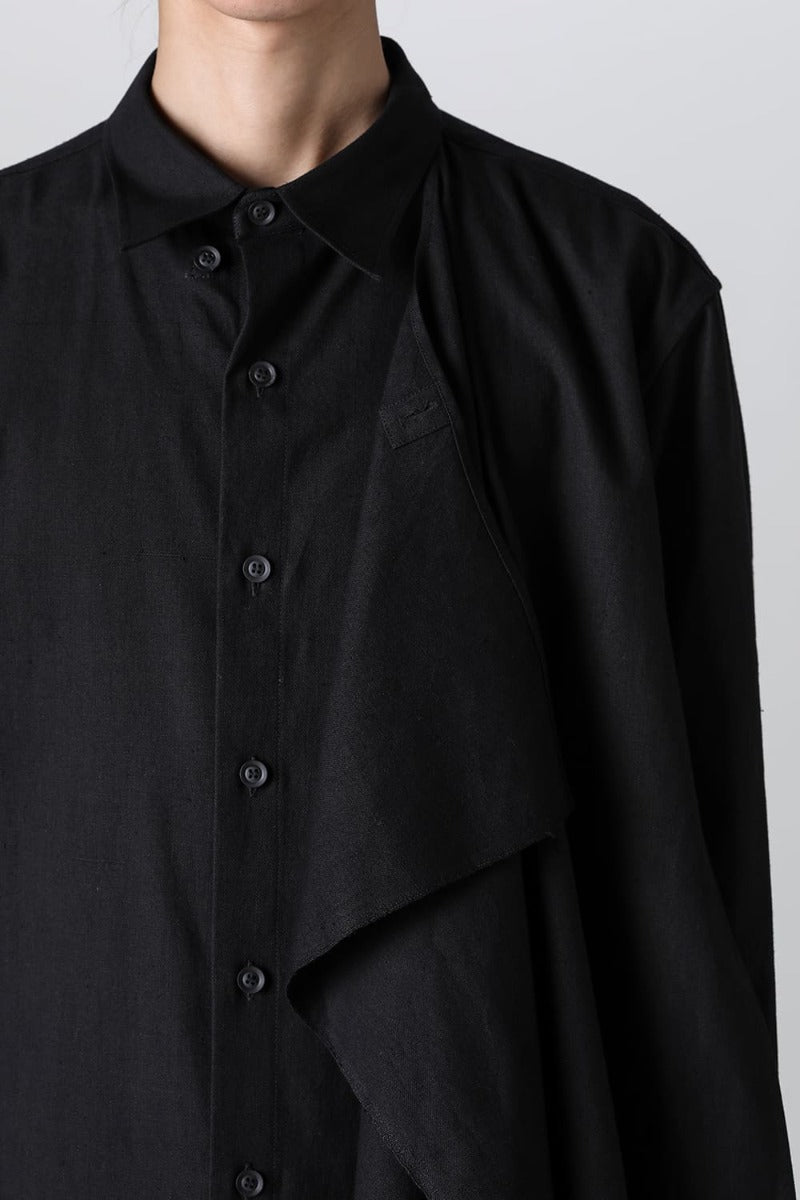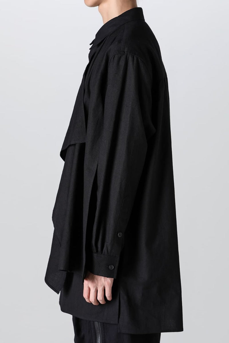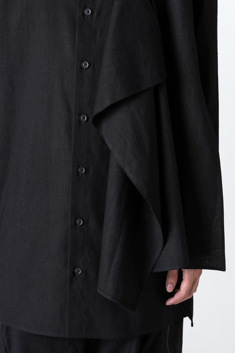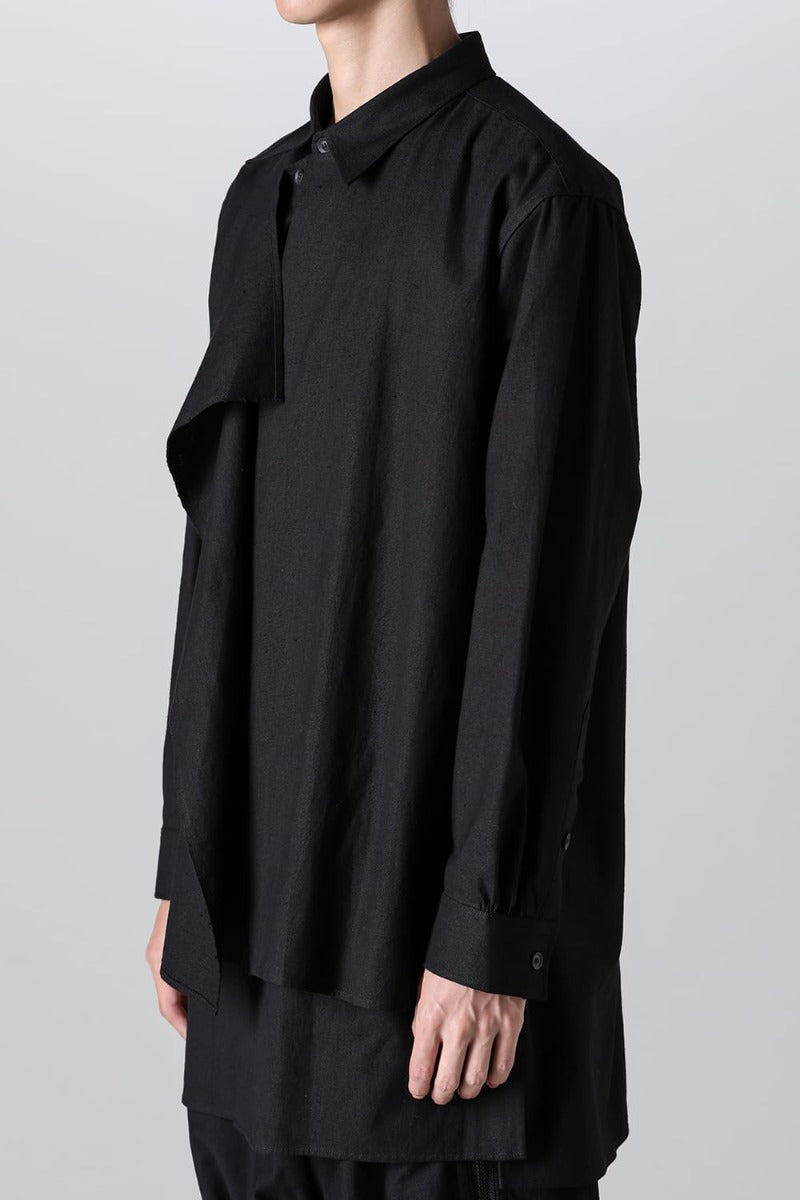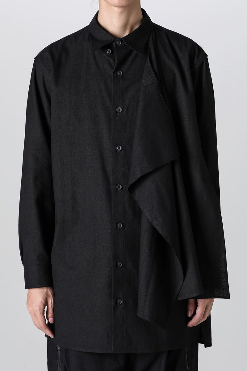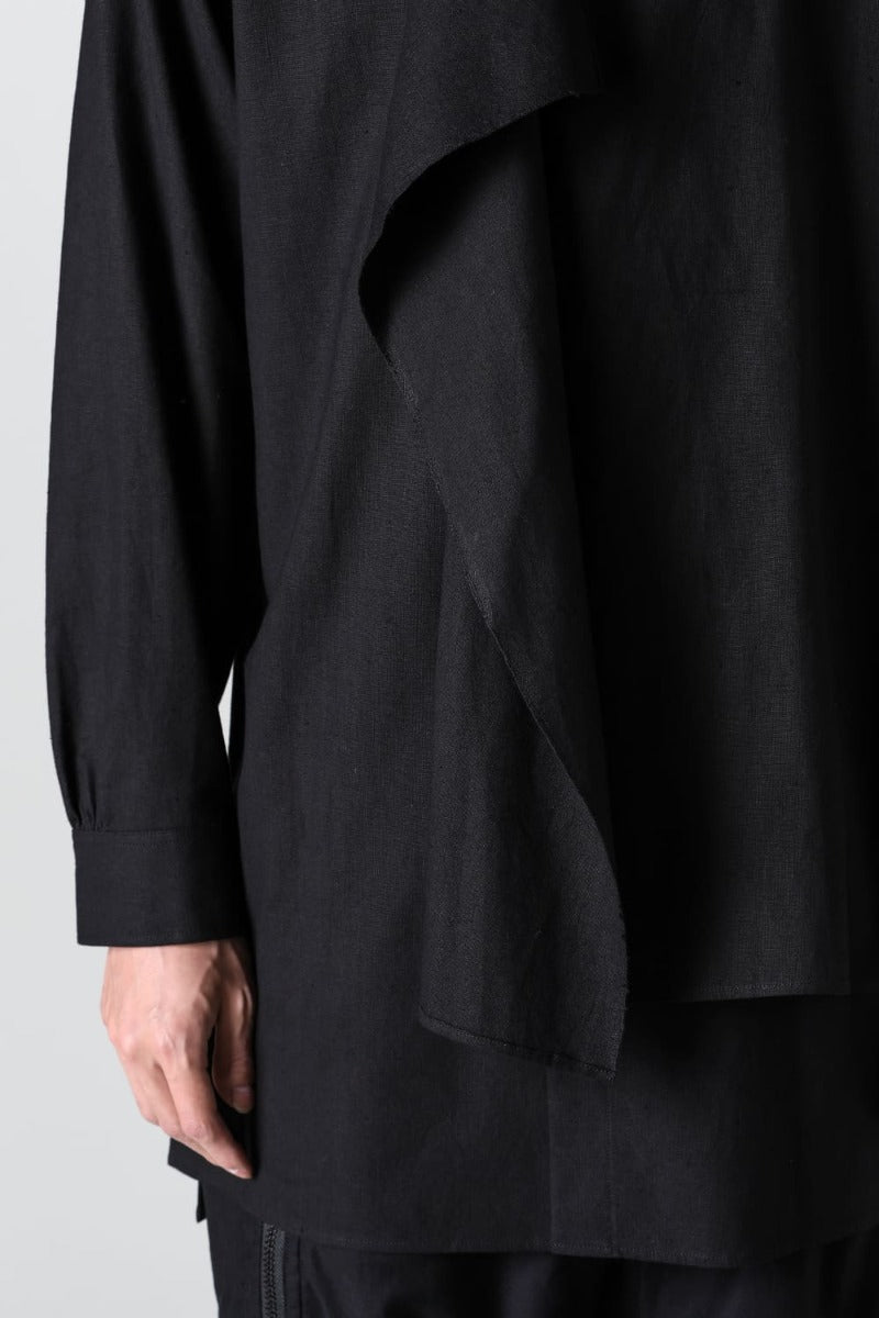 Yohji Yamamotoのシャツの定番生地としてもイメージが根強いブロード生地よりもドレープ性に優れ、荒目の織地と粗野な表情を楽しめる生地となっています。