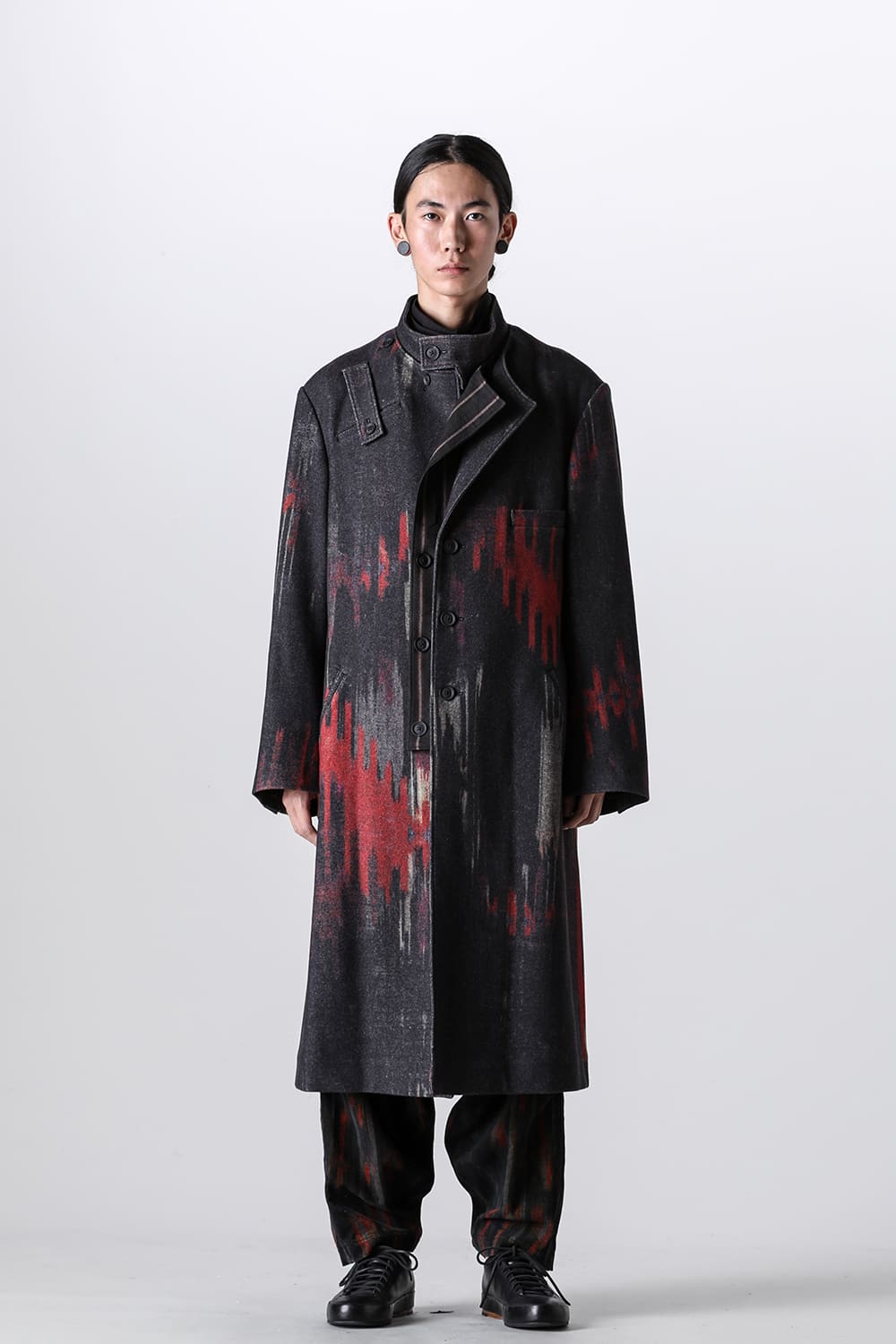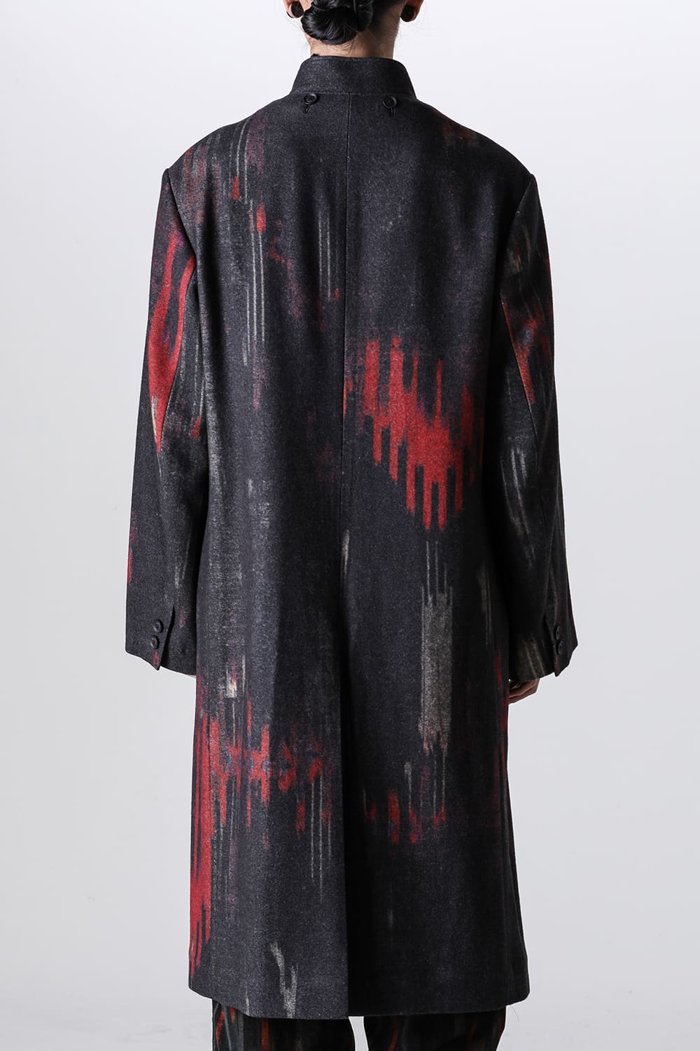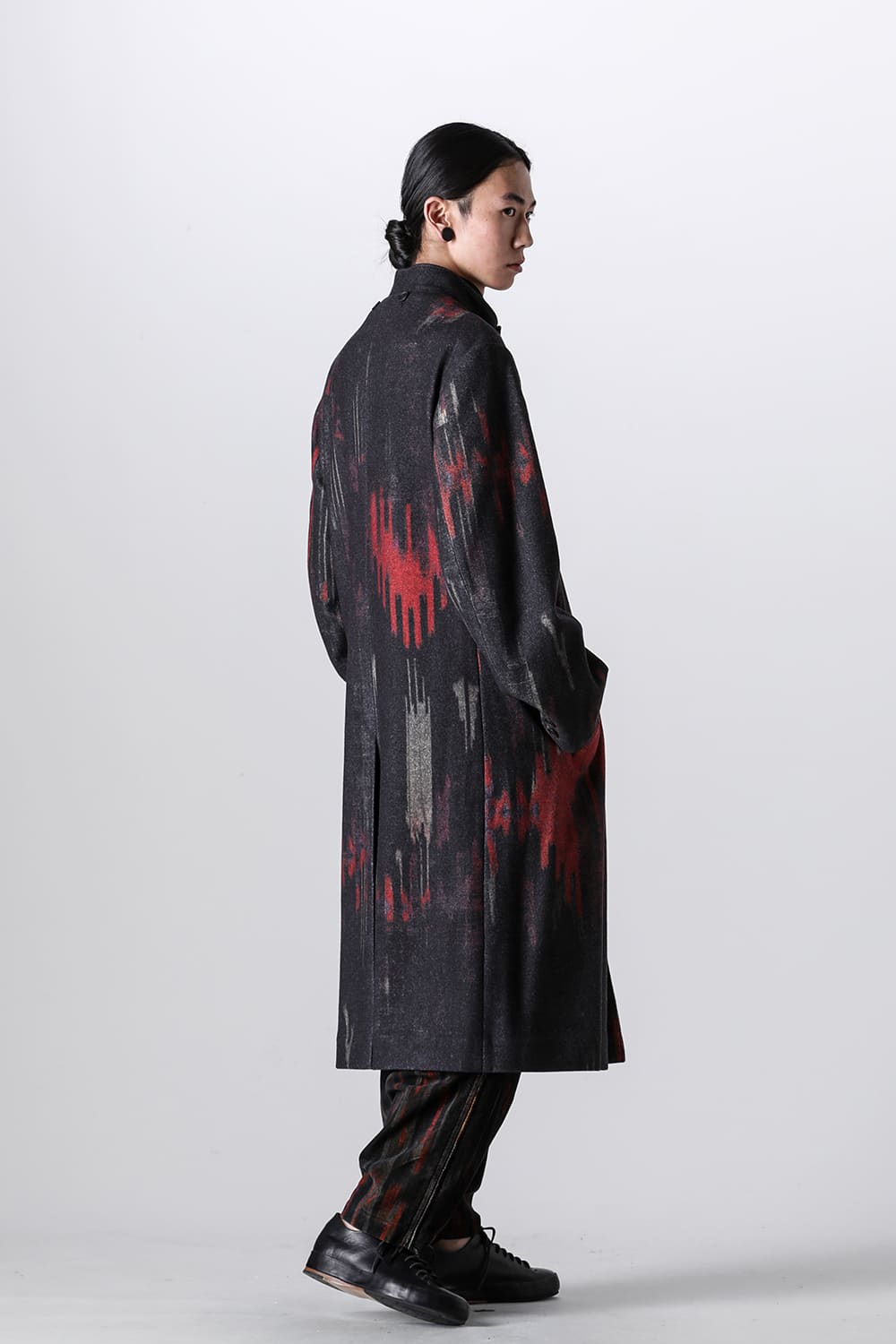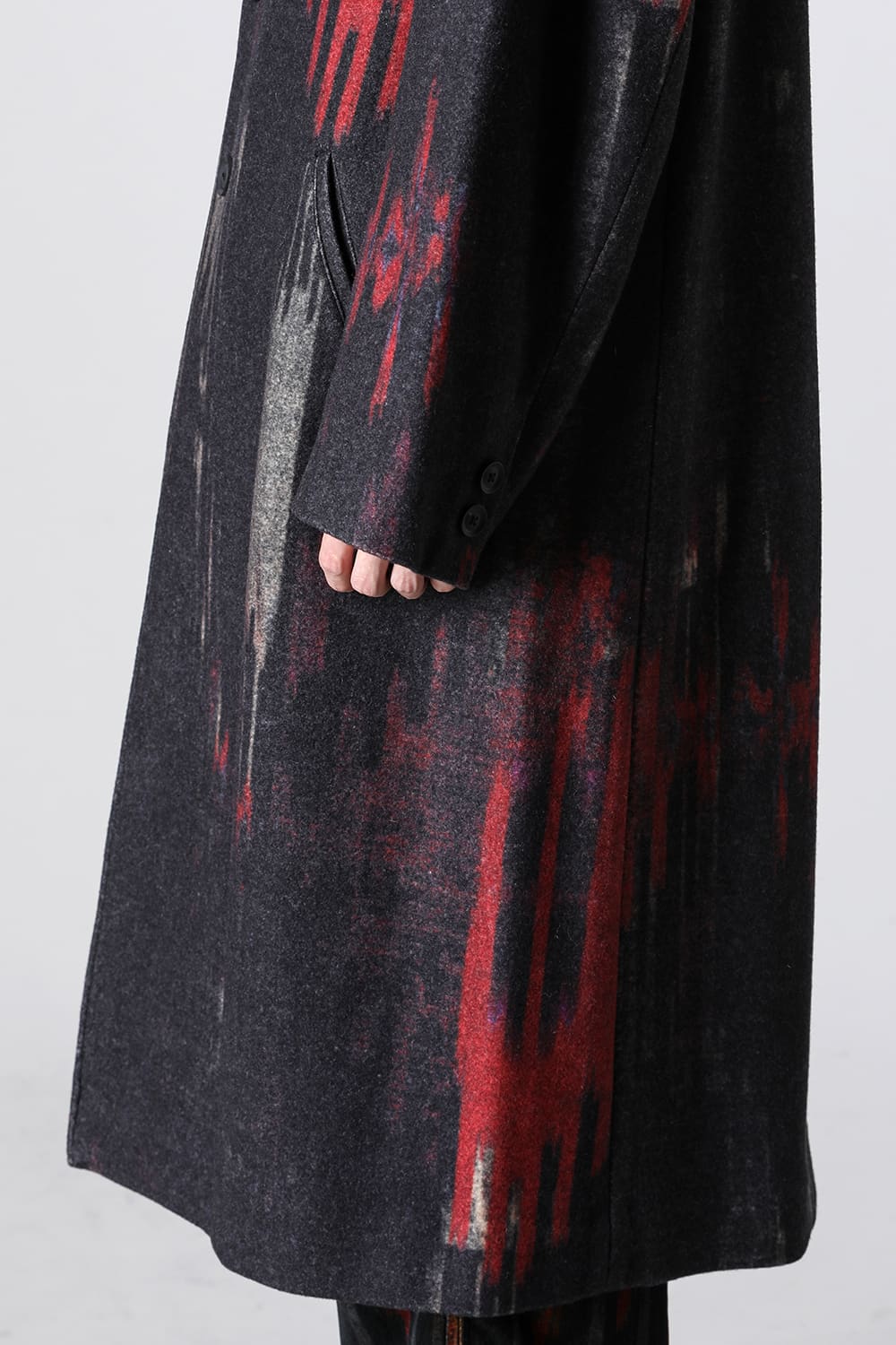 ネイティブ調のインクジェットプリントを全体に施すことによって、今季のテーマである中央アジアの民族的要素を付与したデザインです。