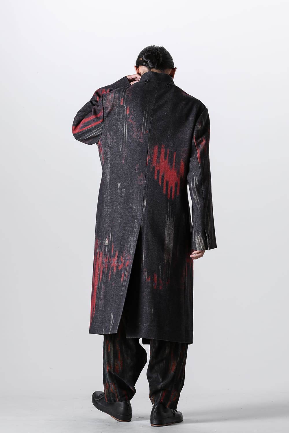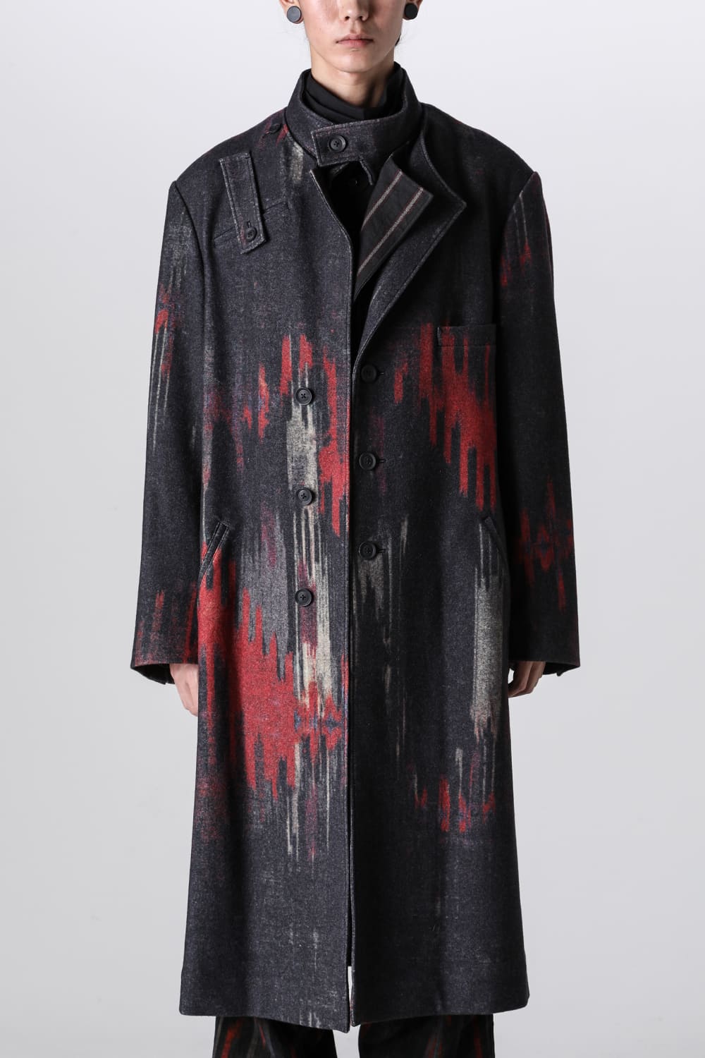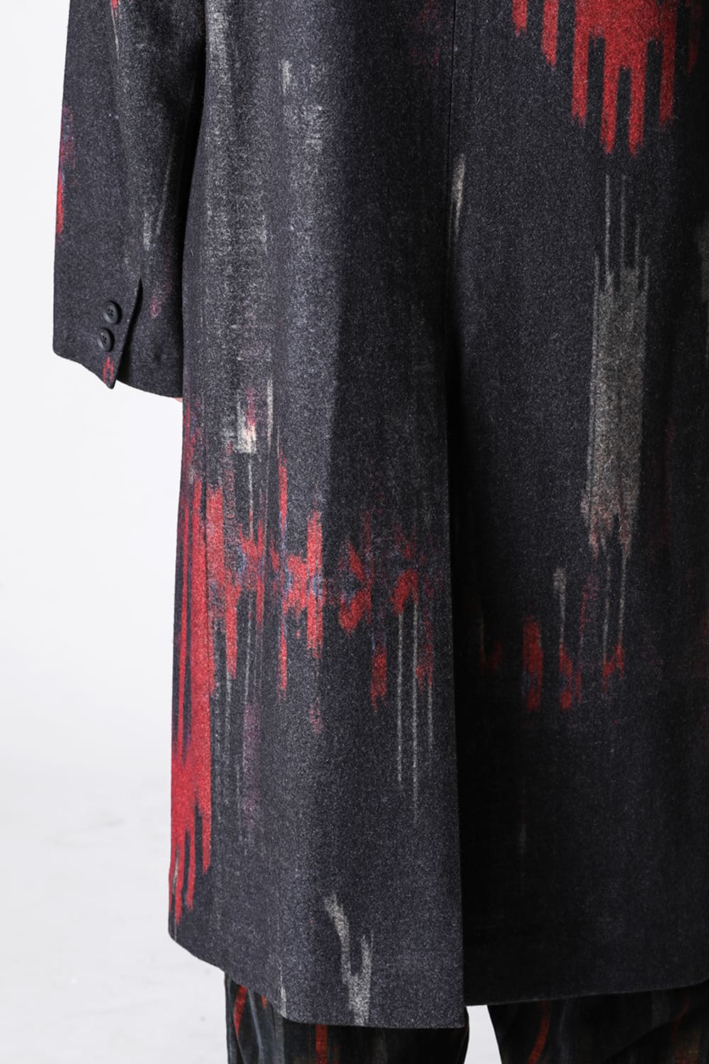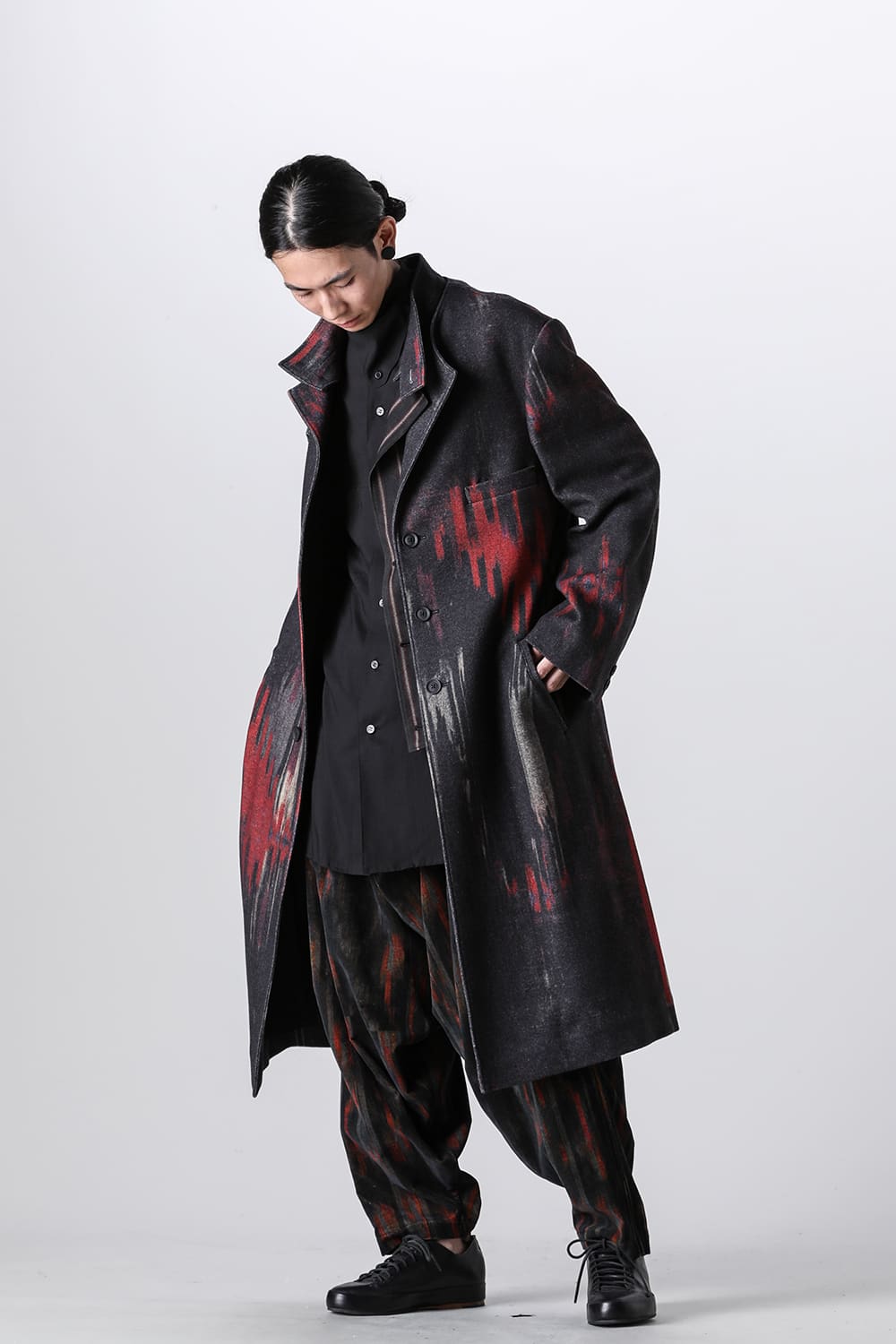 ネイティブ調のインクジェットプリントを全体に施すことによって、今季のテーマである中央アジアの民族的要素を付与したデザインです。