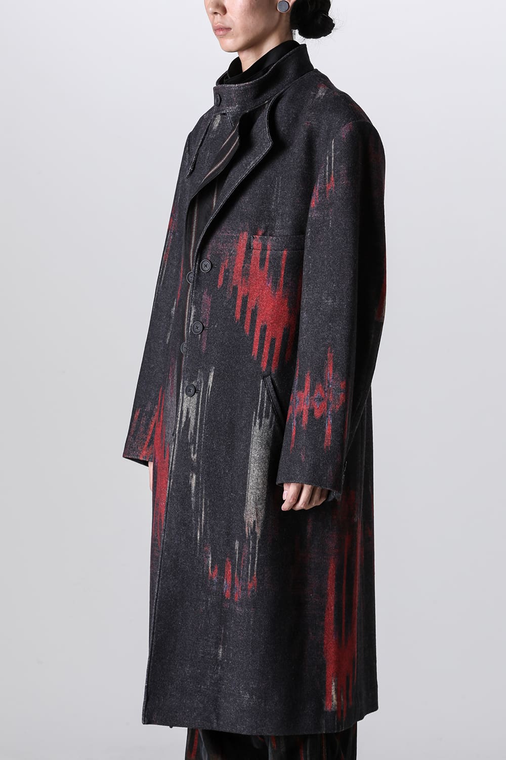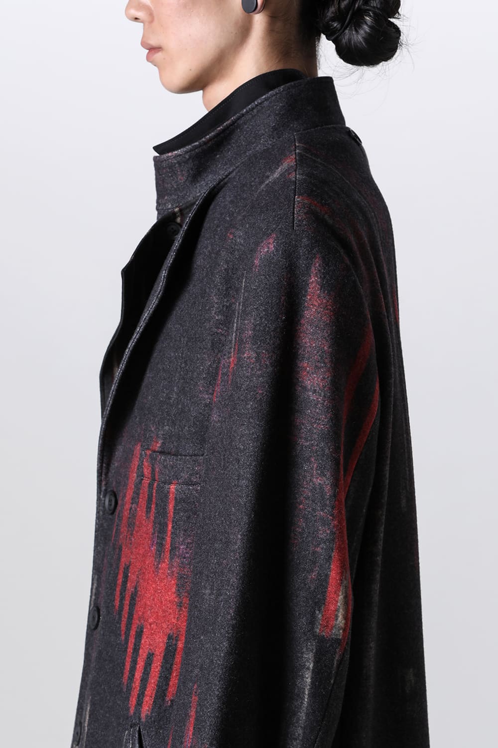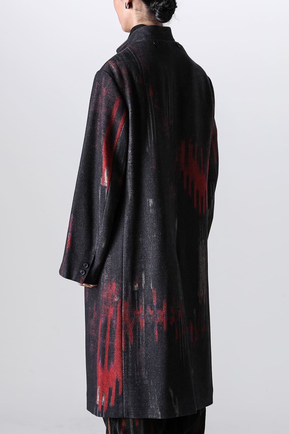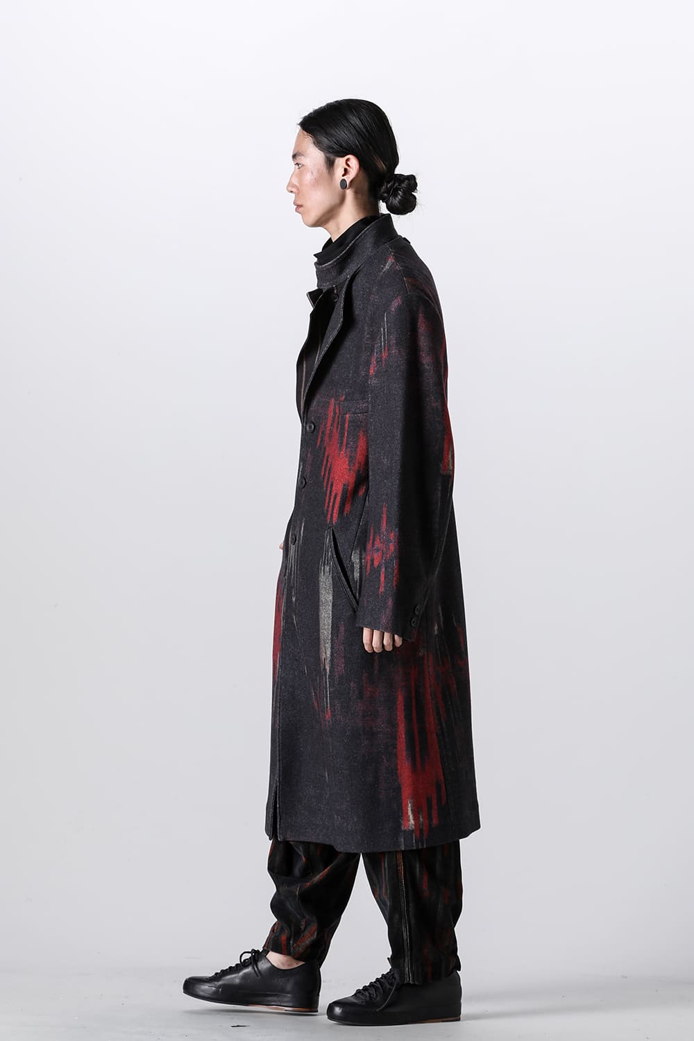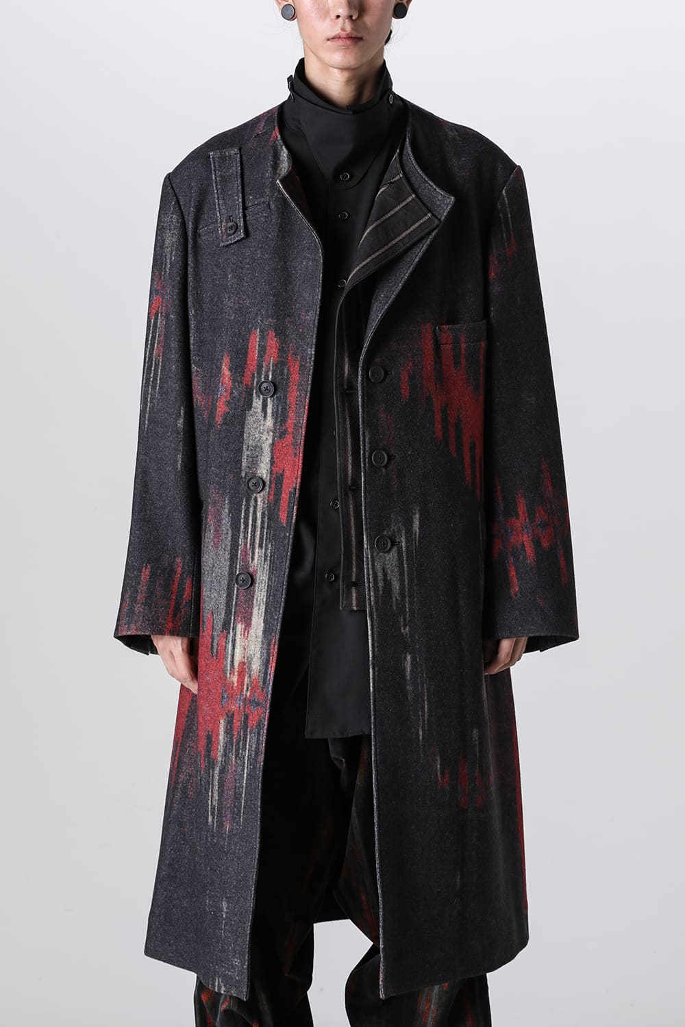 ネイティブ調のインクジェットプリントを全体に施すことによって、今季のテーマである中央アジアの民族的要素を付与したデザインです。