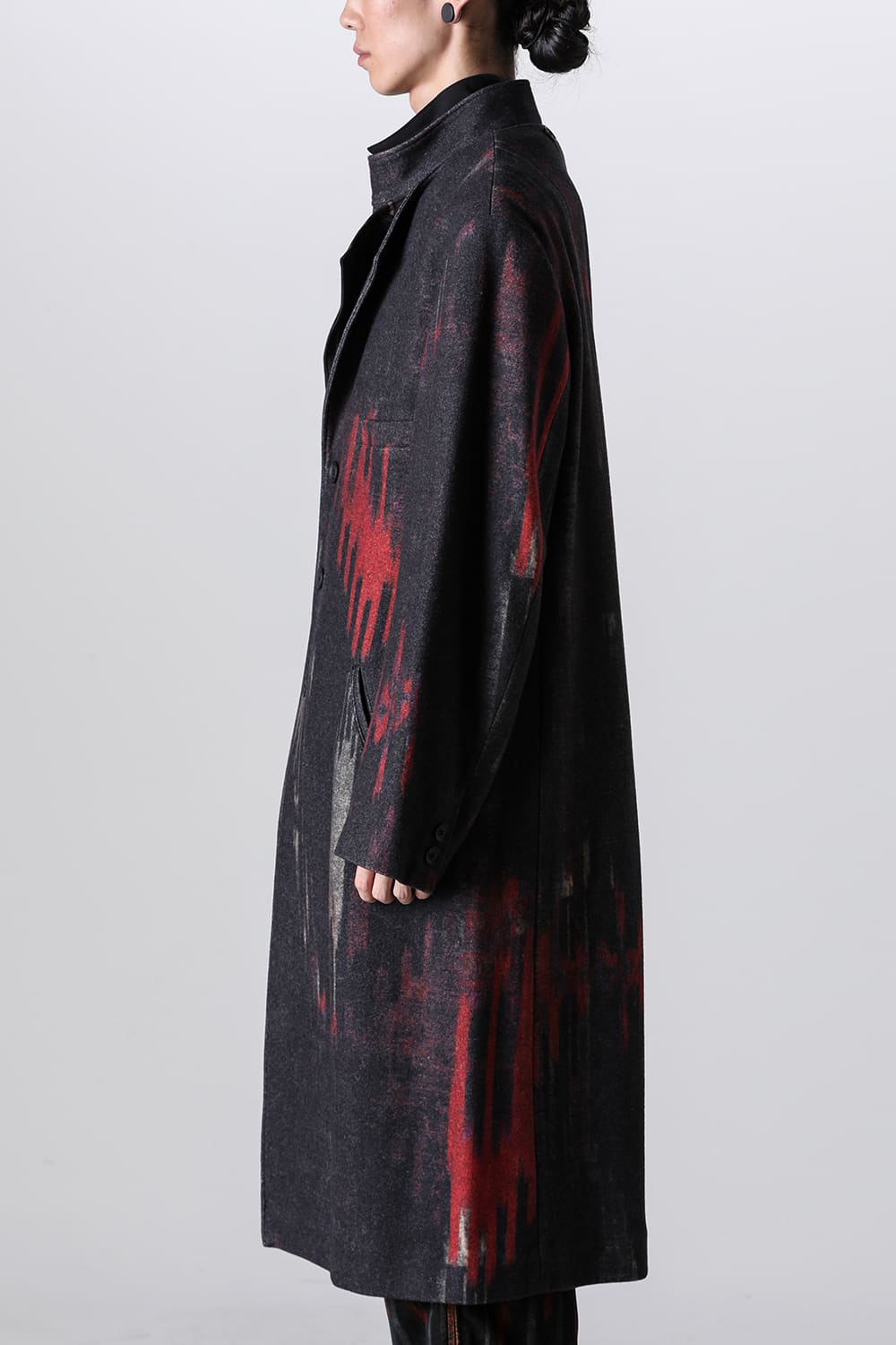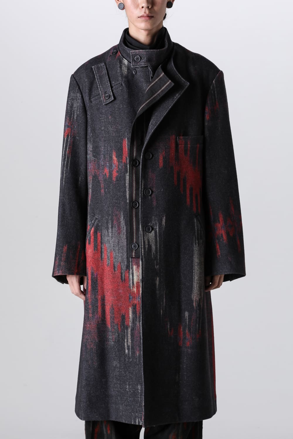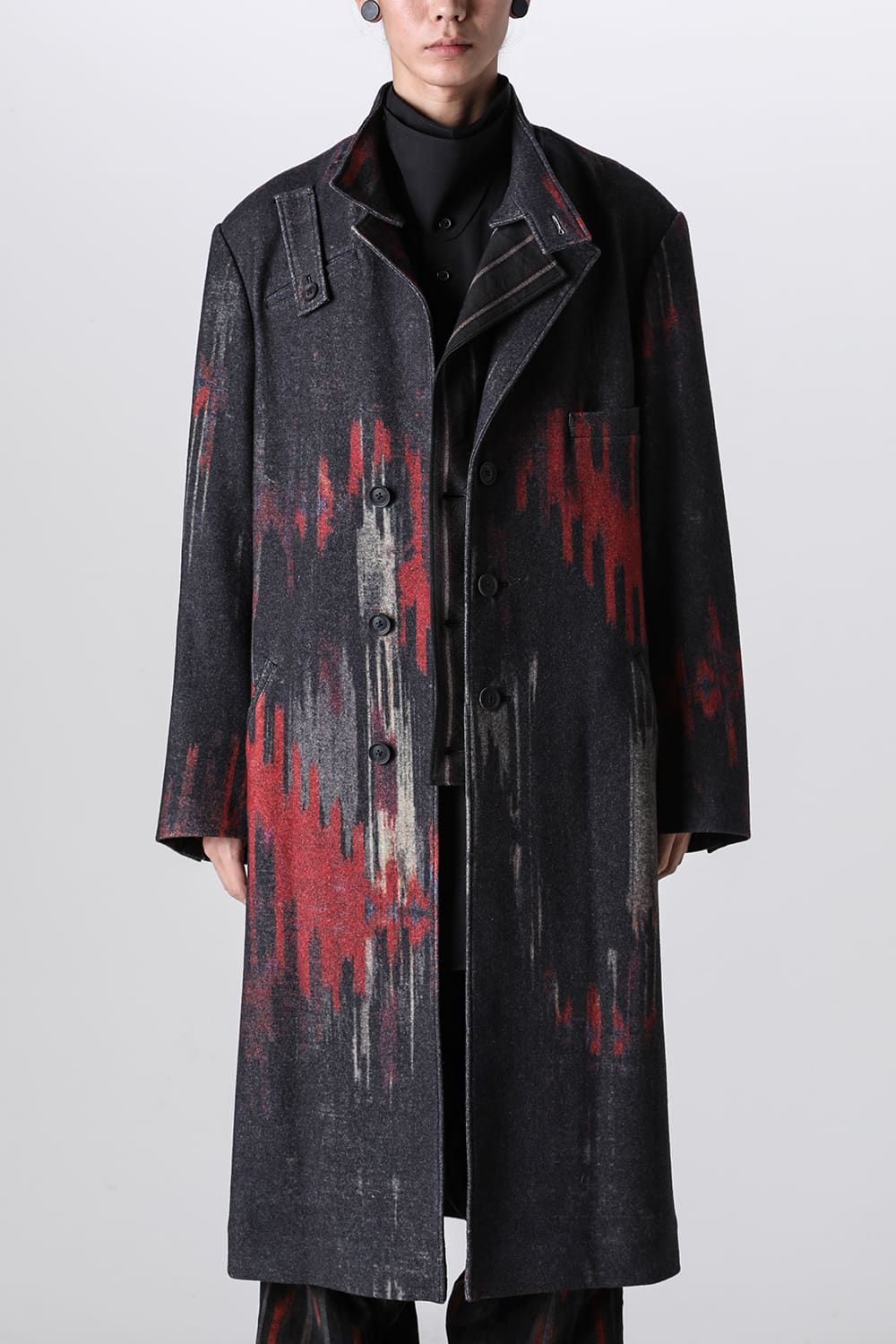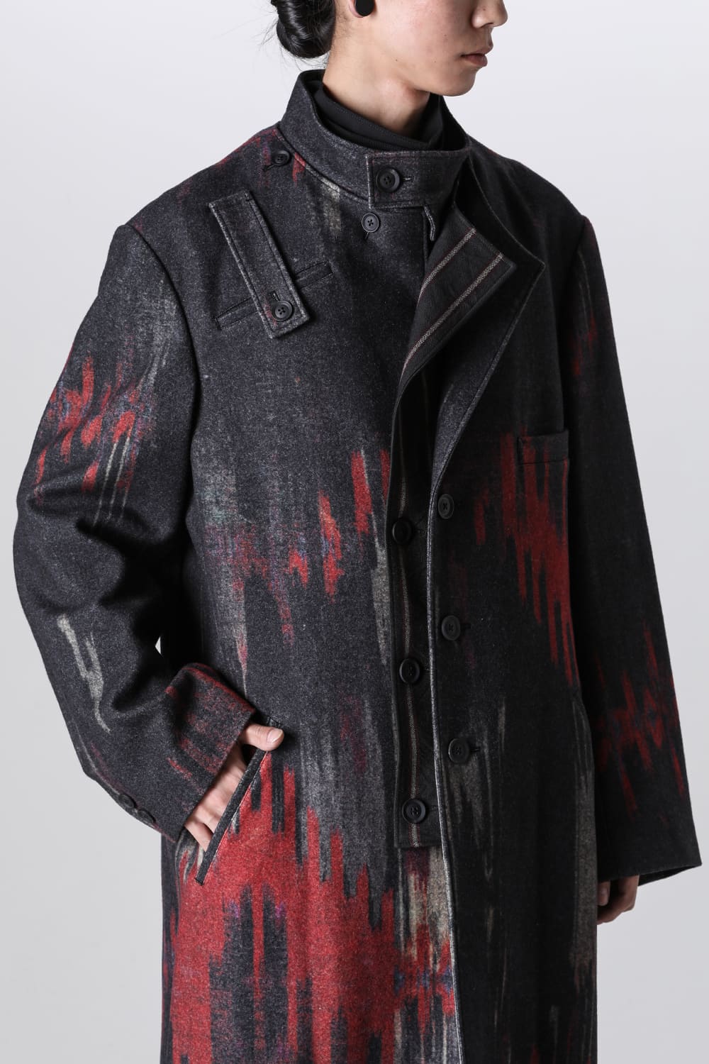 ネイティブ調のインクジェットプリントを全体に施すことによって、今季のテーマである中央アジアの民族的要素を付与したデザインです。