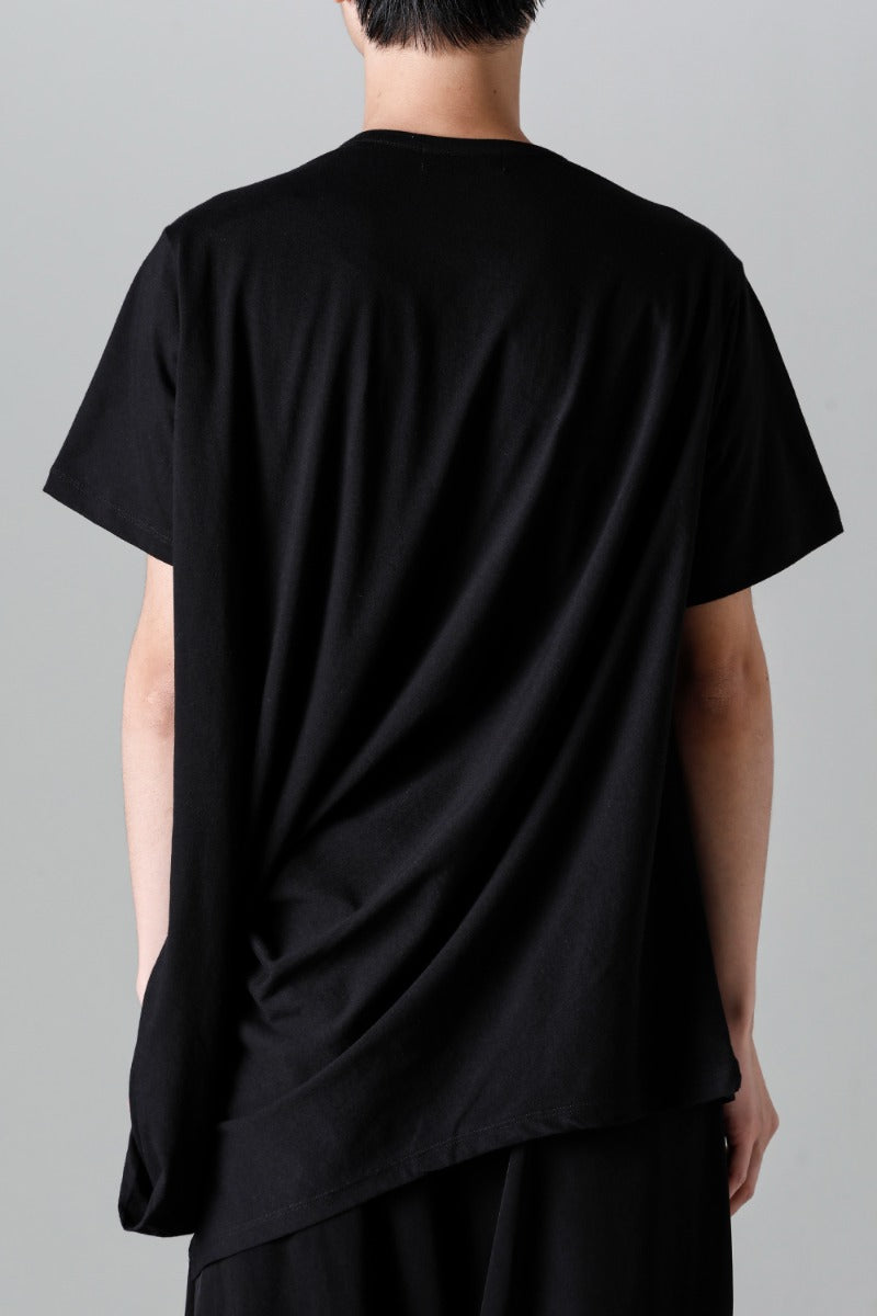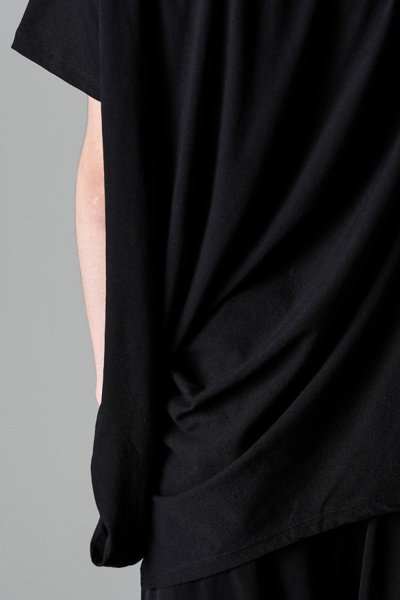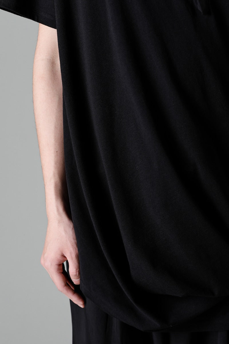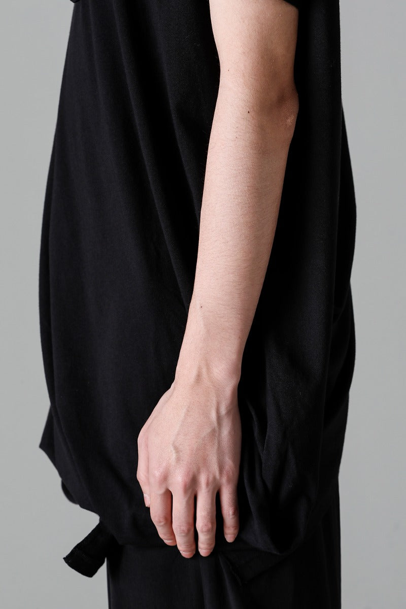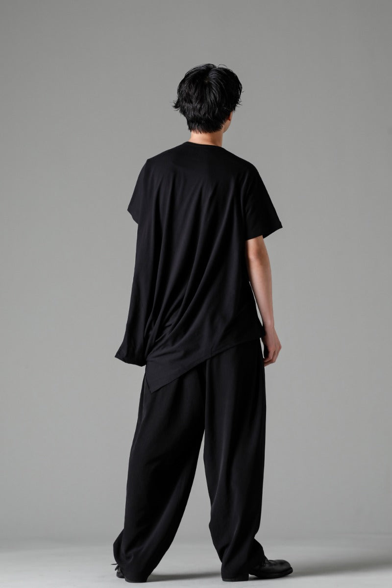 フロントの開閉機構をバイアスに取った変形デザイン。柔らかくしなやかな生地の特性を活かし、身頃にドレープを作っています。