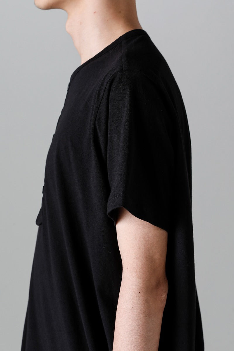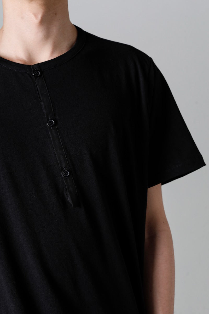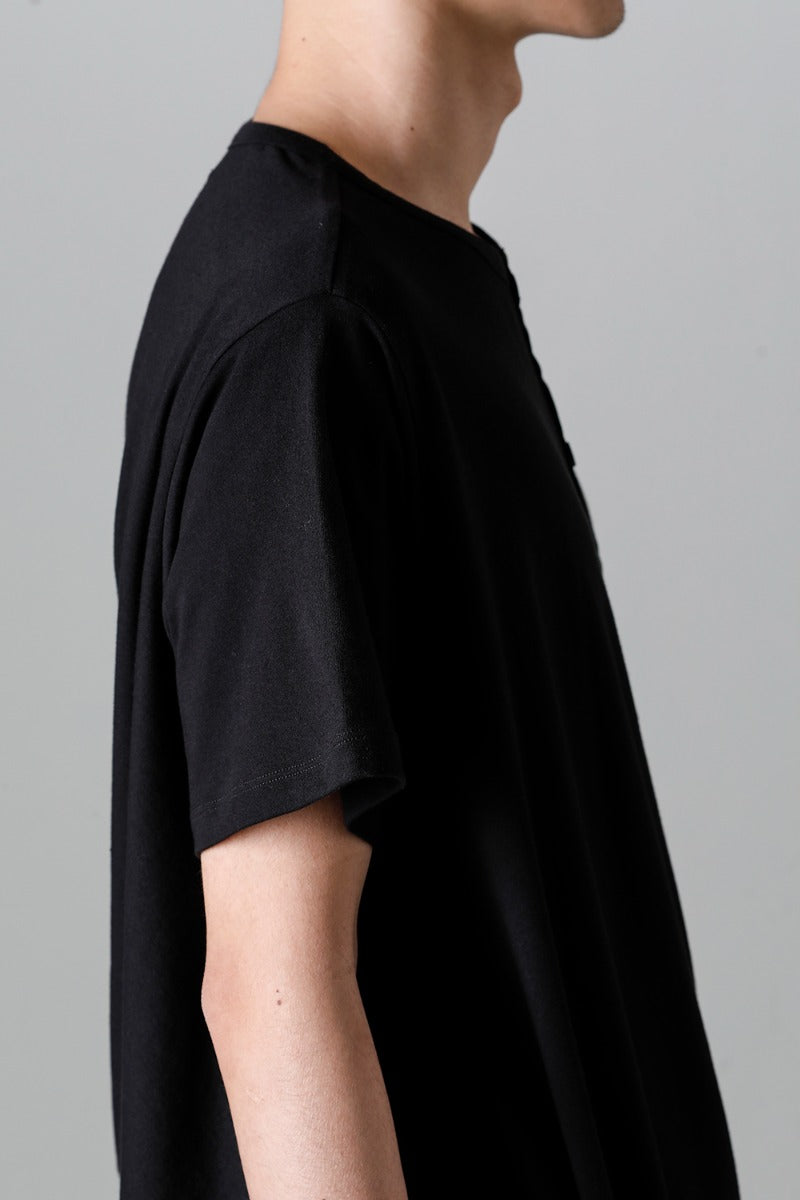 一般的に高級糸とされる長繊維(フィラメント糸)のコットンを使用したコーマ天竺を使用したヘンリーネックネックTシャツ。