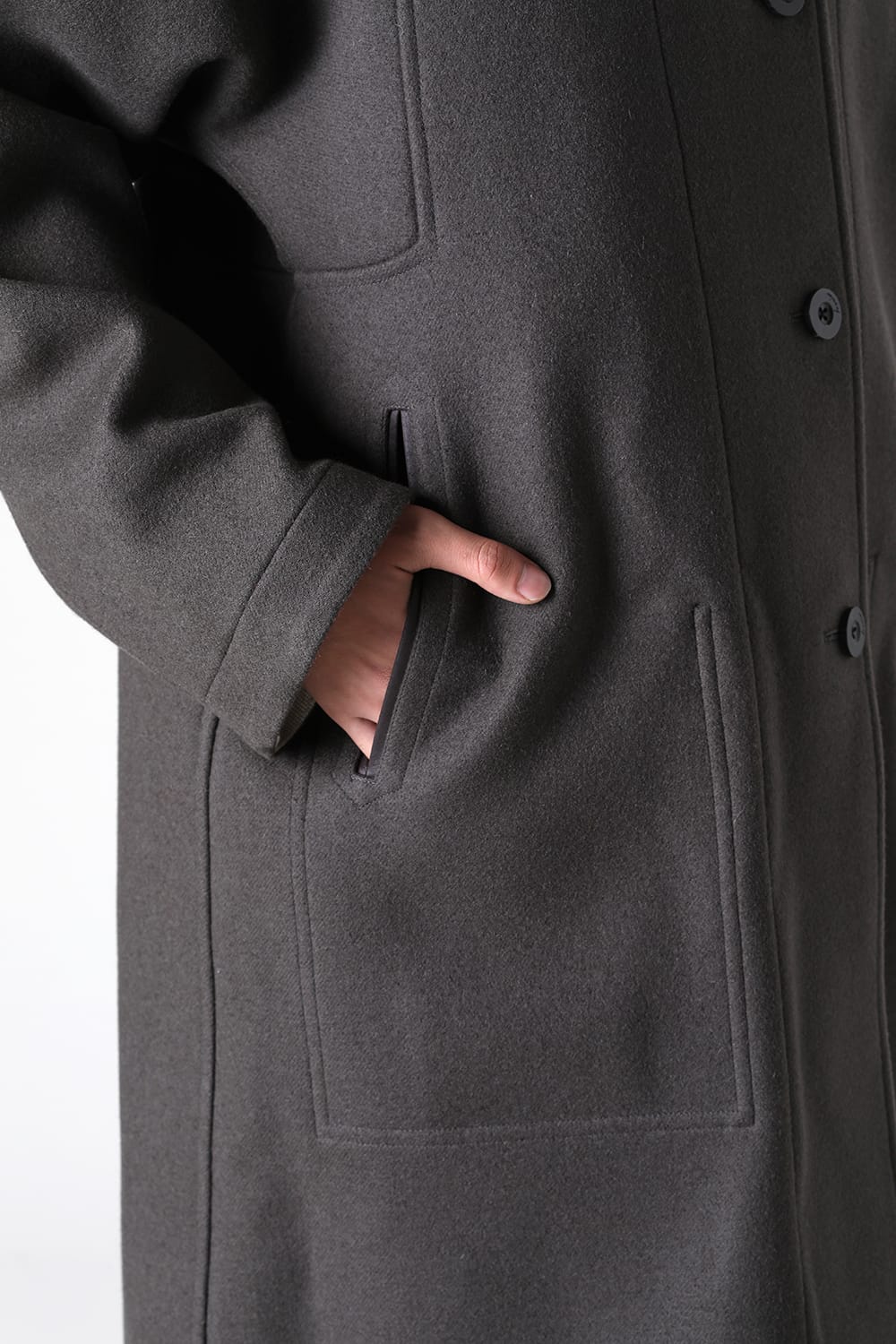 オリジナルのウールメルトン素材を使用した一重仕立てのリバーシブルコート。