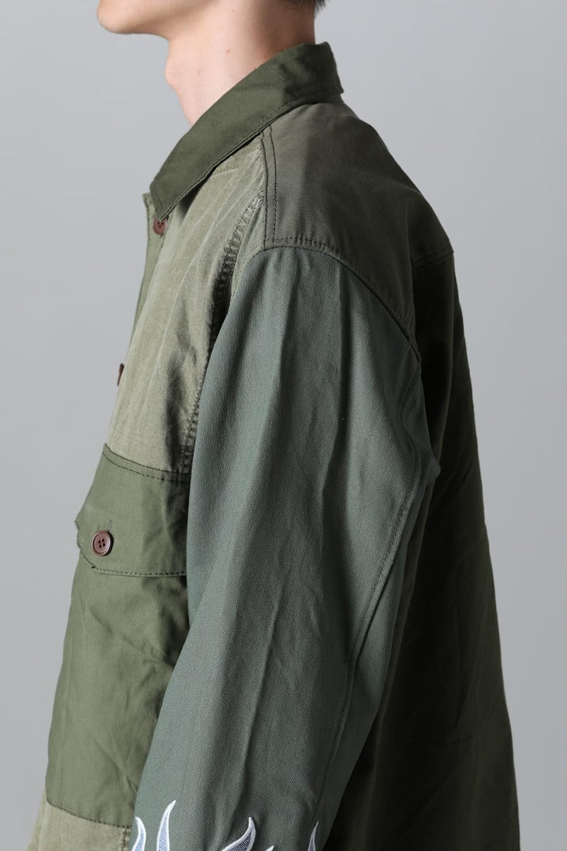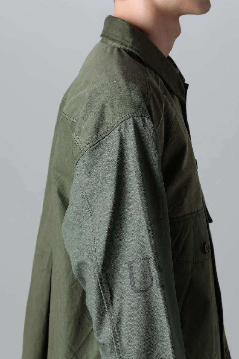 USランドリーバッグを中心に様々なミリタリー素材で再構築した1着。