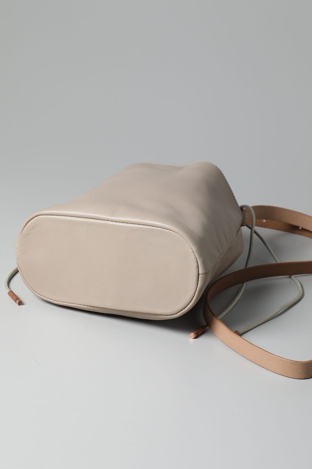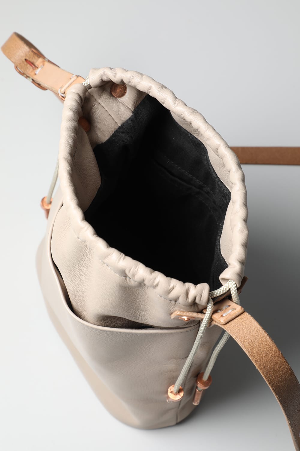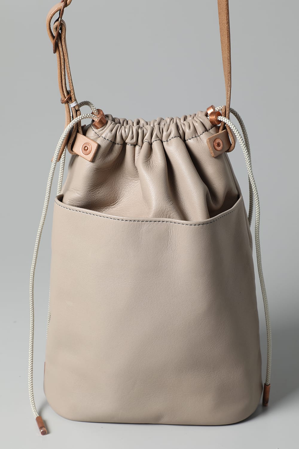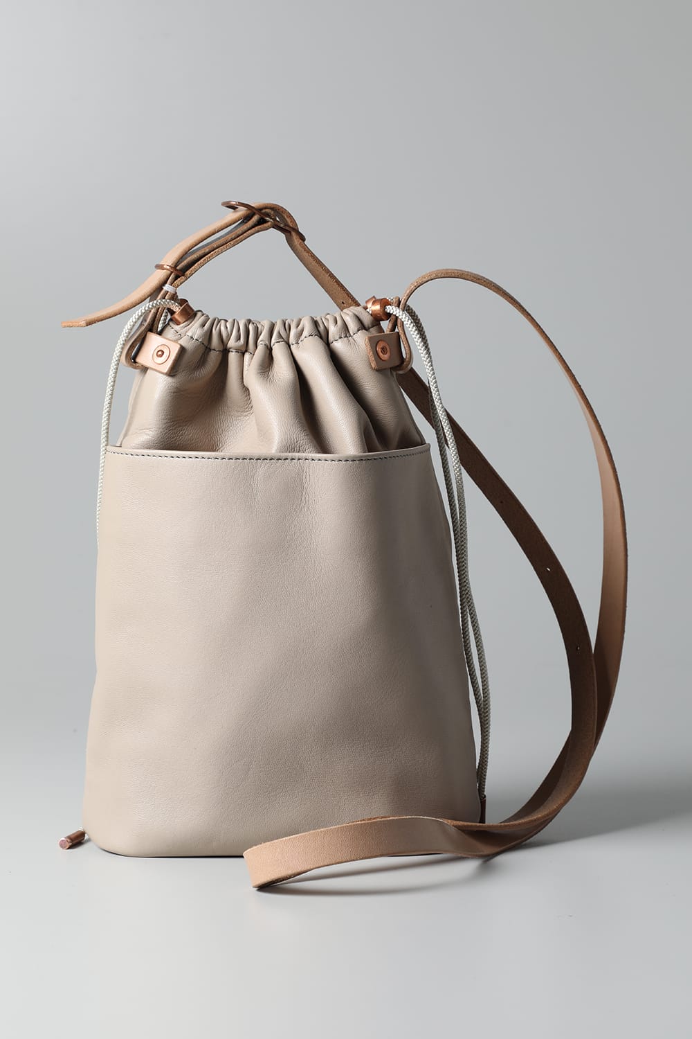 ラムレザー特徴である柔らかさと軽さが巾着型との相性がとても良く感じられます。