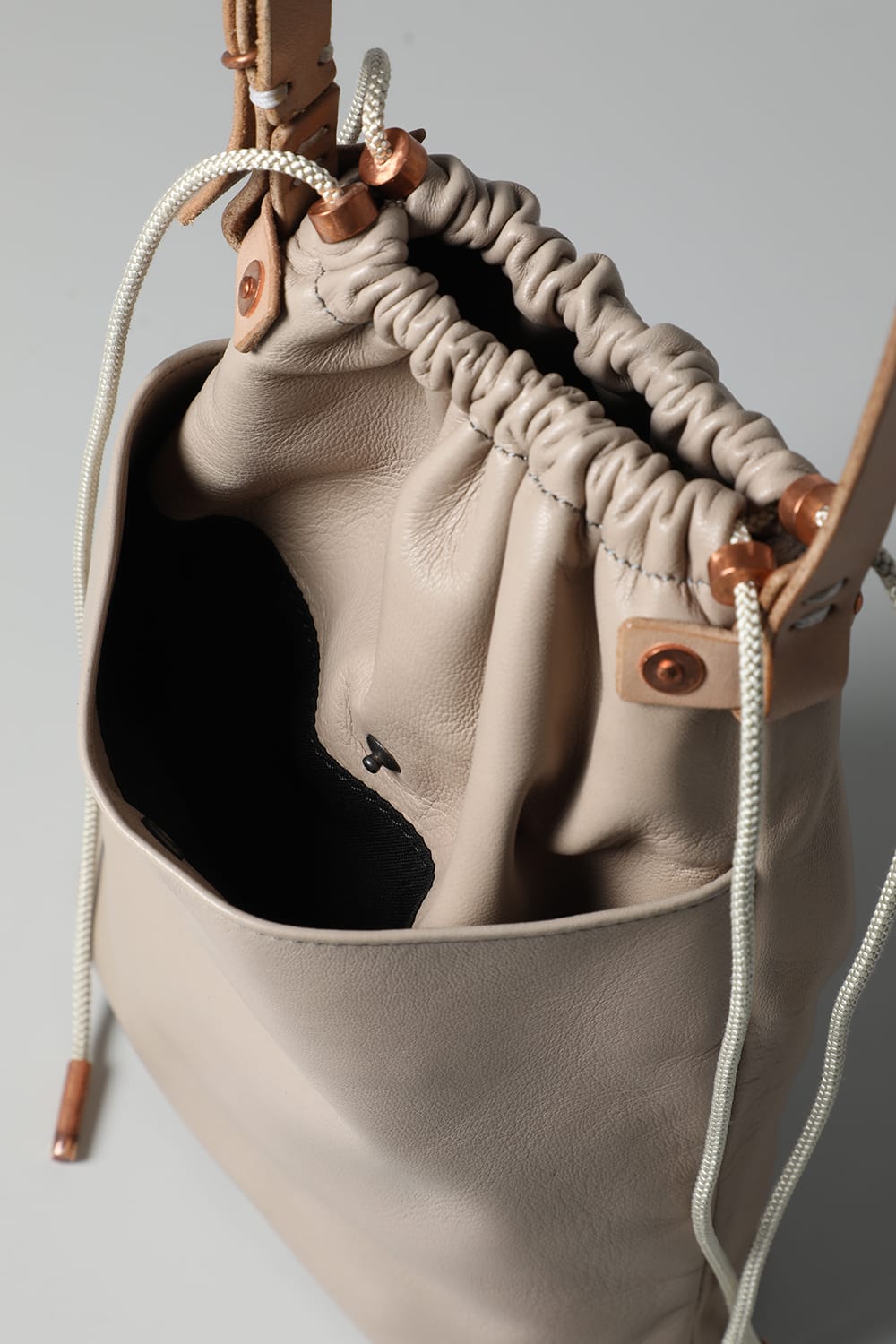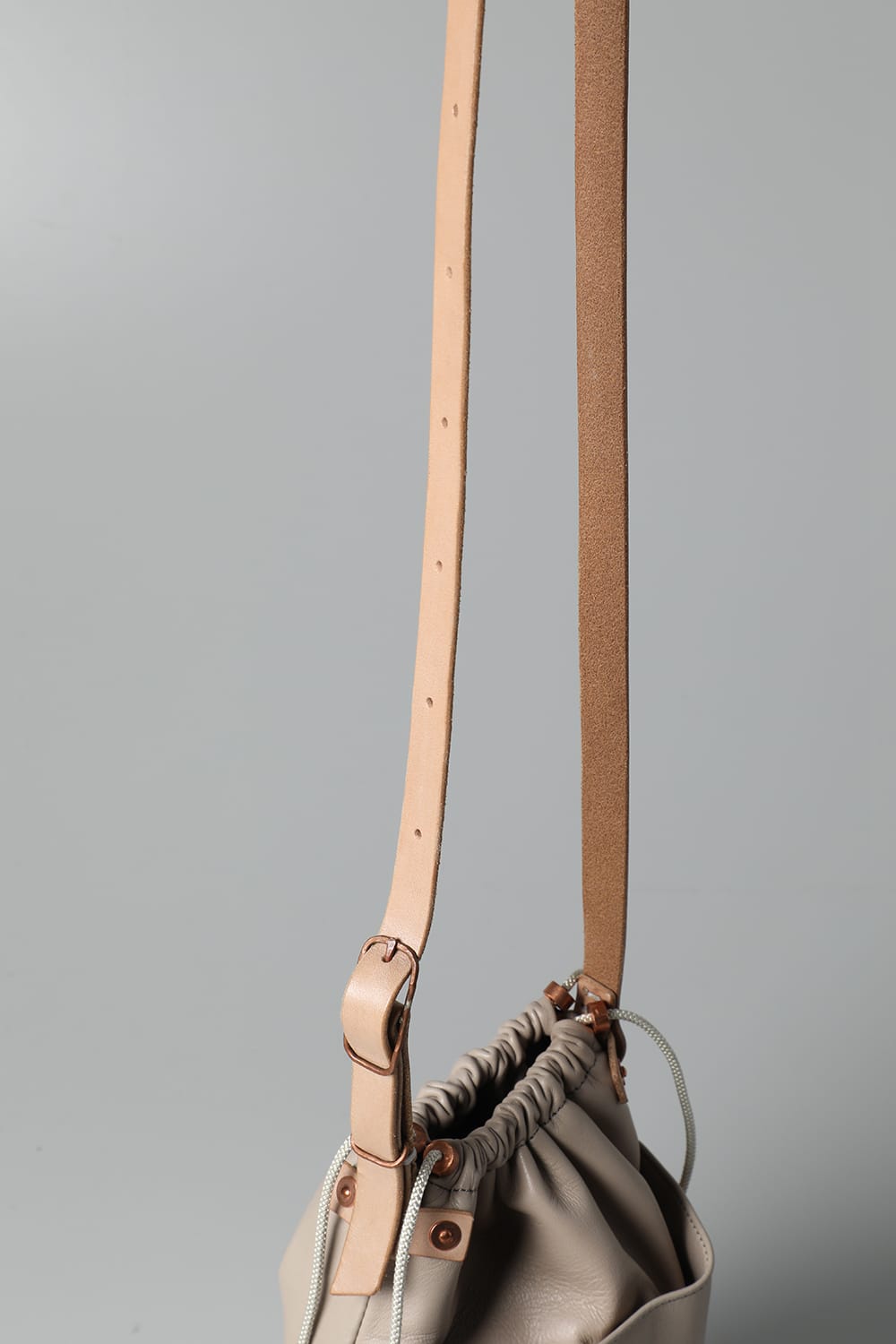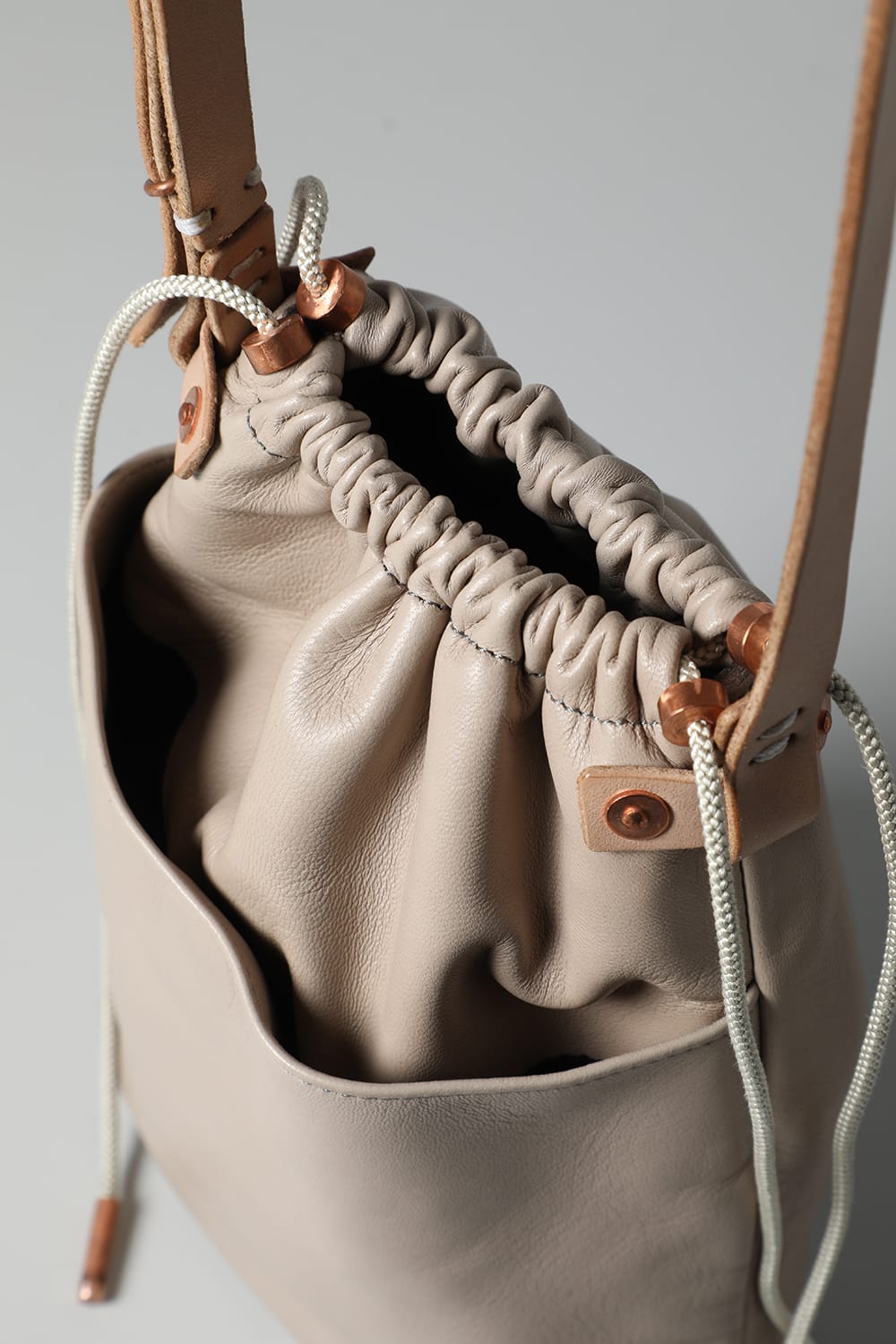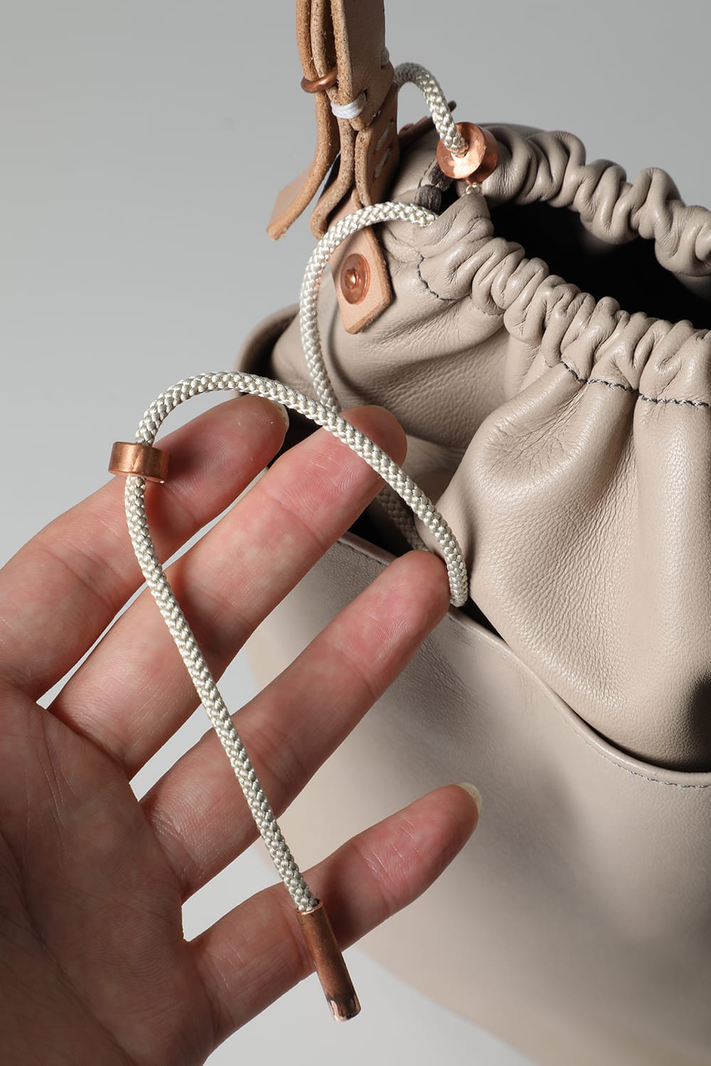 紐は両引き仕様を採用し、バッグ本体の革の上品さに加えて紐の細さによって繊細さを表現。