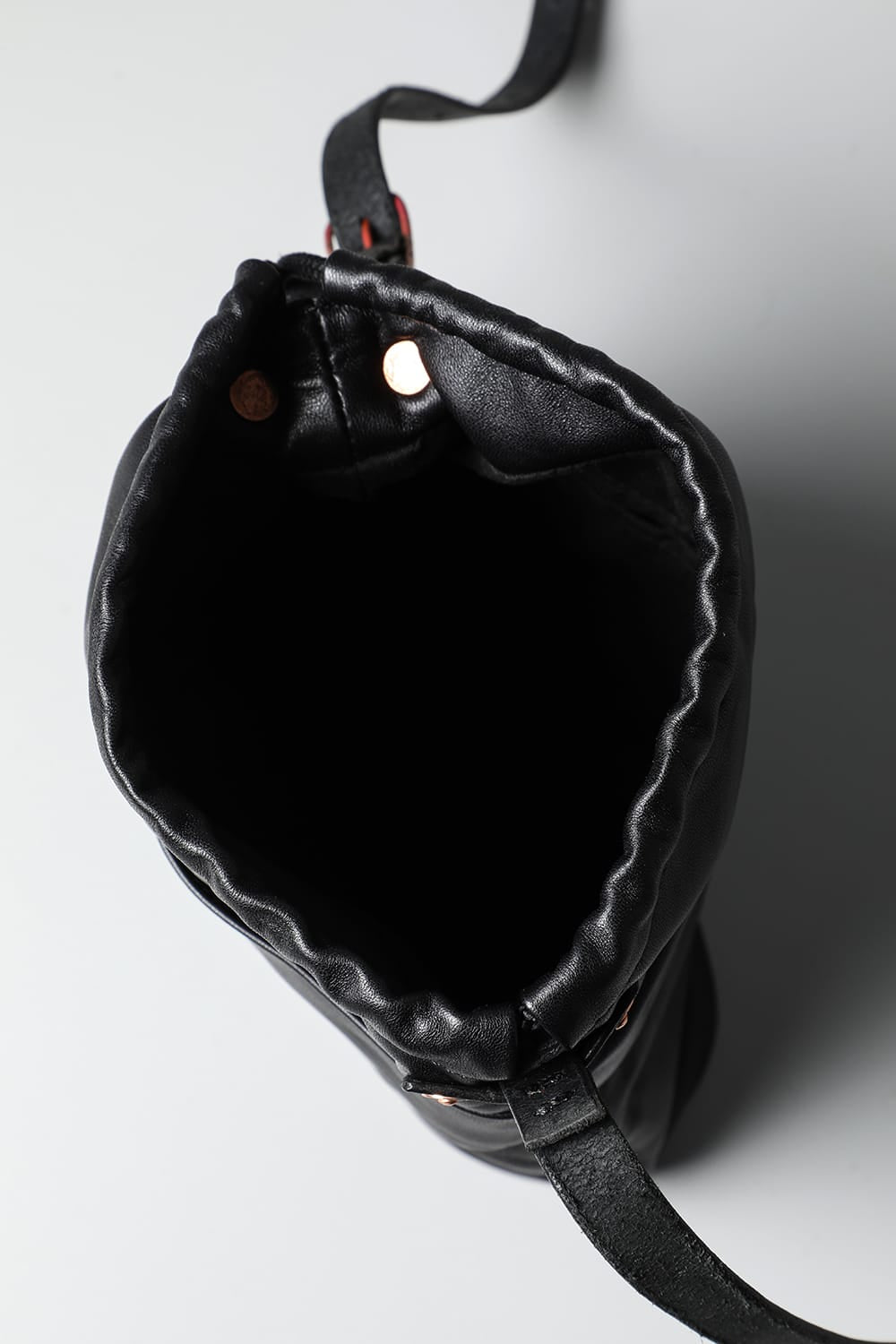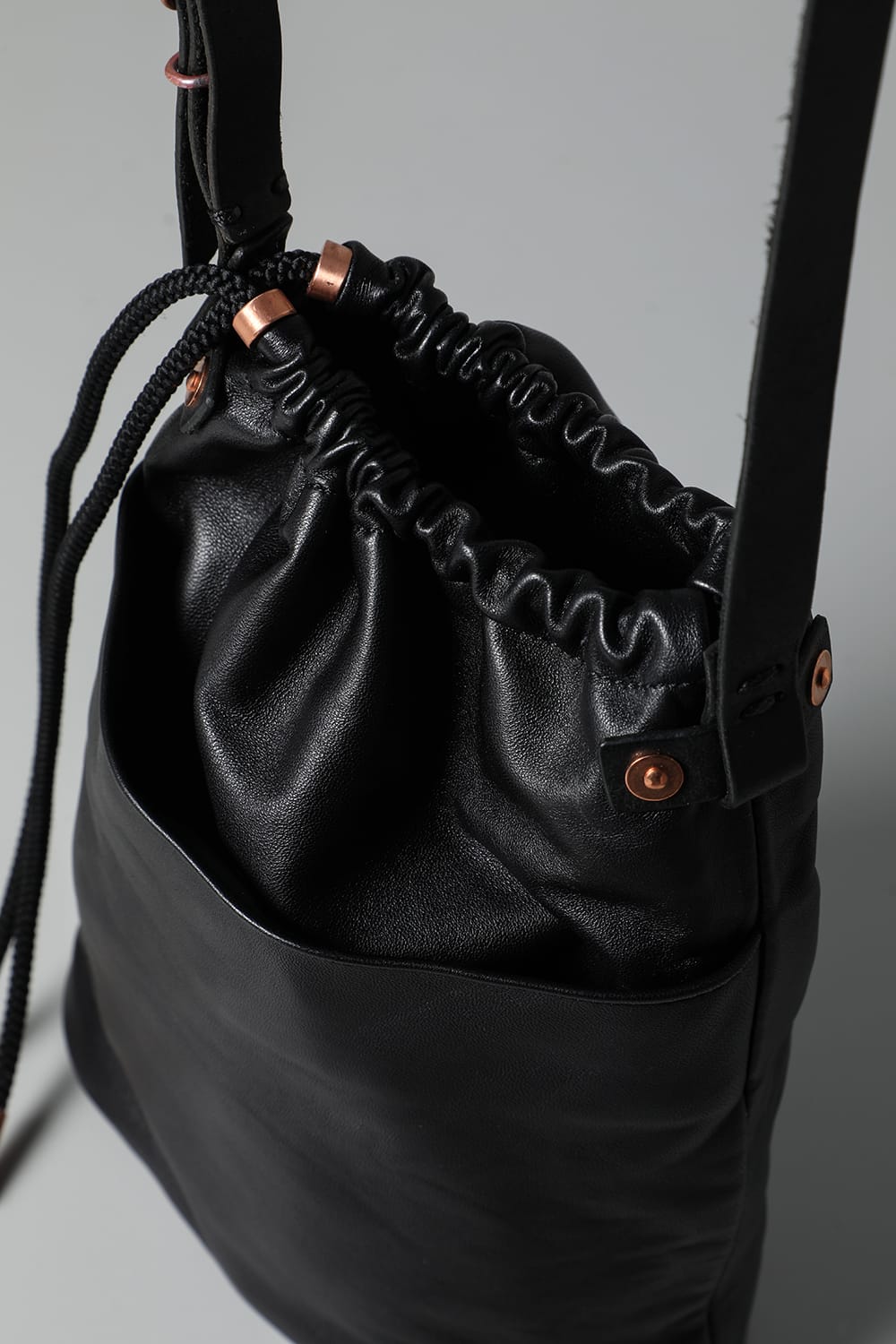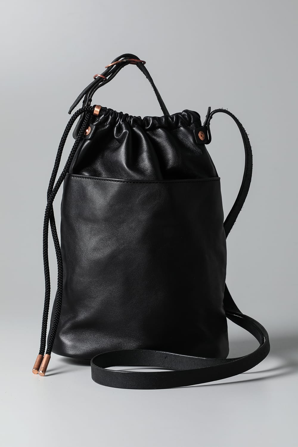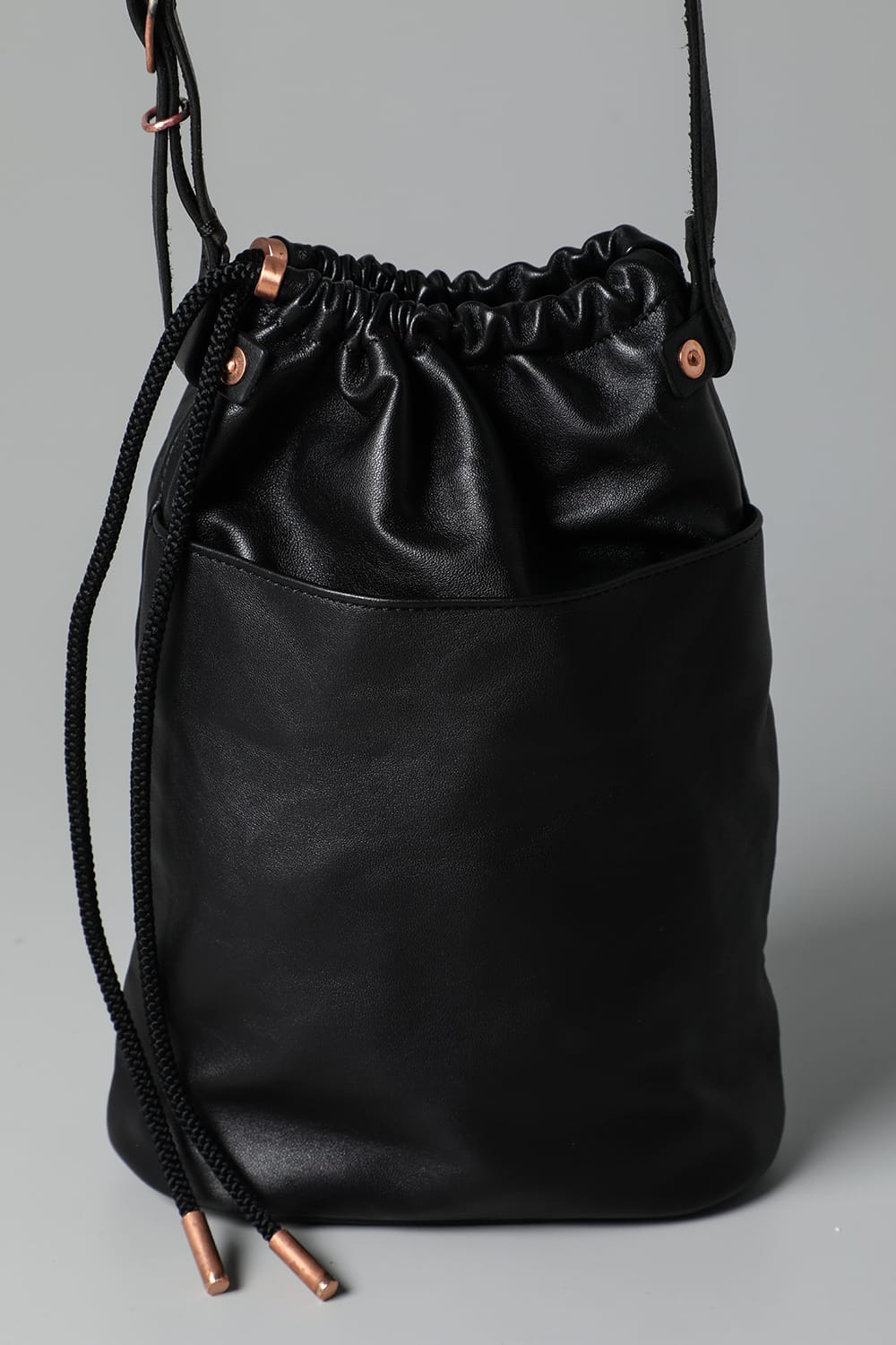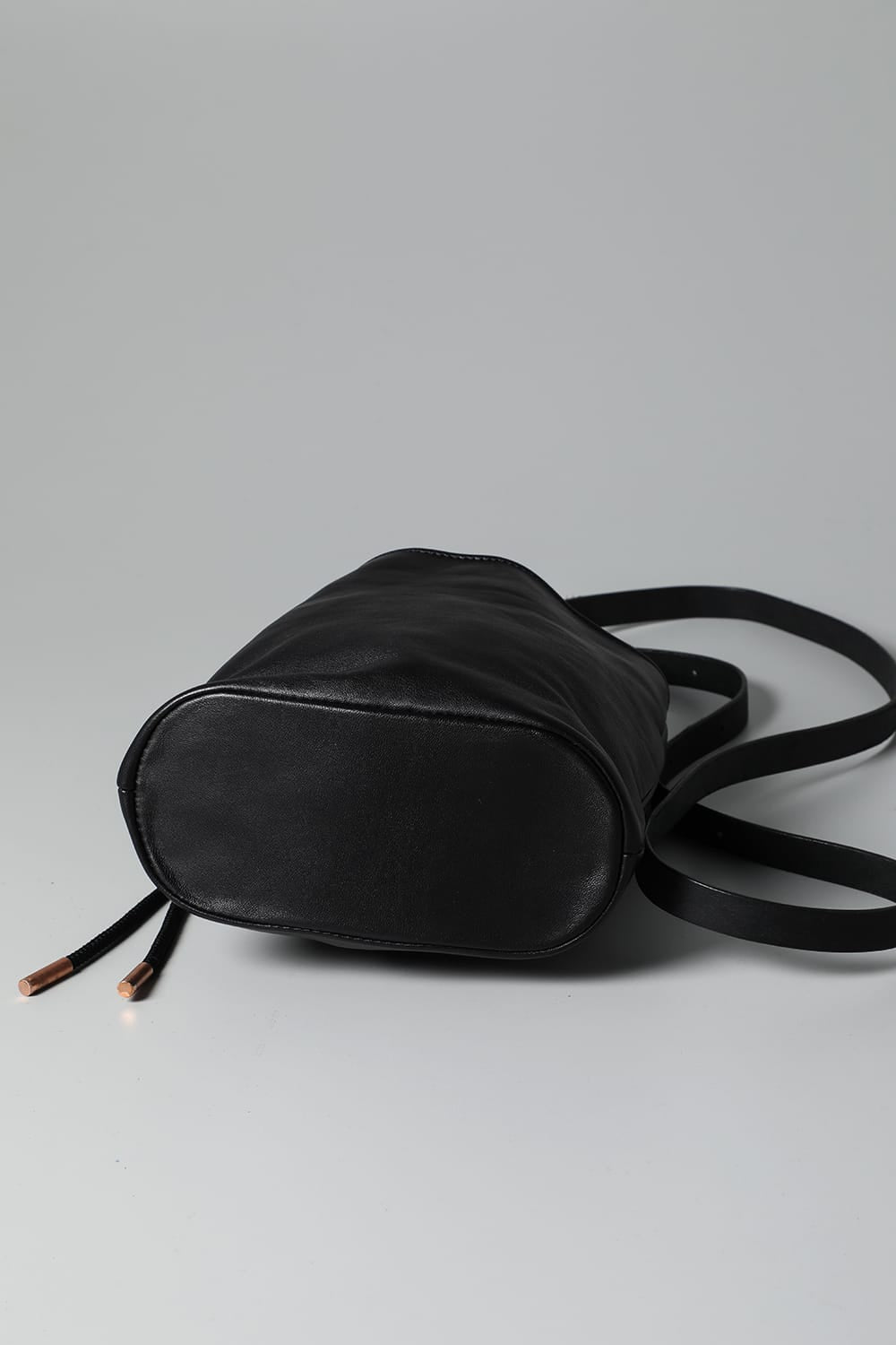 ラムレザー特徴である柔らかさと軽さが巾着型との相性がとても良く感じられます。