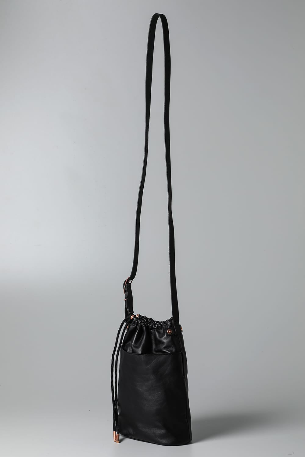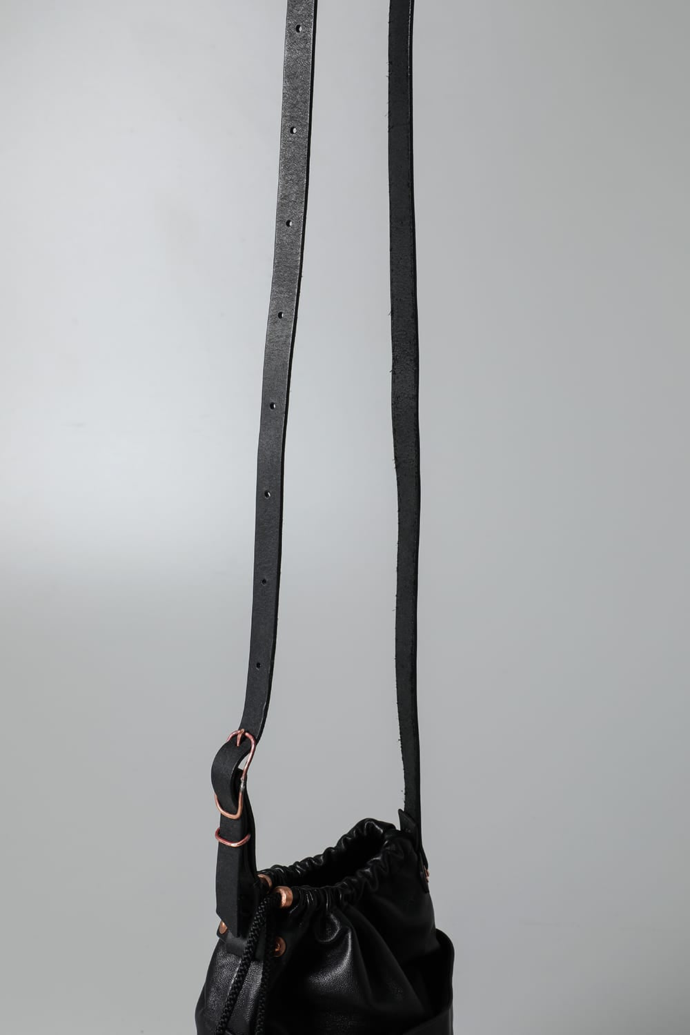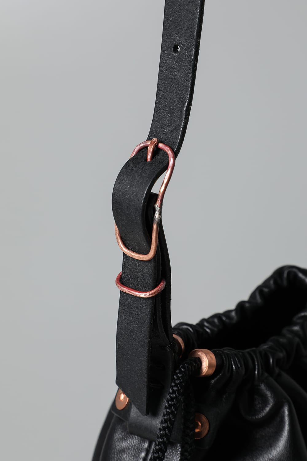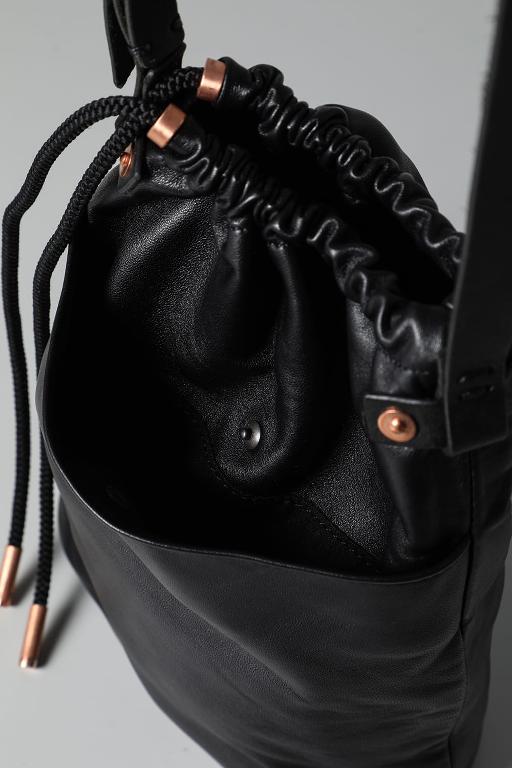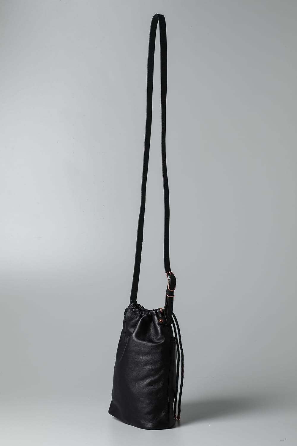ラムレザー特徴である柔らかさと軽さが巾着型との相性がとても良く感じられます。