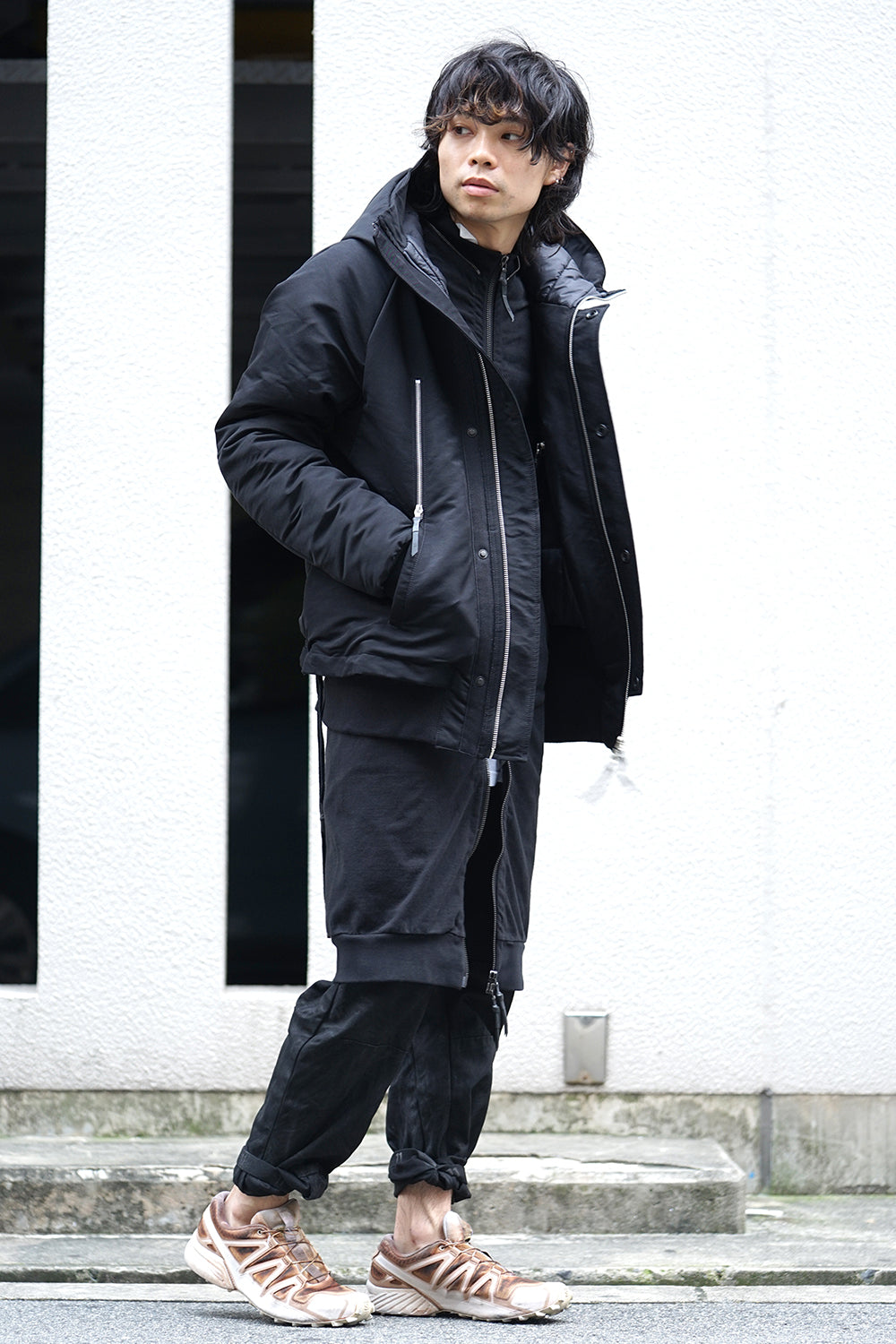 程よいボリューム感があり、少しミリタリー調にも感じるフードジャケット。