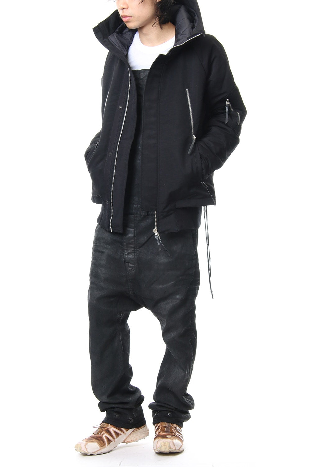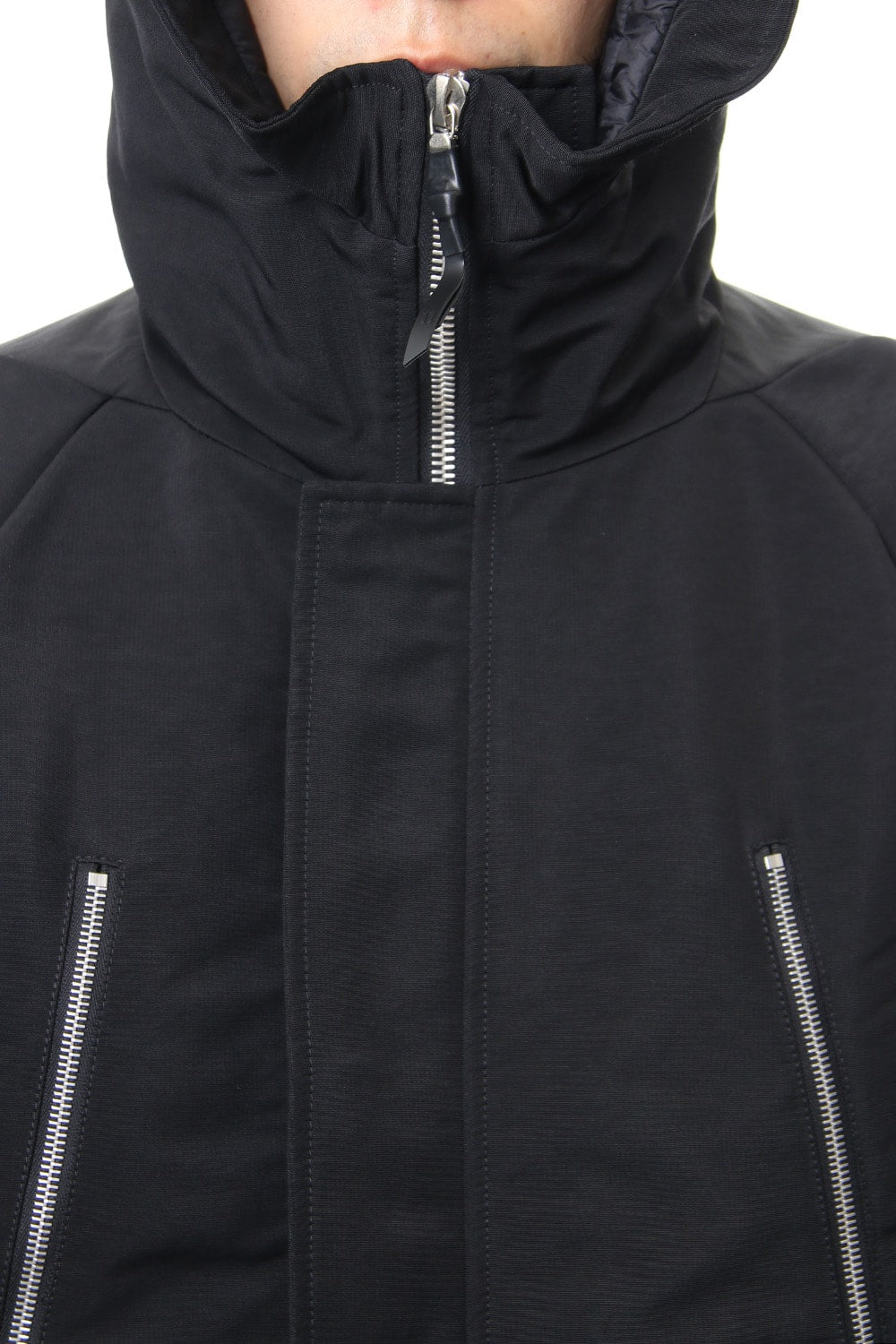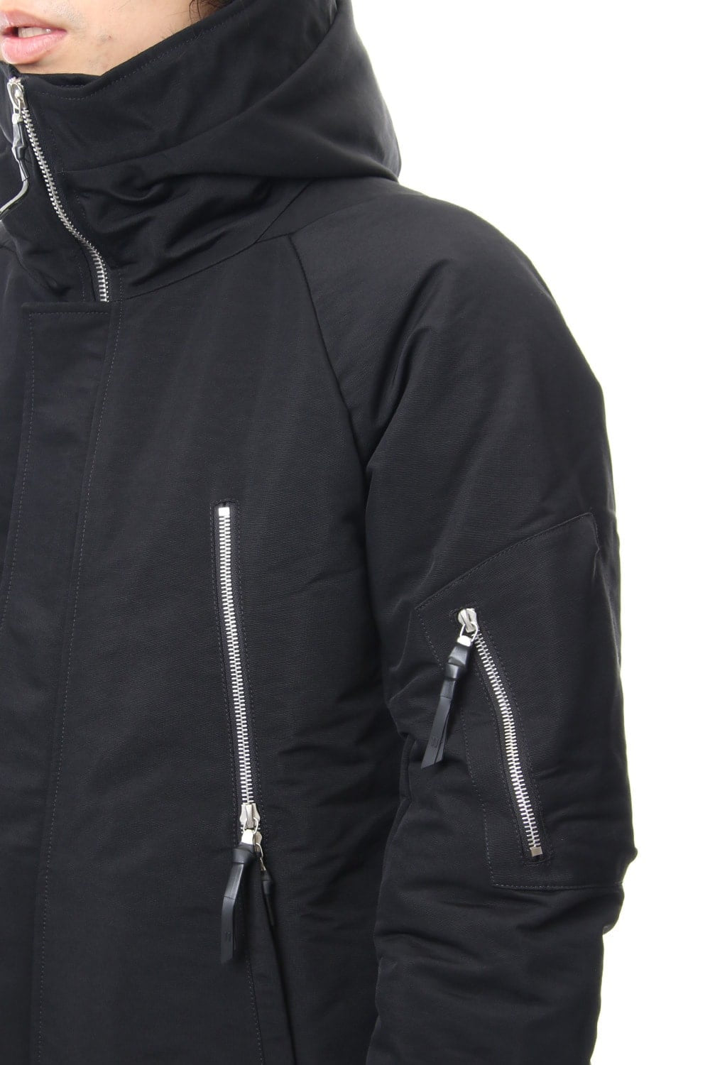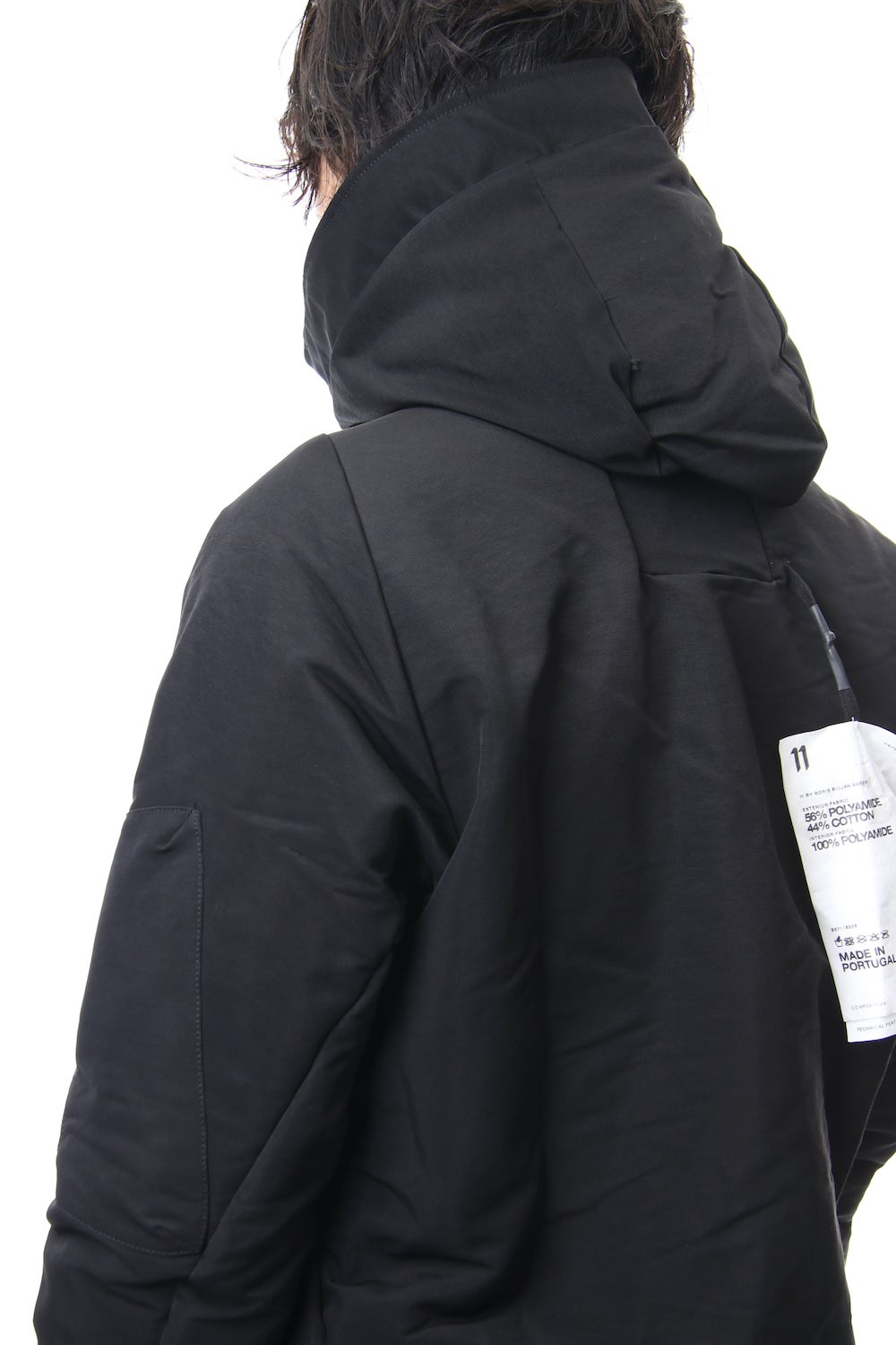 しっかりとした質感のポリアミド(ナイロン)とコットンの混紡素材を採用し、中綿が詰まっているもののスタイリッシュに仕上がっております。