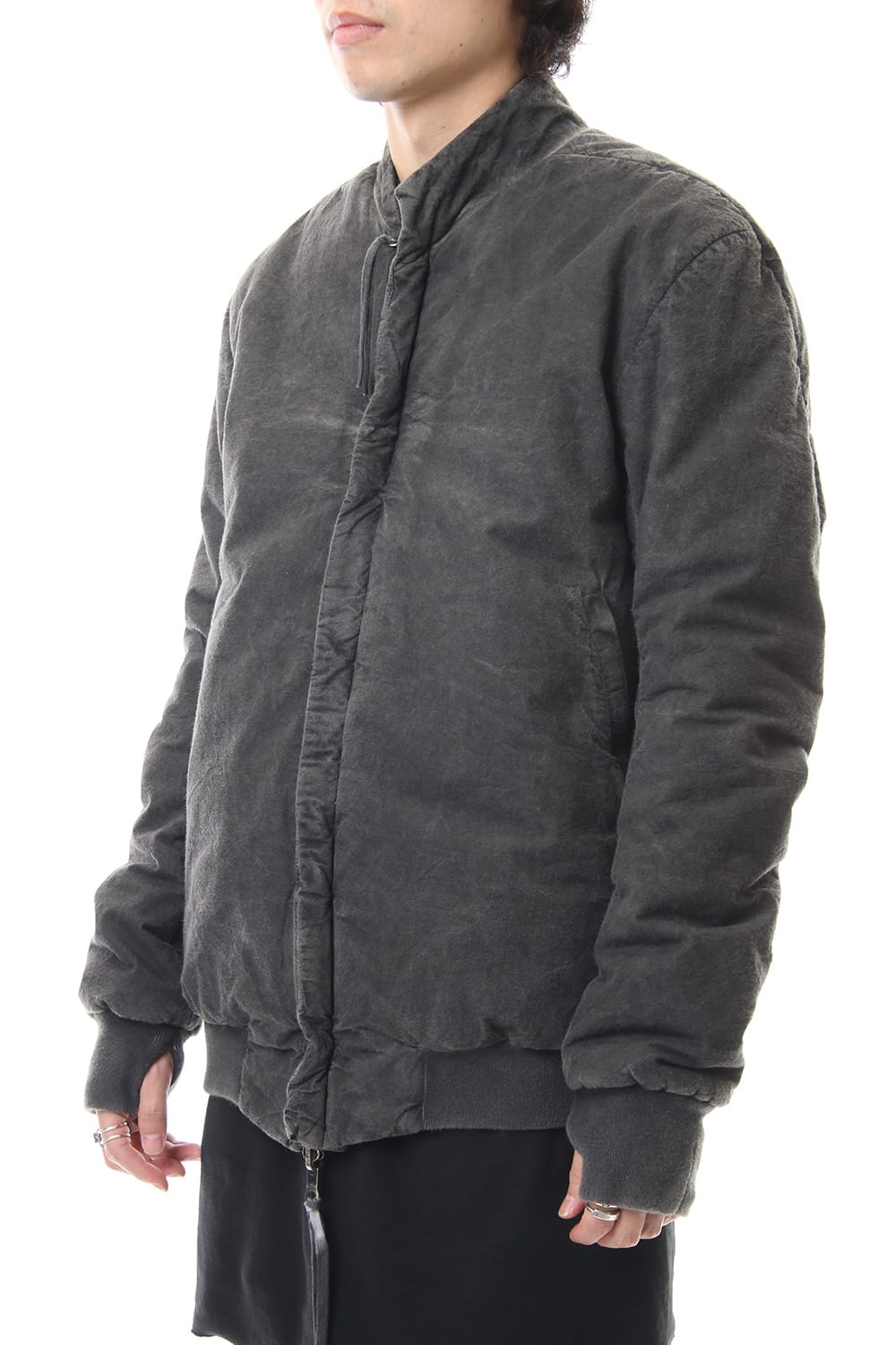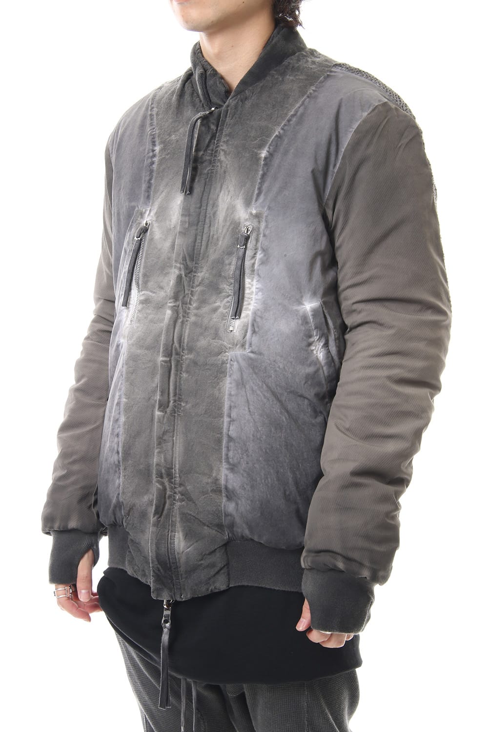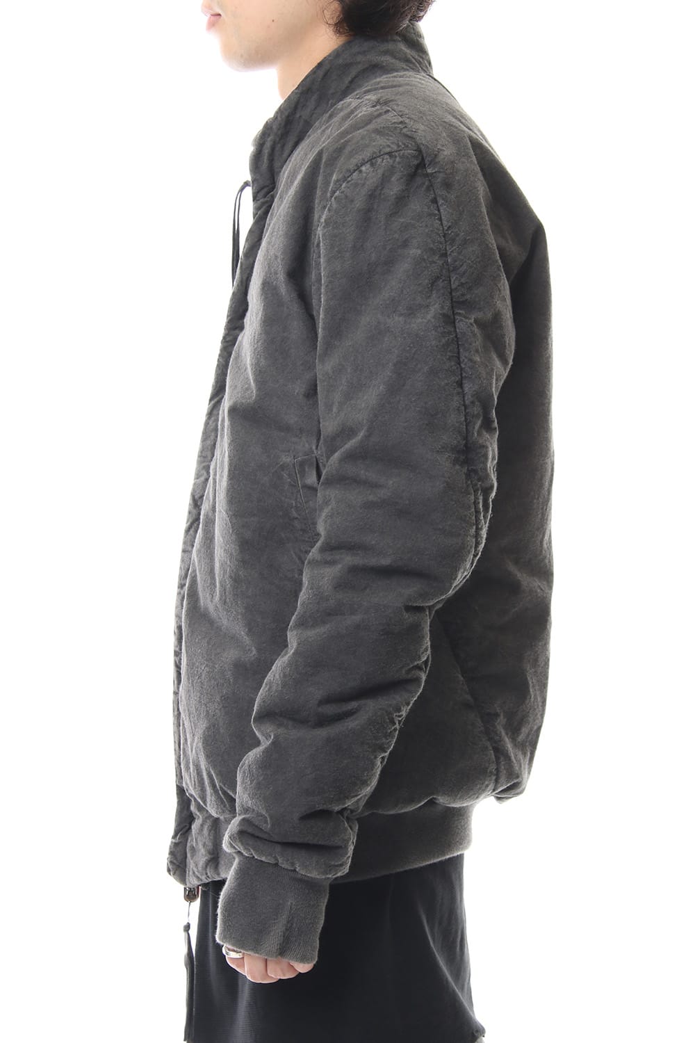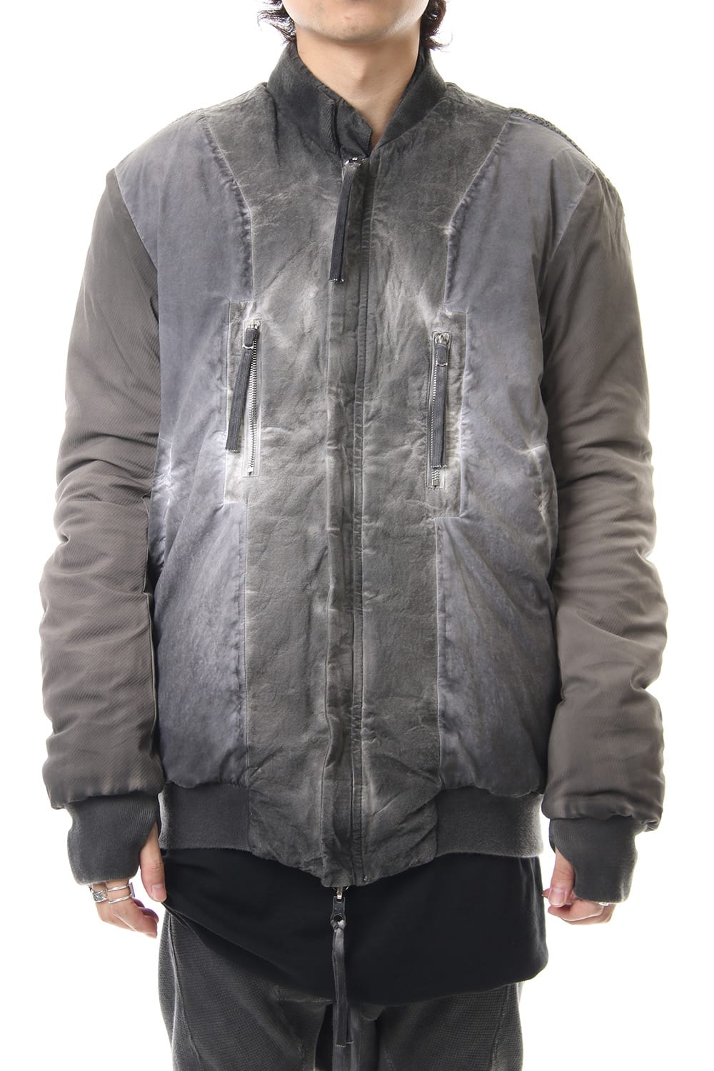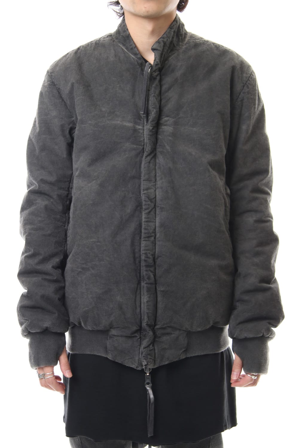 ランウェイでは裏を表に着用されていたリバーシブル仕様のボマージャケット。 レジンダイによるムラのある表情で表裏によって色味が大きく変化するため、その日のスタイリングに合わせて表裏の使い分けが可能です。 また、裏表どちらから見ても美しいシームの処理など、細部の作り込みまで抜かりがない同ブランドのクオリティの高さを味わっていただけるアイテムです。 ファスナーは、ダブルのリバーシブルファスナーですので、表裏どちらでもダブルファスナーとして使用可能です。