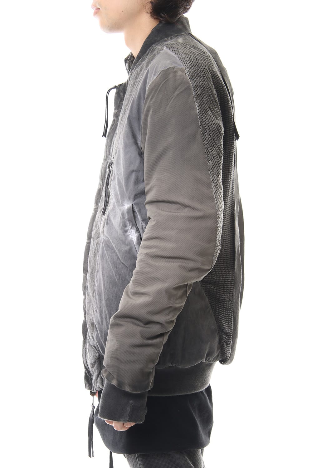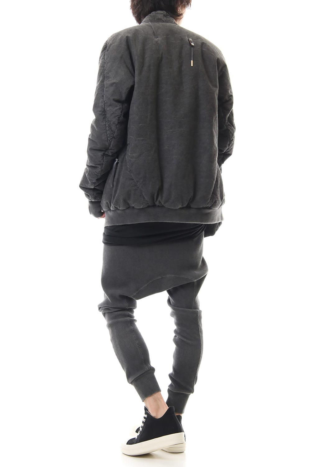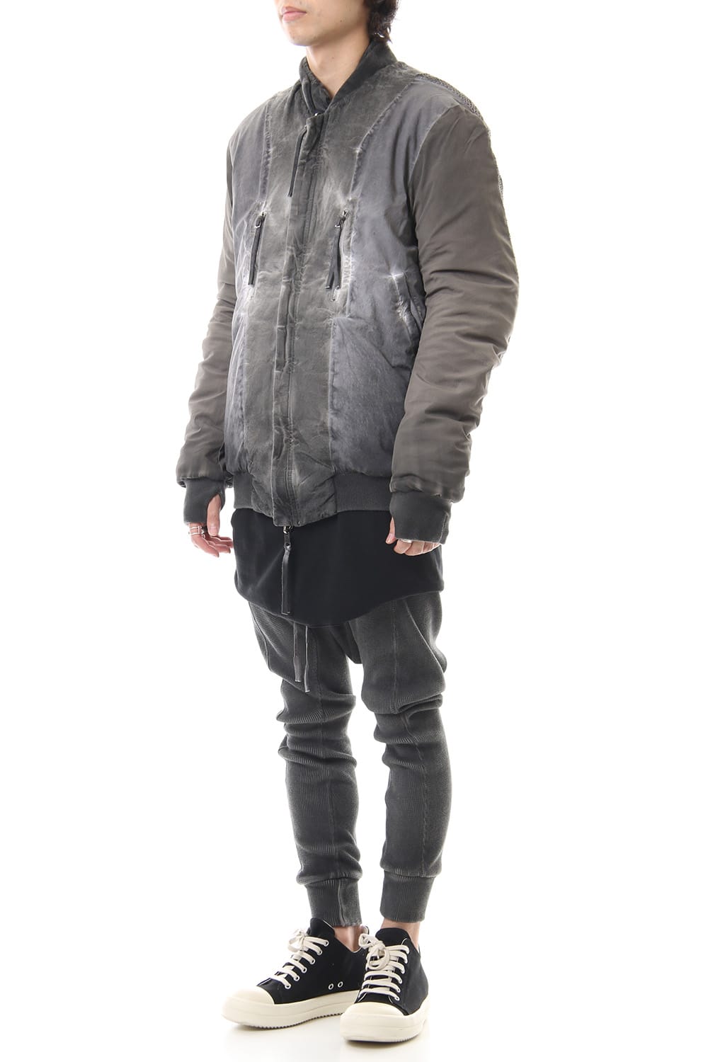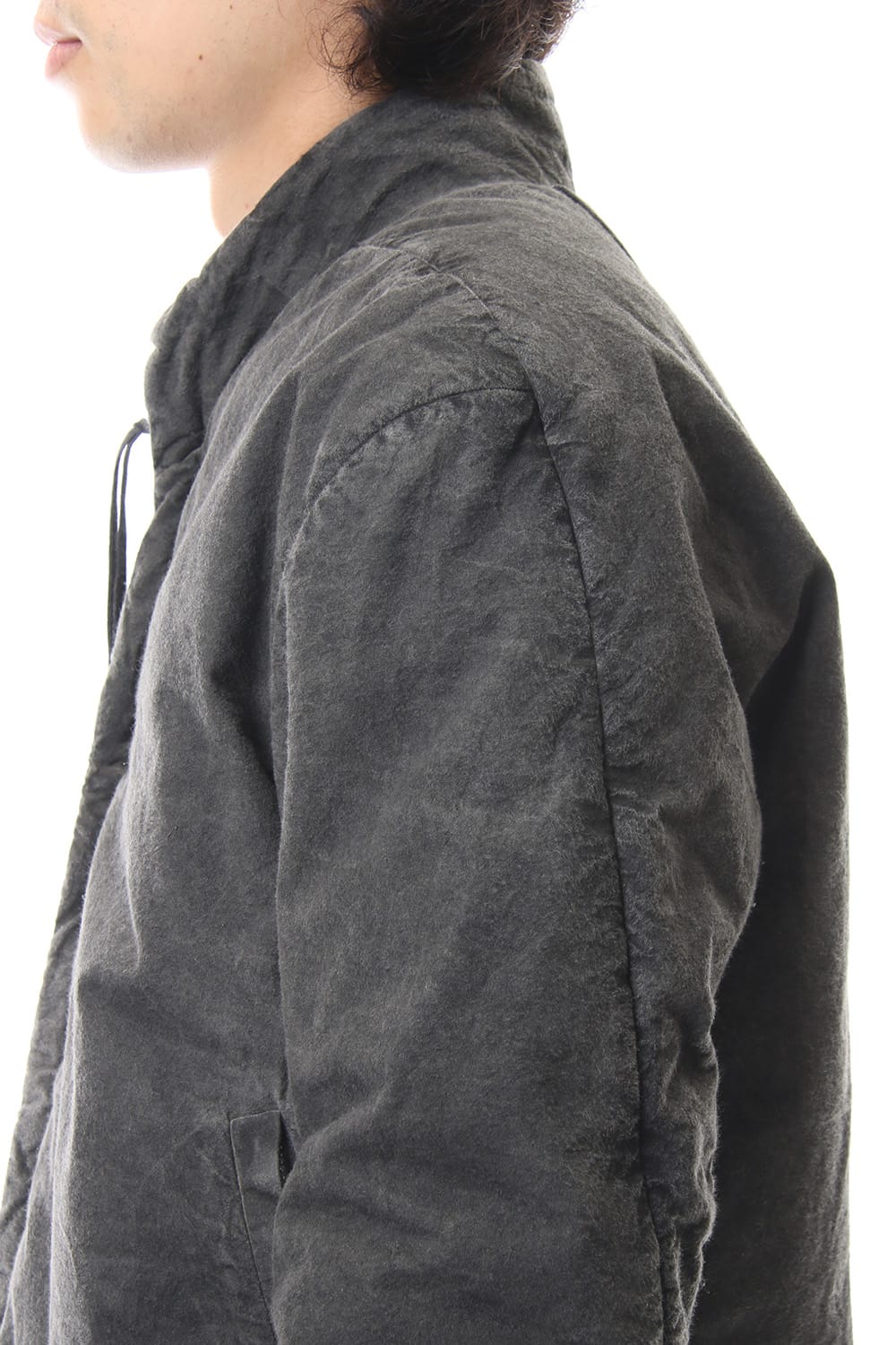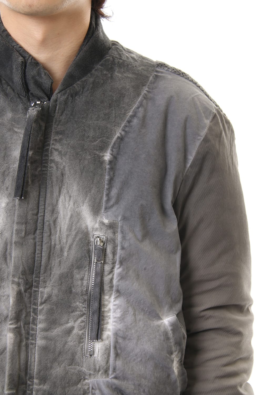 ランウェイでは裏を表に着用されていたリバーシブル仕様のボマージャケット。 レジンダイによるムラのある表情で表裏によって色味が大きく変化するため、その日のスタイリングに合わせて表裏の使い分けが可能です。 また、裏表どちらから見ても美しいシームの処理など、細部の作り込みまで抜かりがない同ブランドのクオリティの高さを味わっていただけるアイテムです。 ファスナーは、ダブルのリバーシブルファスナーですので、表裏どちらでもダブルファスナーとして使用可能です。