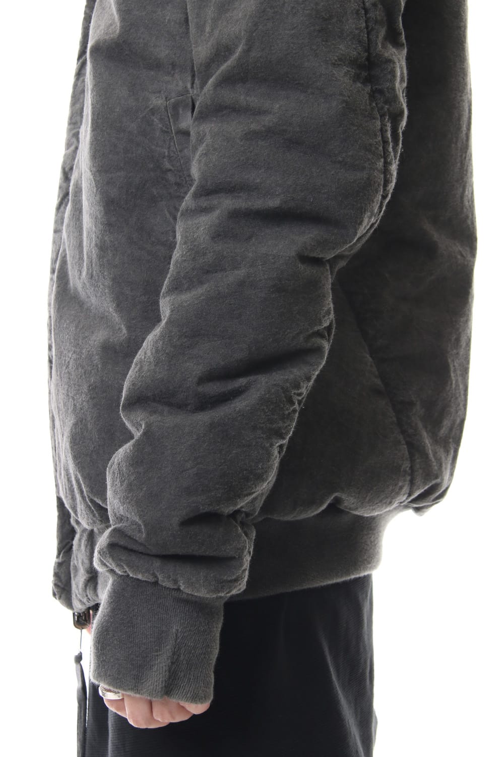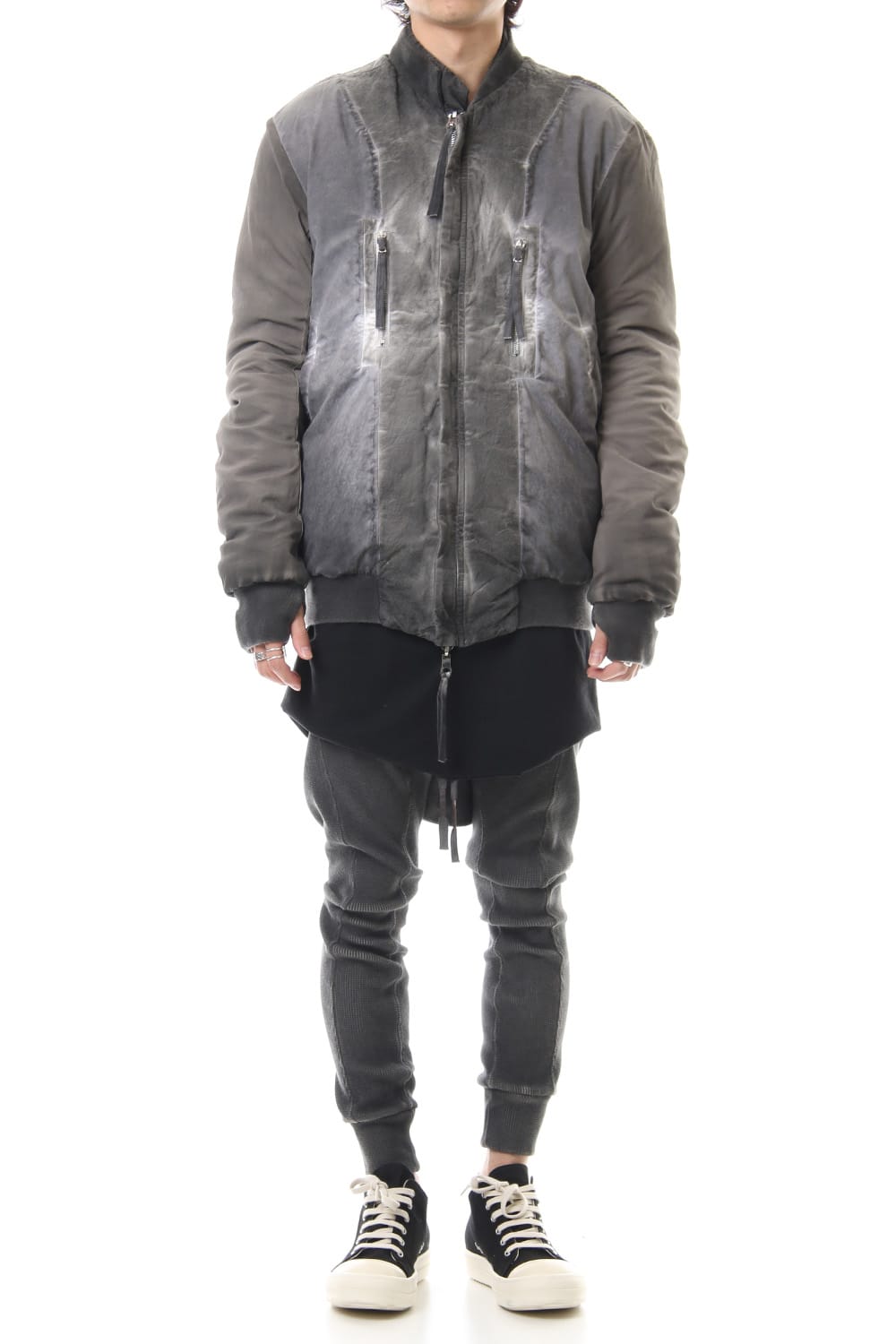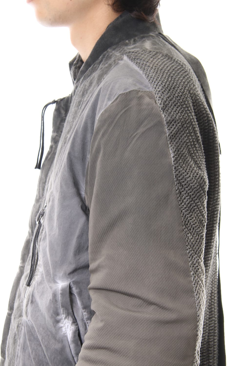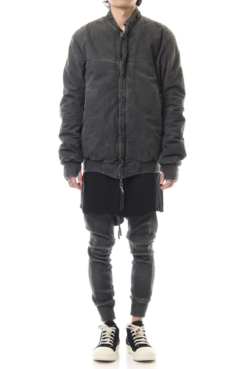 ランウェイでは裏を表に着用されていたリバーシブル仕様のボマージャケット。 レジンダイによるムラのある表情で表裏によって色味が大きく変化するため、その日のスタイリングに合わせて表裏の使い分けが可能です。 また、裏表どちらから見ても美しいシームの処理など、細部の作り込みまで抜かりがない同ブランドのクオリティの高さを味わっていただけるアイテムです。 ファスナーは、ダブルのリバーシブルファスナーですので、表裏どちらでもダブルファスナーとして使用可能です。