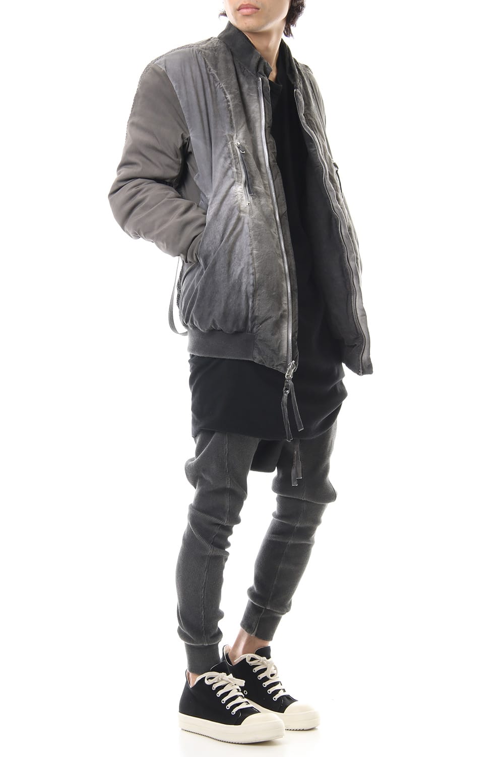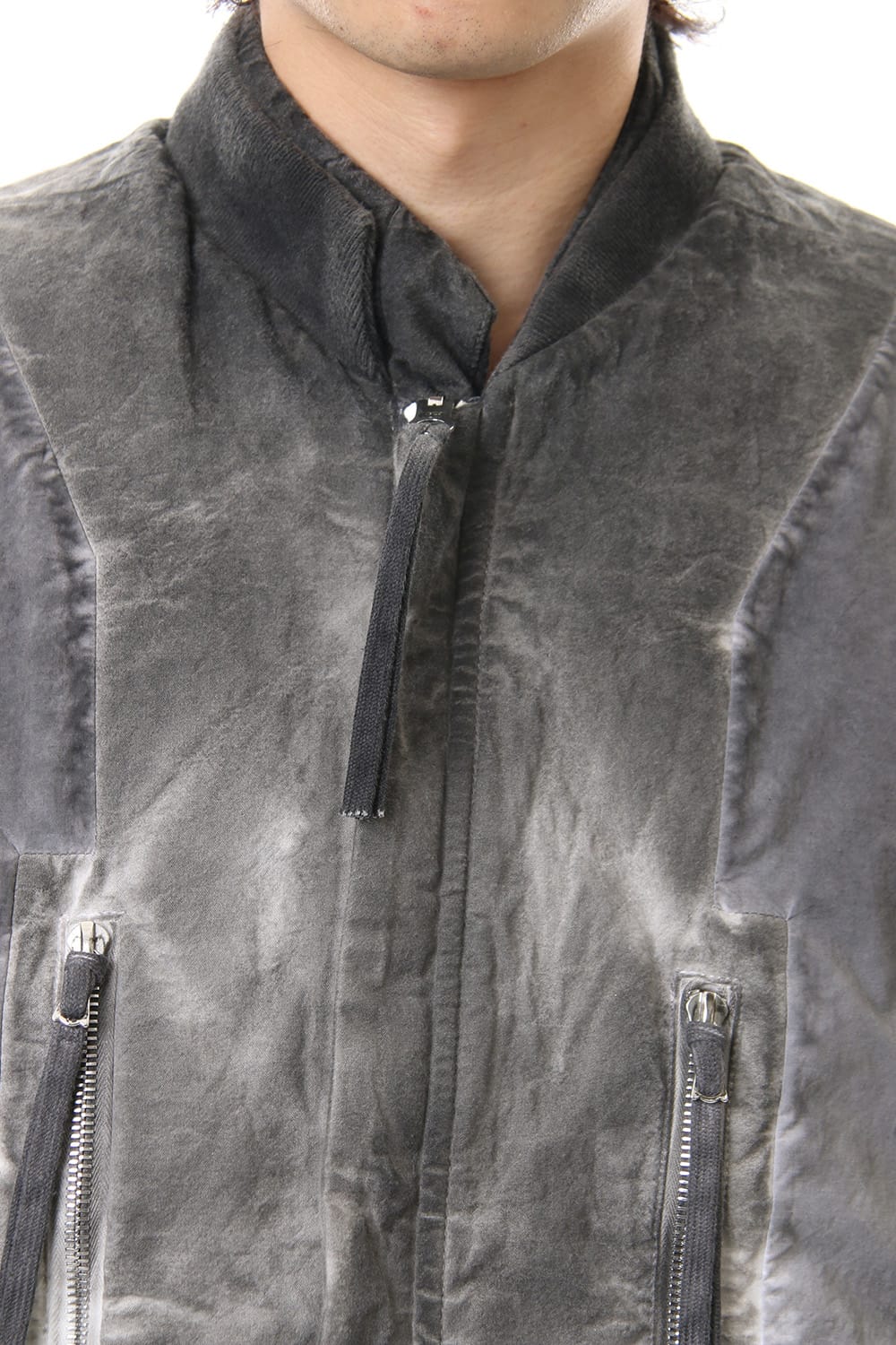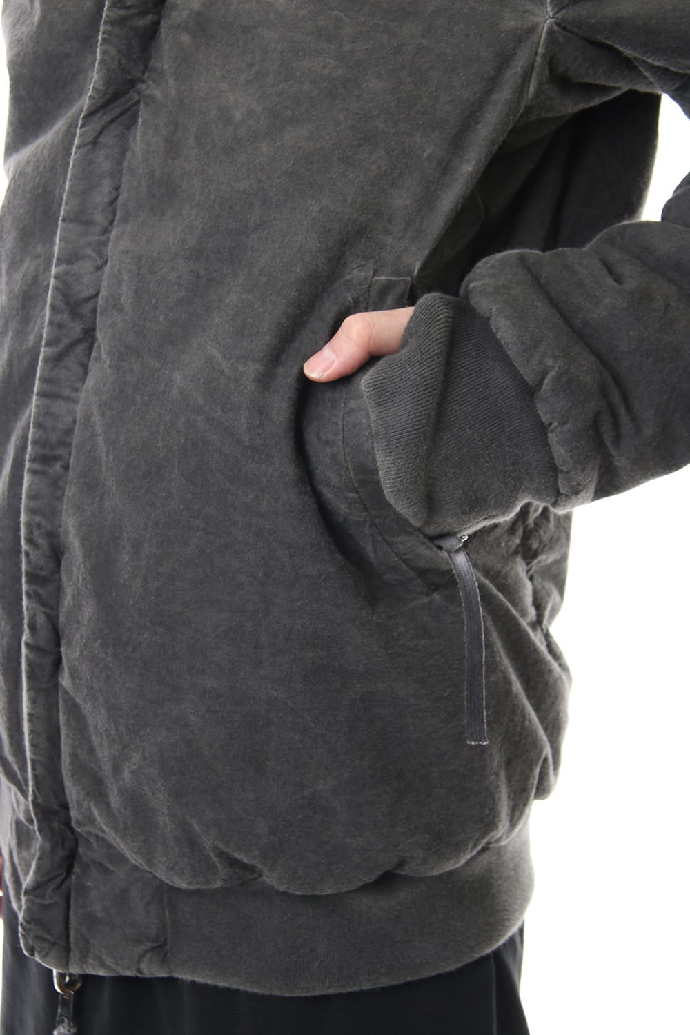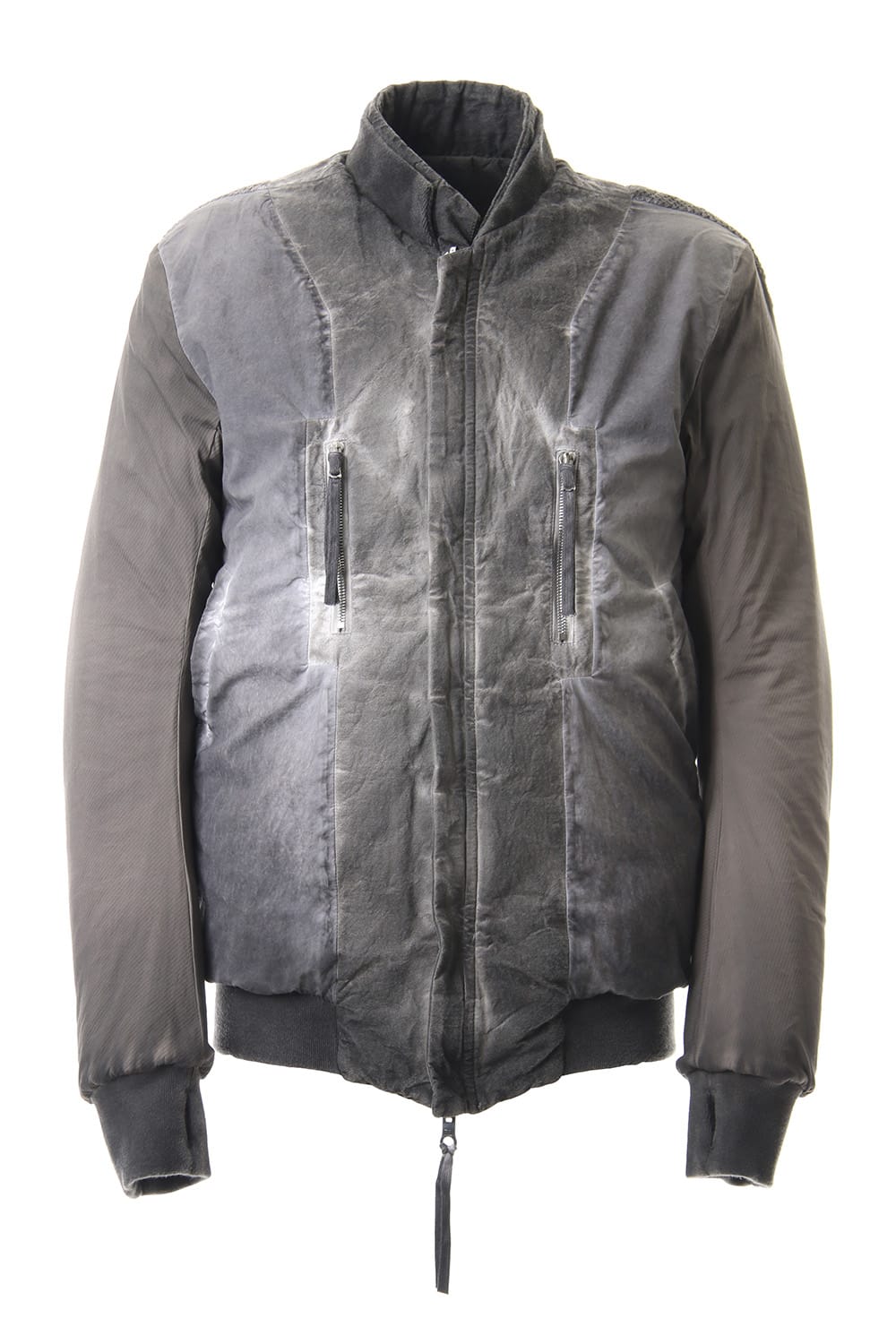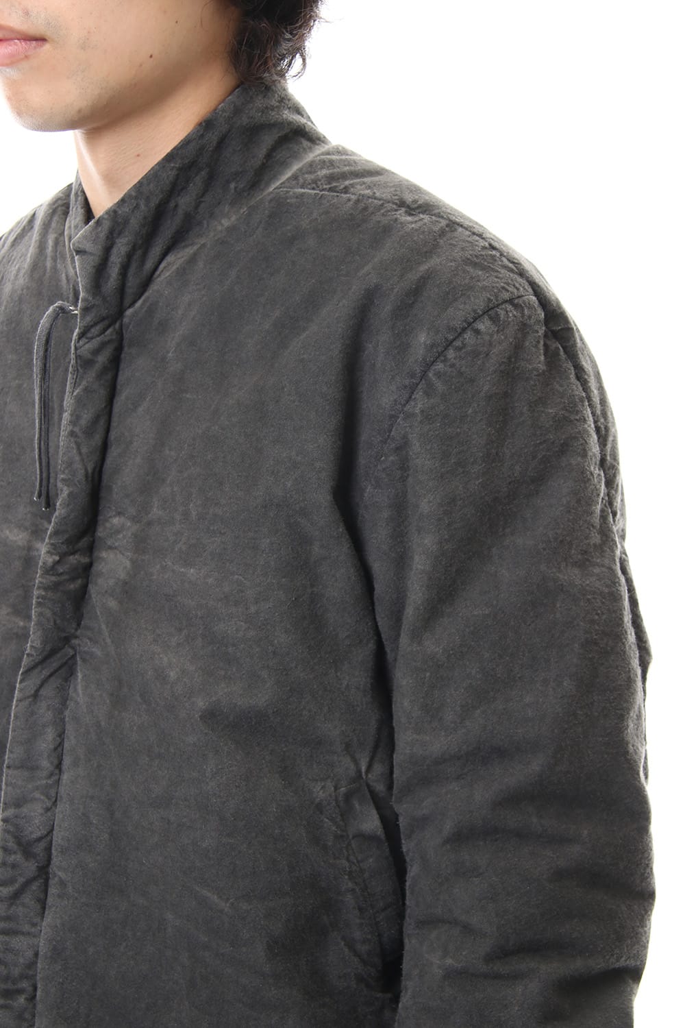 ランウェイでは裏を表に着用されていたリバーシブル仕様のボマージャケット。 レジンダイによるムラのある表情で表裏によって色味が大きく変化するため、その日のスタイリングに合わせて表裏の使い分けが可能です。 また、裏表どちらから見ても美しいシームの処理など、細部の作り込みまで抜かりがない同ブランドのクオリティの高さを味わっていただけるアイテムです。 ファスナーは、ダブルのリバーシブルファスナーですので、表裏どちらでもダブルファスナーとして使用可能です。