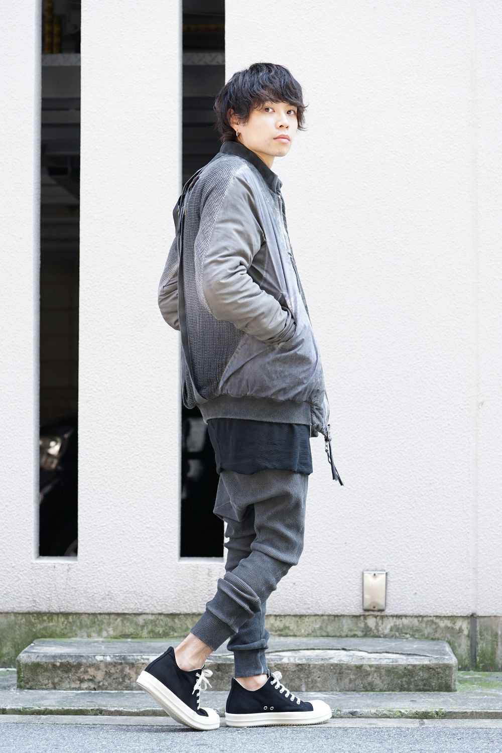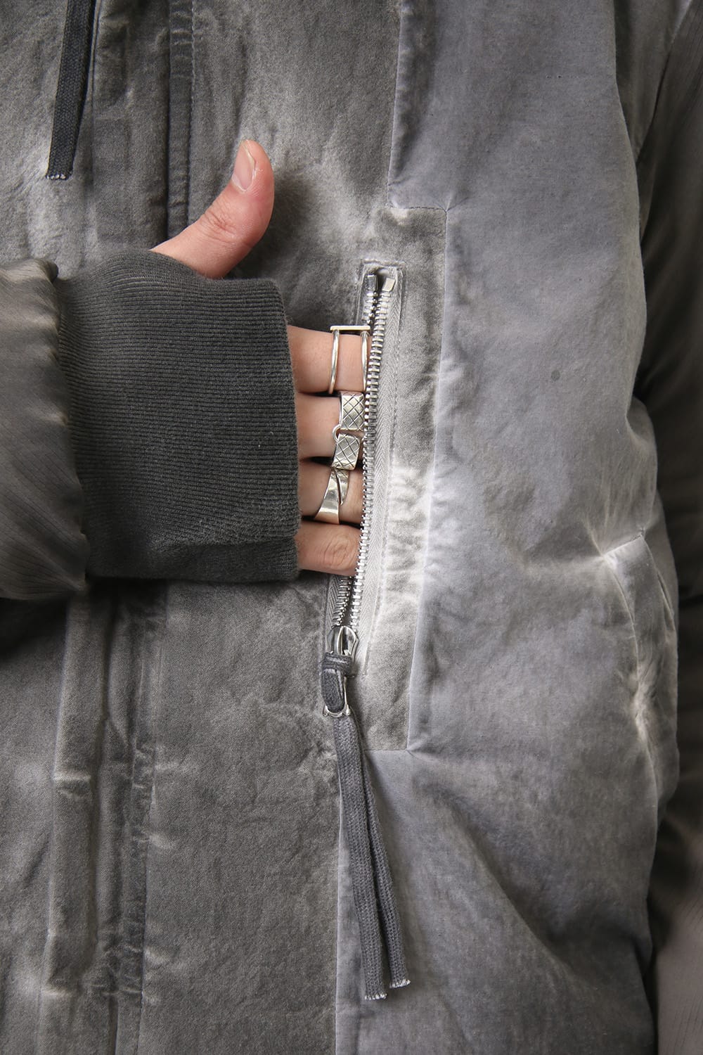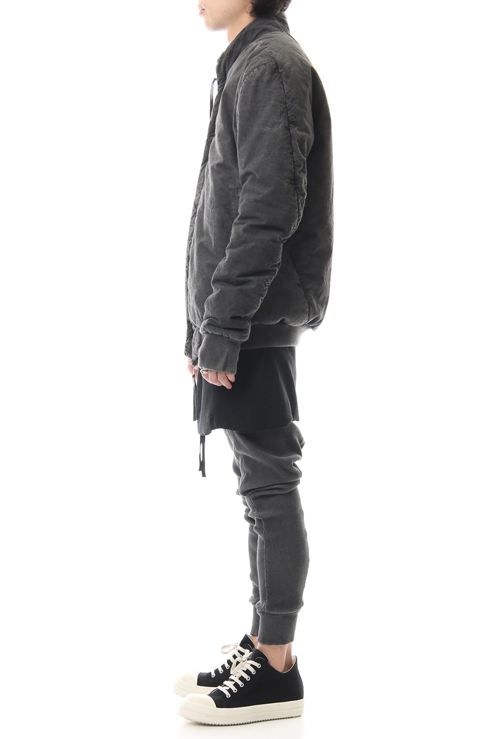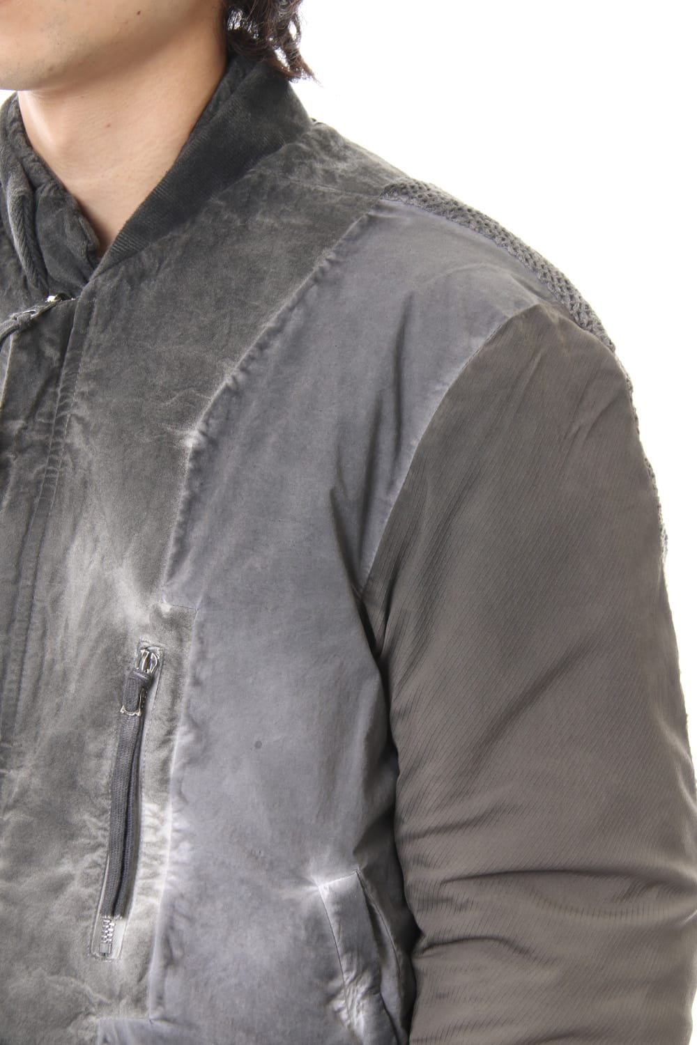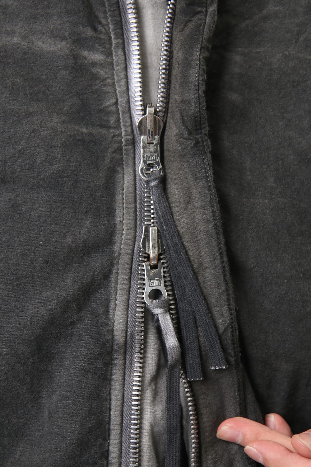 ランウェイでは裏を表に着用されていたリバーシブル仕様のボマージャケット。 レジンダイによるムラのある表情で表裏によって色味が大きく変化するため、その日のスタイリングに合わせて表裏の使い分けが可能です。 また、裏表どちらから見ても美しいシームの処理など、細部の作り込みまで抜かりがない同ブランドのクオリティの高さを味わっていただけるアイテムです。 ファスナーは、ダブルのリバーシブルファスナーですので、表裏どちらでもダブルファスナーとして使用可能です。