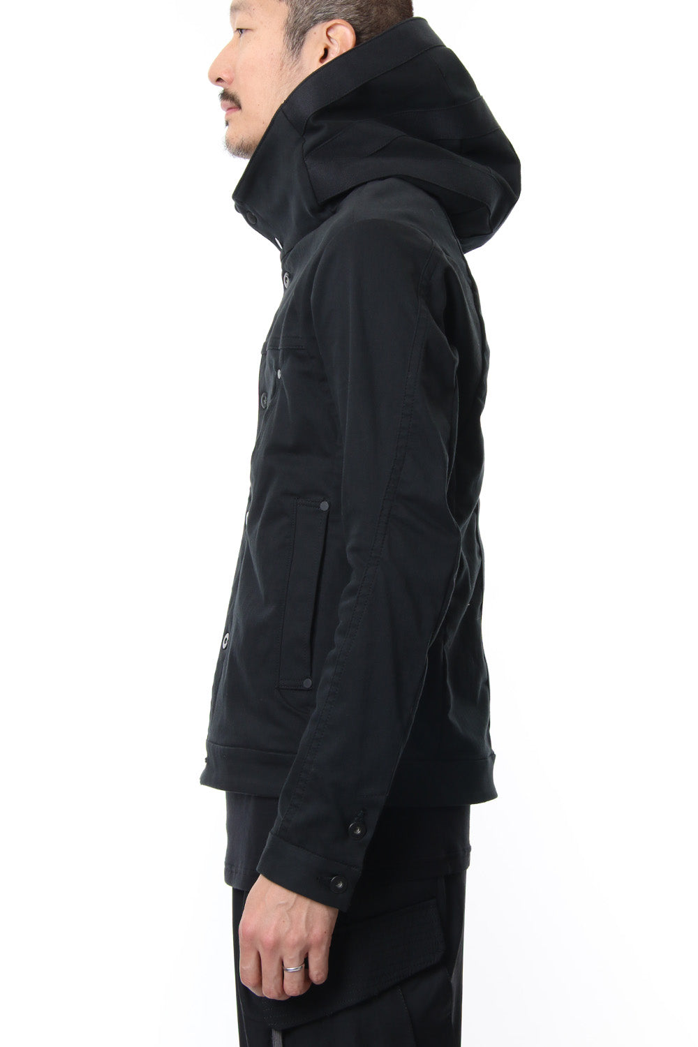 糸に付着させた微粒子カプセルにより体感温度を一定に保とうとする機能を持つ宇宙服に使われるアウトラスト糸を使用したGジャンタイプのフーデットジャケット。