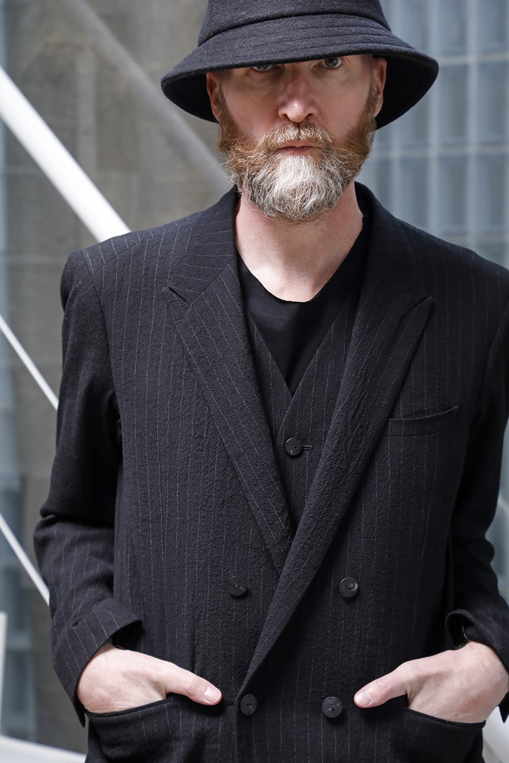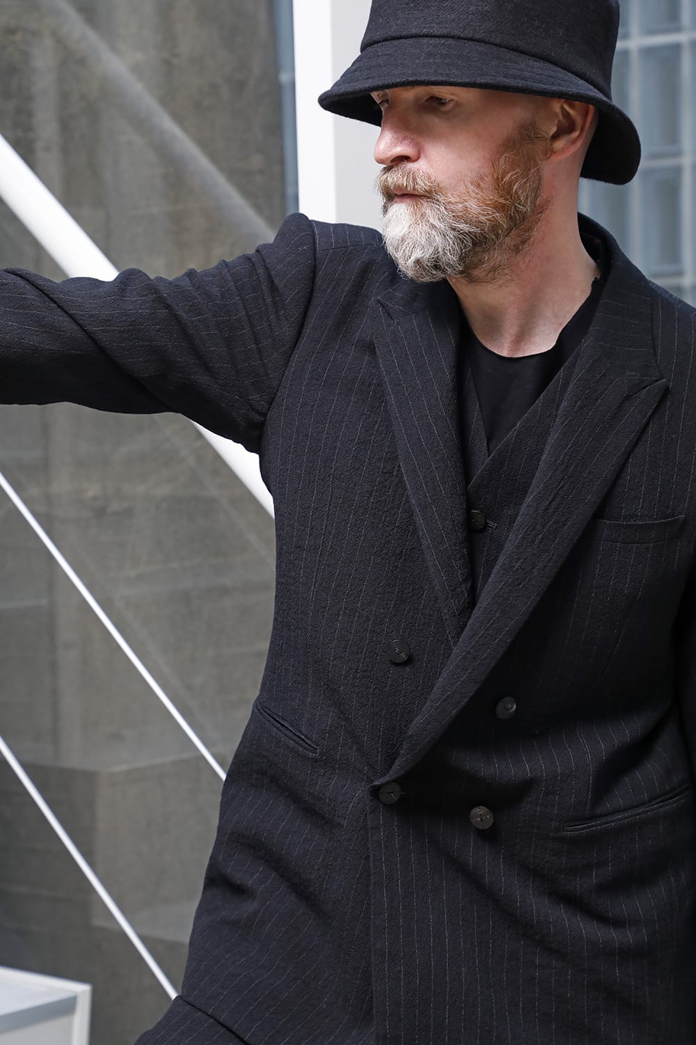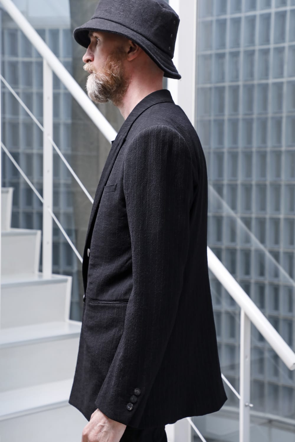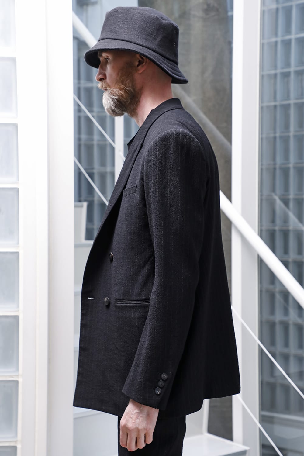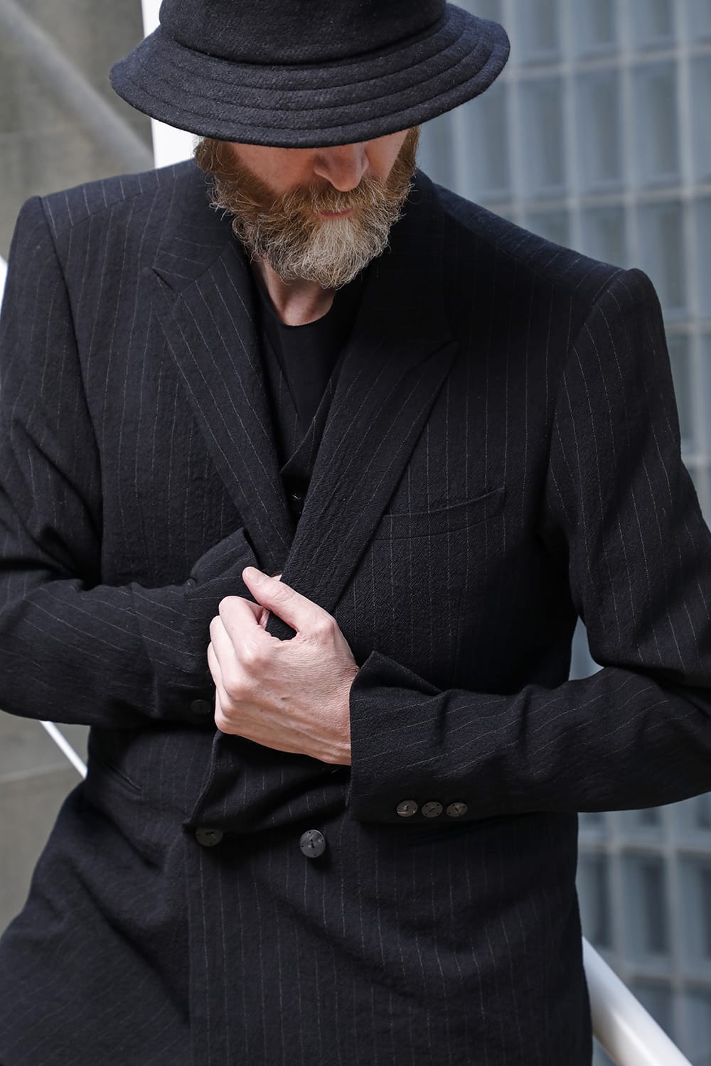 デザインはDEVOA定番のクラシックなテーラードジャケットをベースに、ピークドラペルで制作。