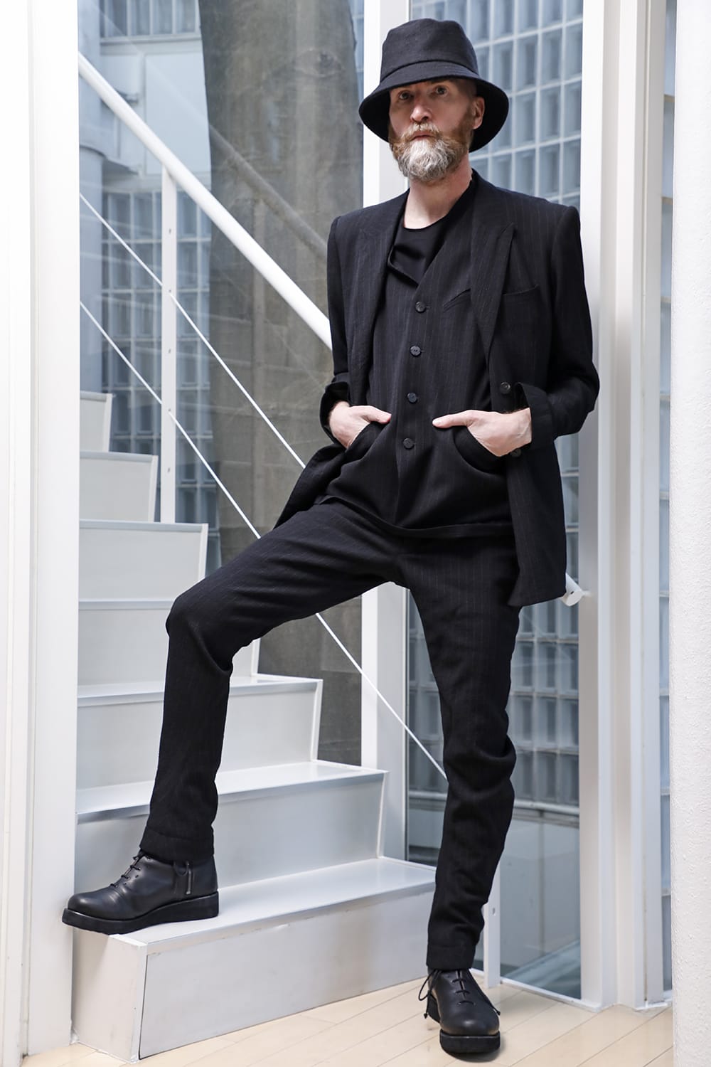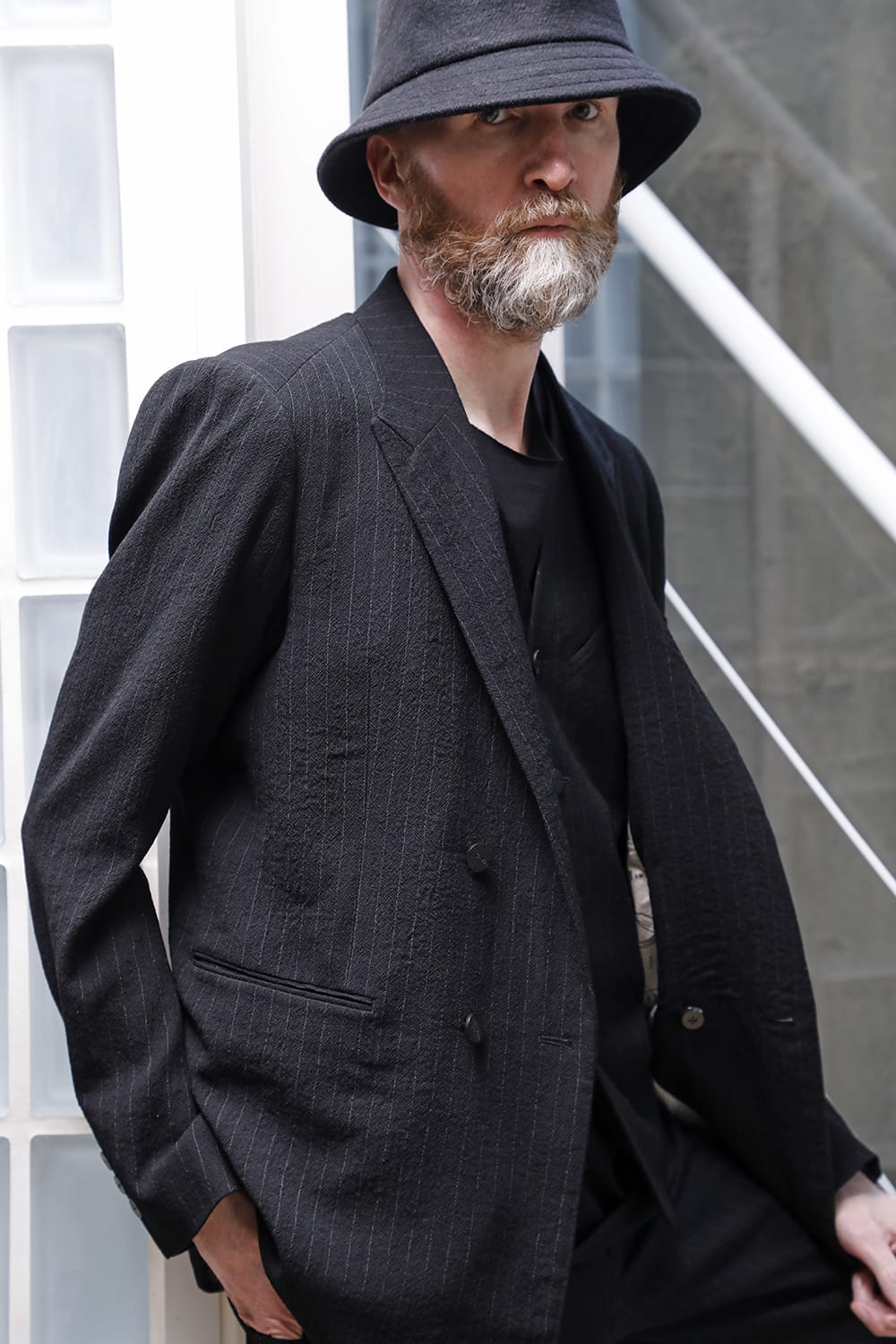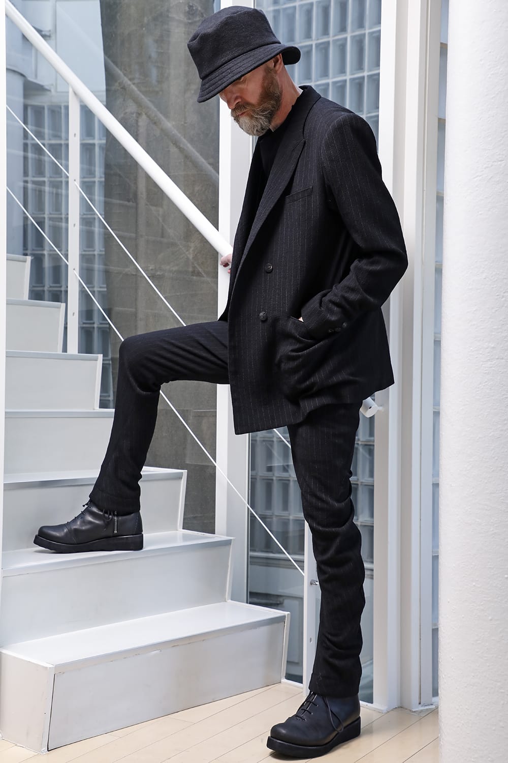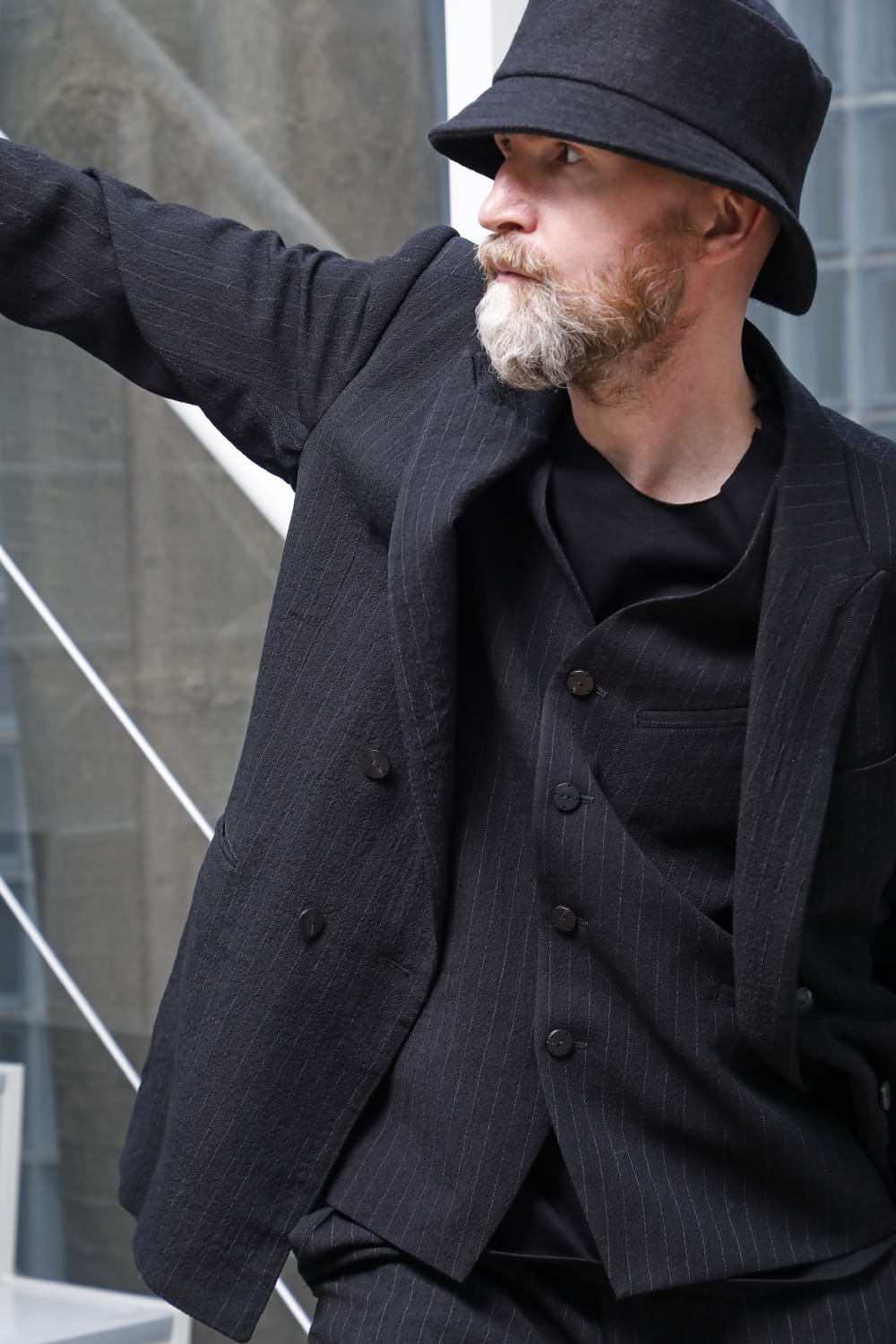 デザインはDEVOA定番のクラシックなテーラードジャケットをベースに、ピークドラペルで制作。