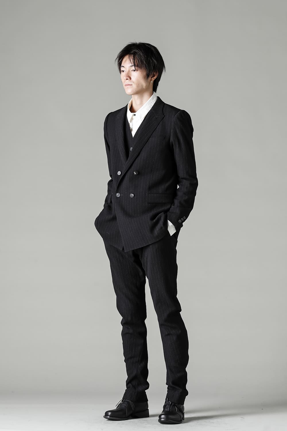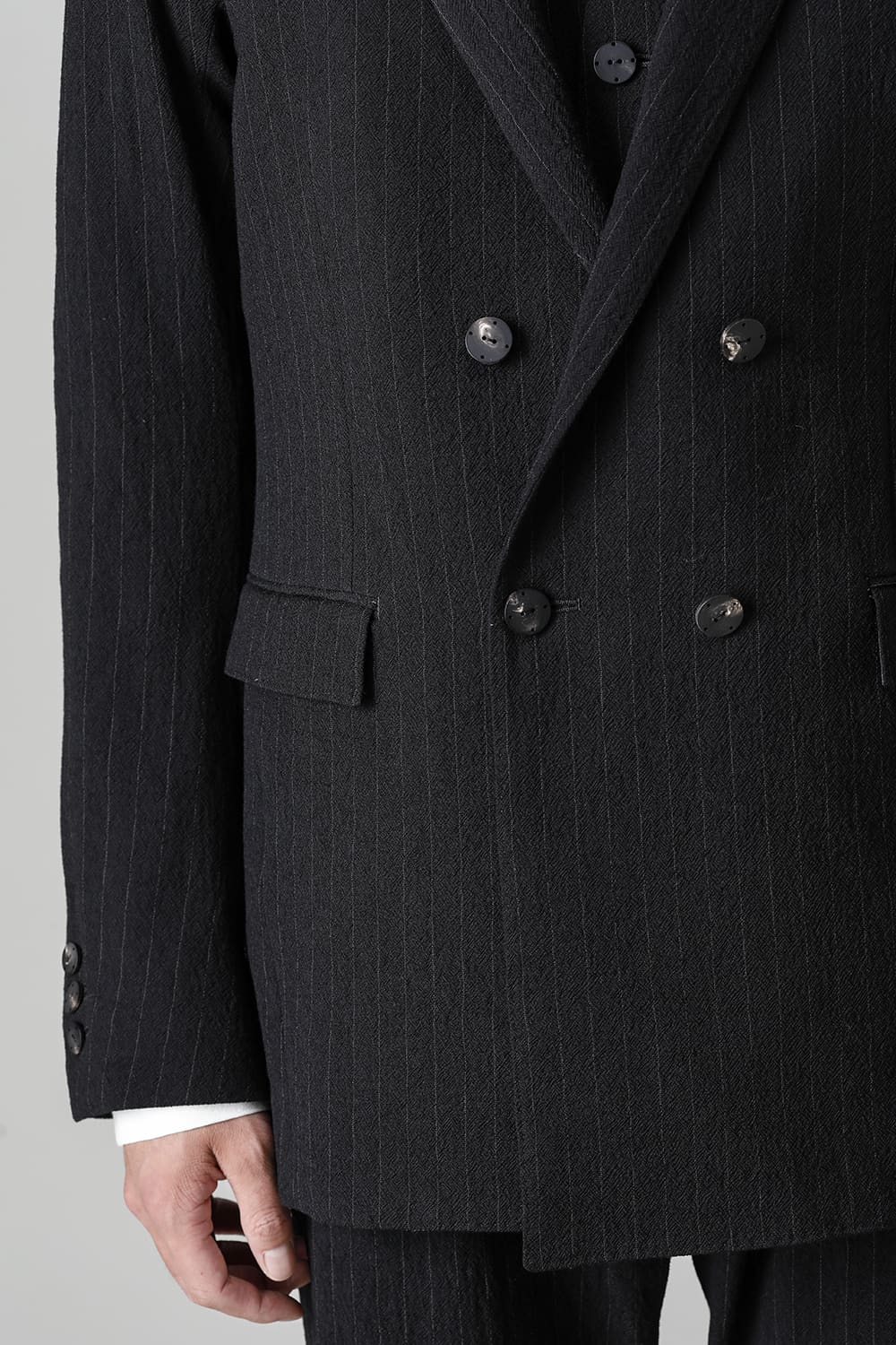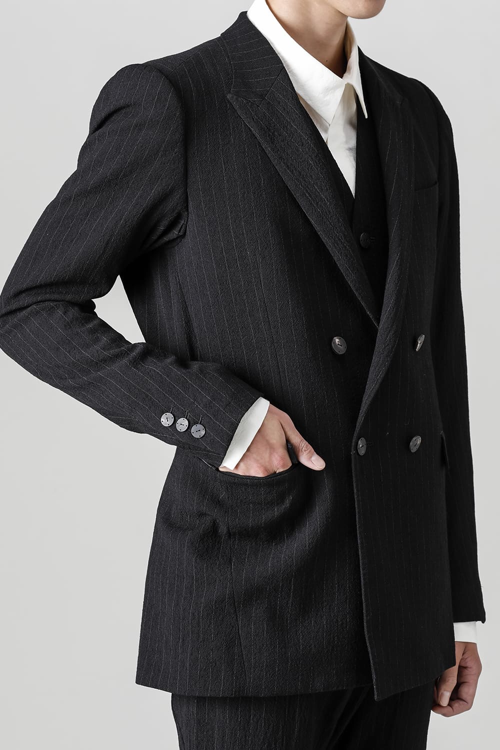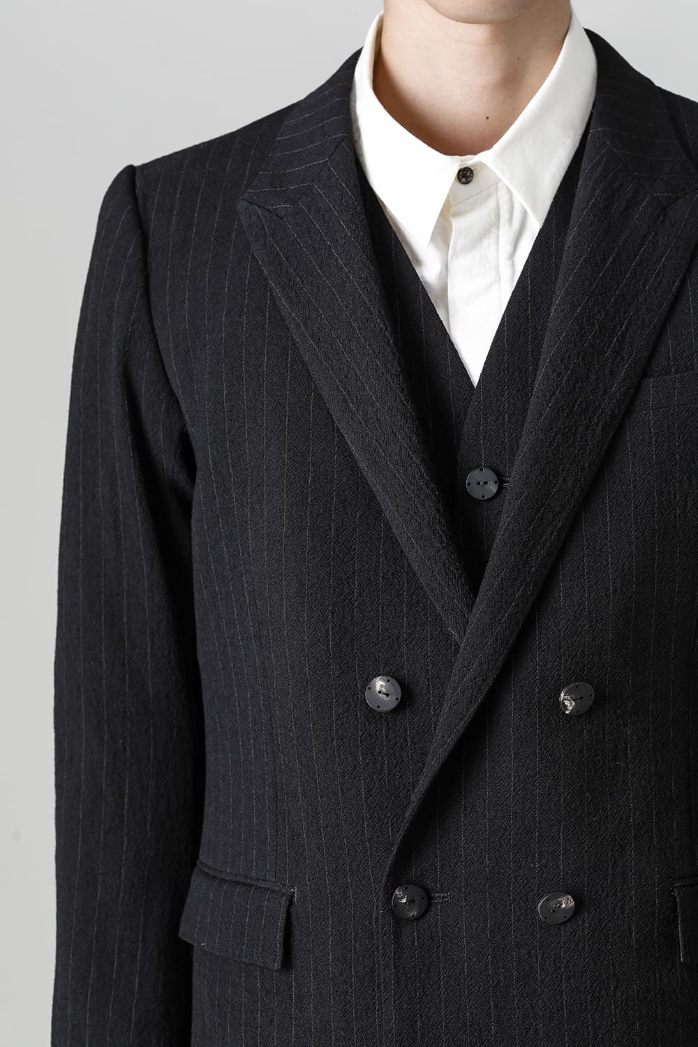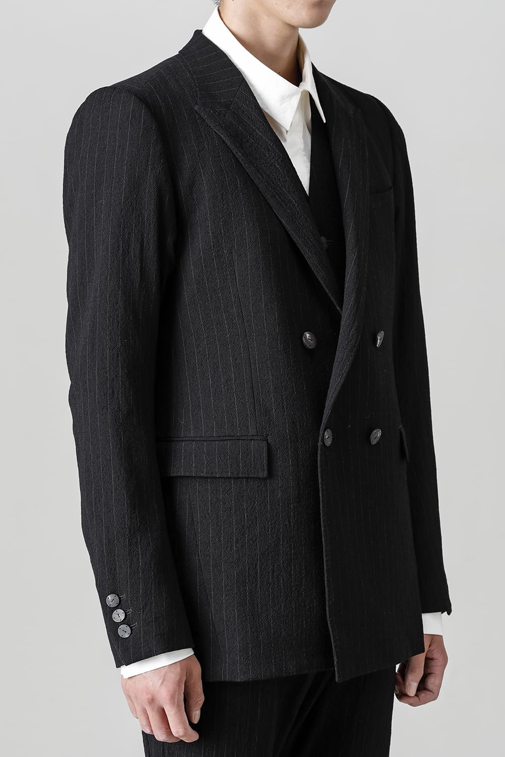 デザインはDEVOA定番のクラシックなテーラードジャケットをベースに、ピークドラペルで制作。