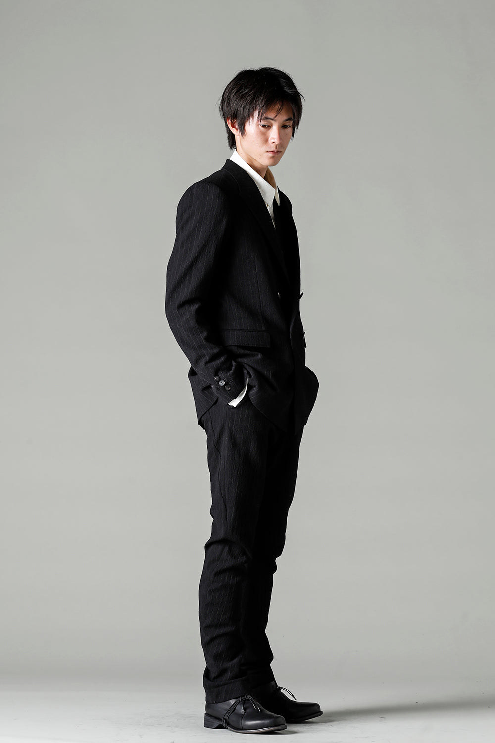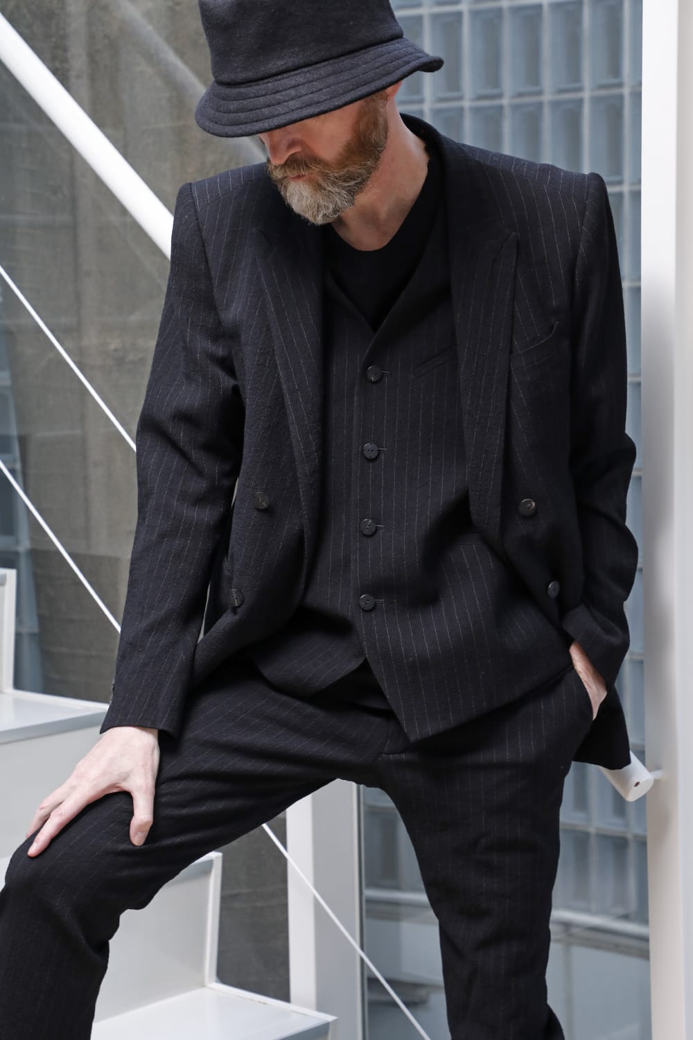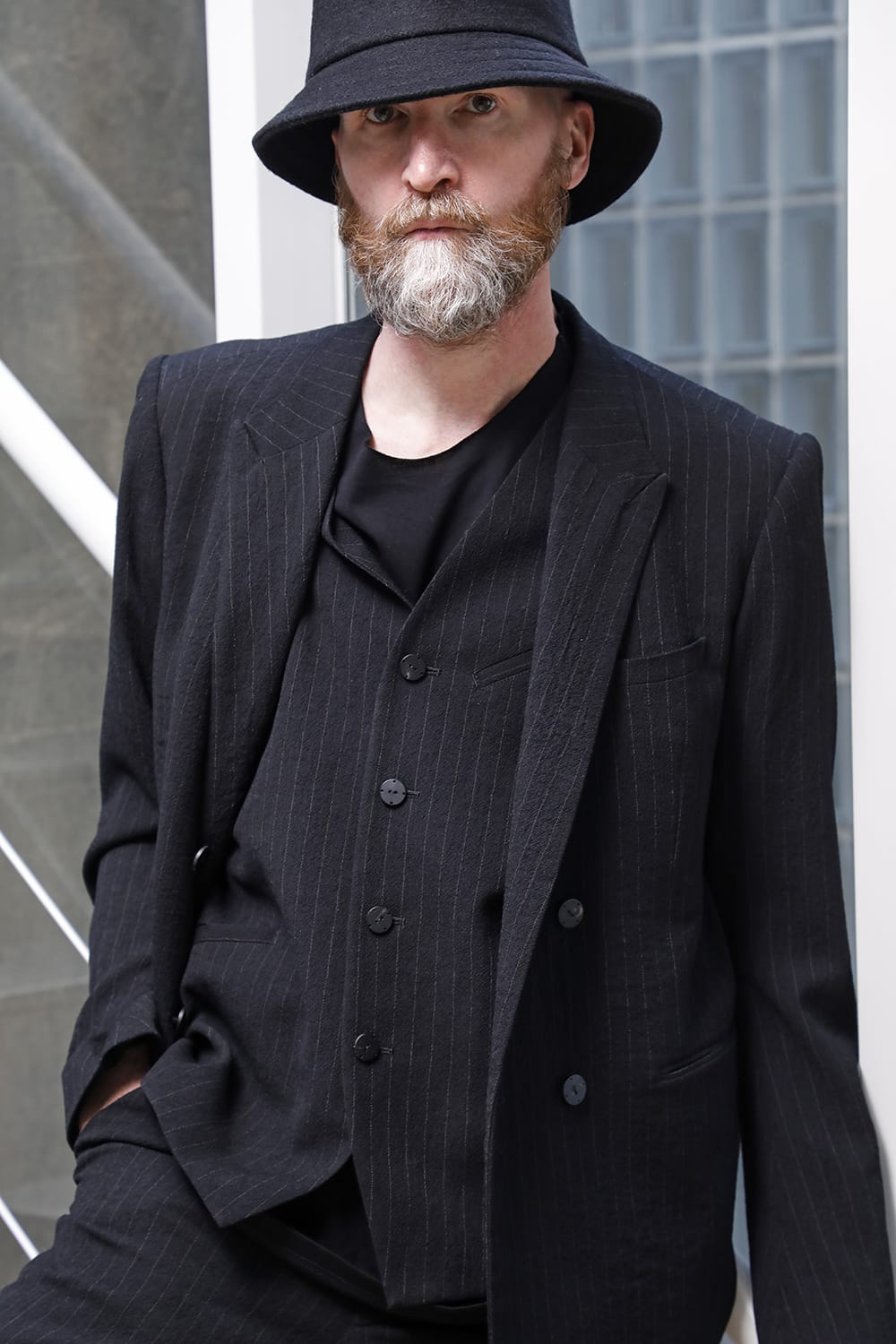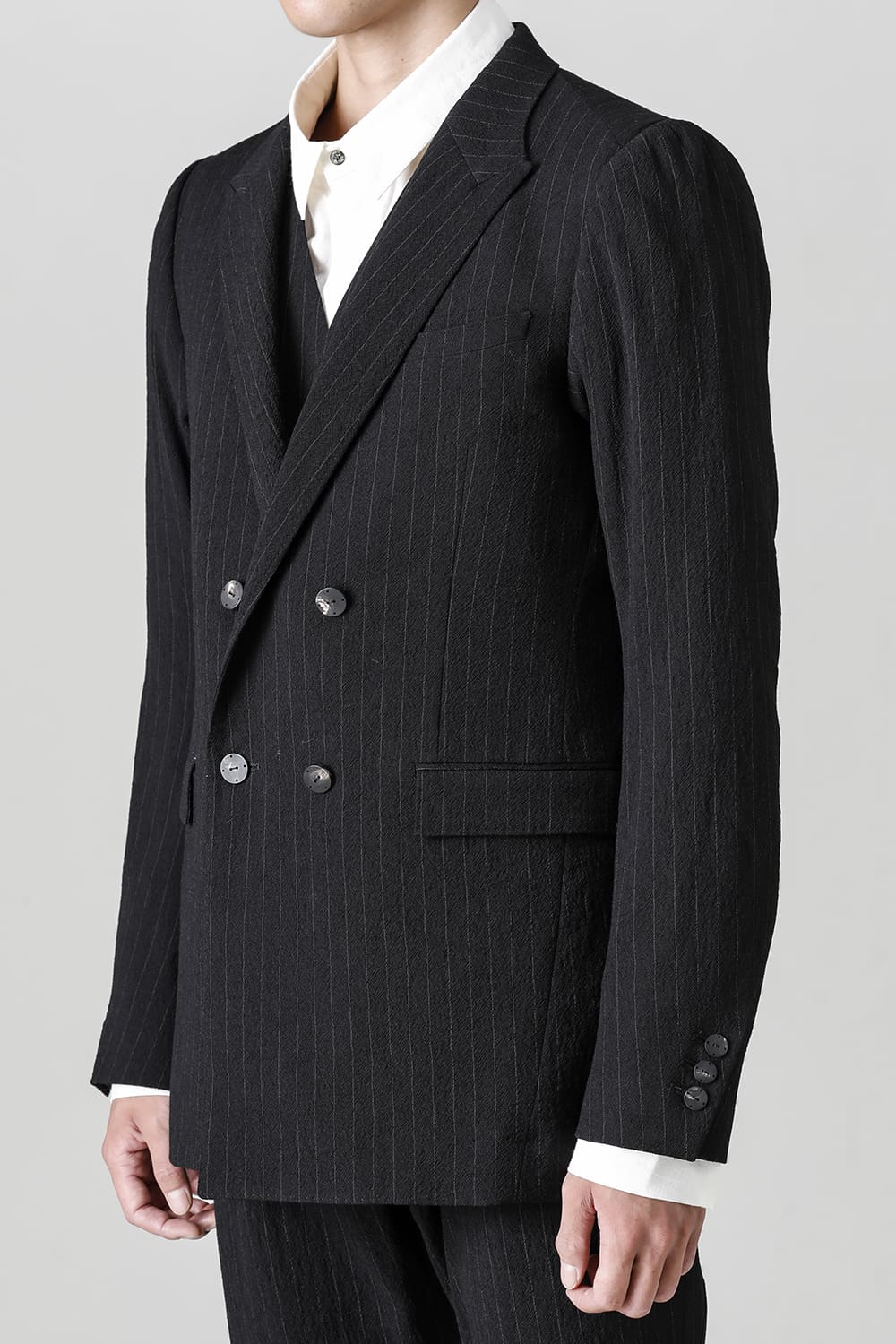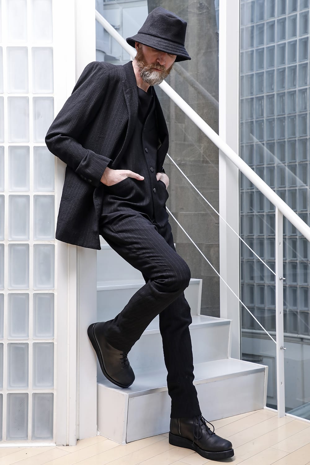 デザインはDEVOA定番のクラシックなテーラードジャケットをベースに、ピークドラペルで制作。