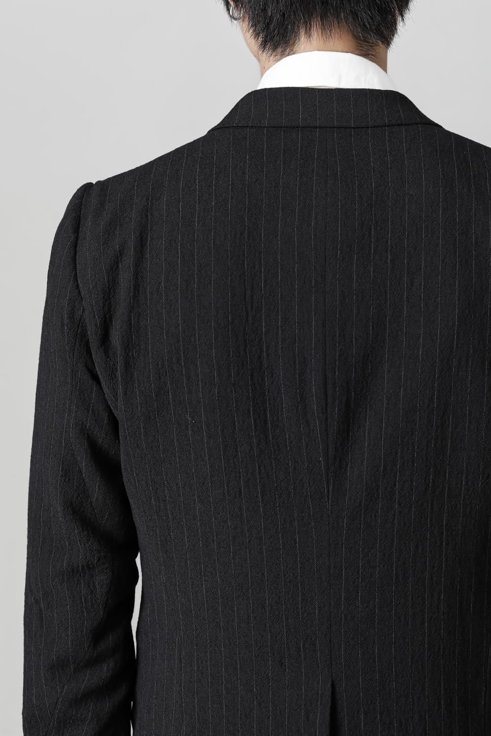 ダブルに見えるデザインですが、ボタンは一箇所のみで止める仕様で、フロントの重なりも通常のダブルと比べると浅めです。