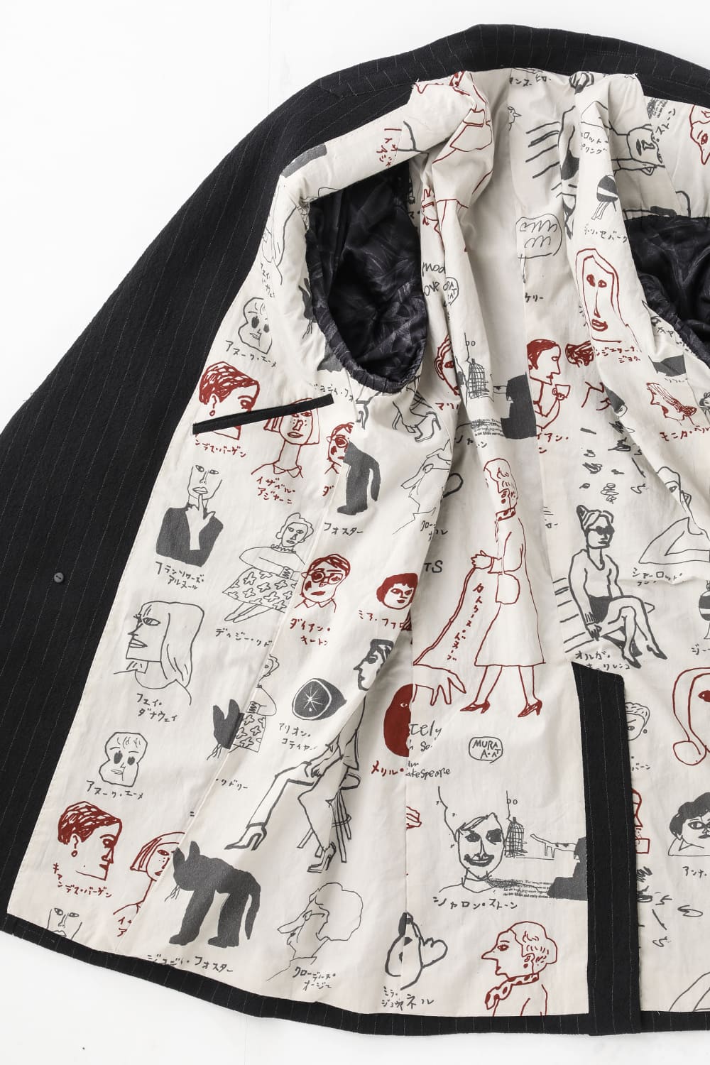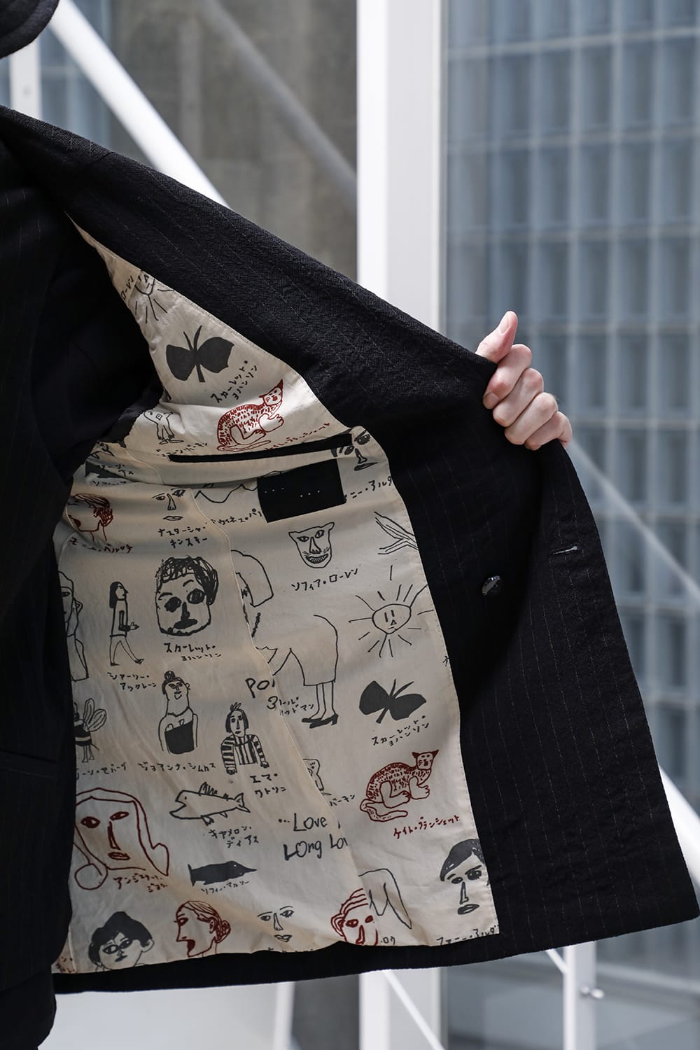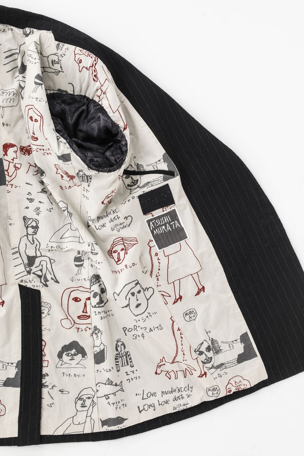 裏身頃のみイラストレーター、村田篤史氏のイラストをプリントしたコットンの裏地を使用しています。