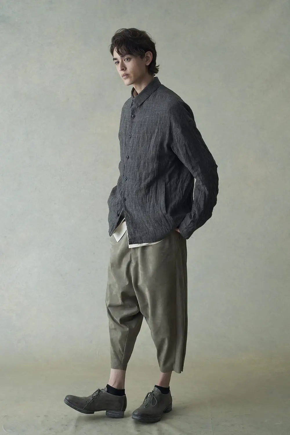リネン特有の通気性と軽さ、洗いをかけた風合いと落ち着いた色味が特徴です。