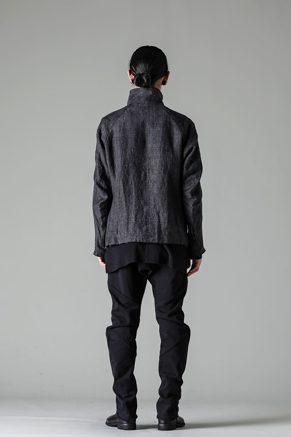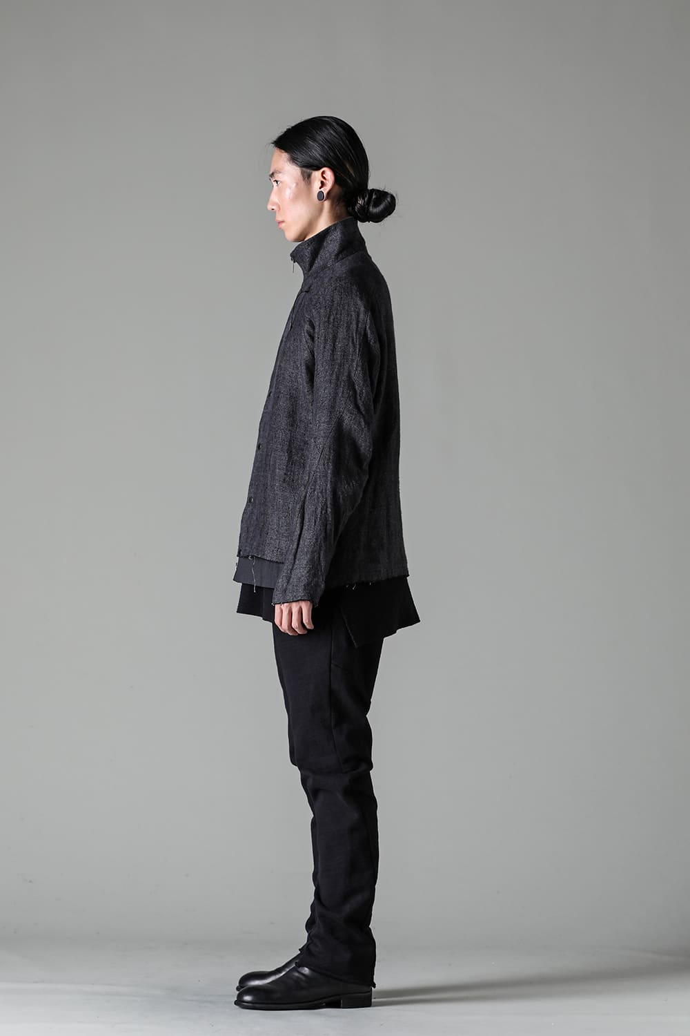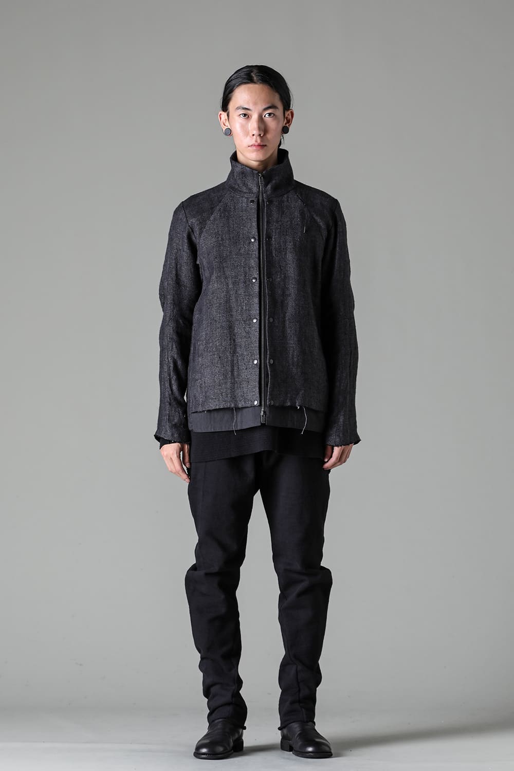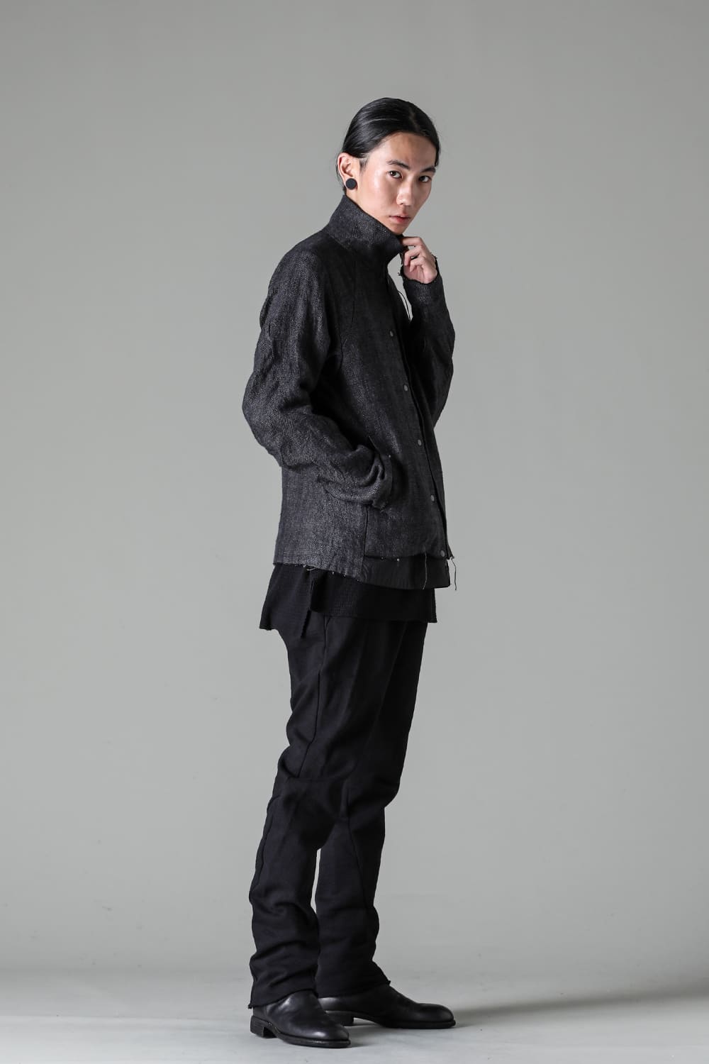 プルプルとした質感でしなるような動きとハリがある太いリネン糸を独自の加工を施し、着用者の皺がそのまま残るようなヴィンテージの雰囲気を持った特別なリネン素材です。
