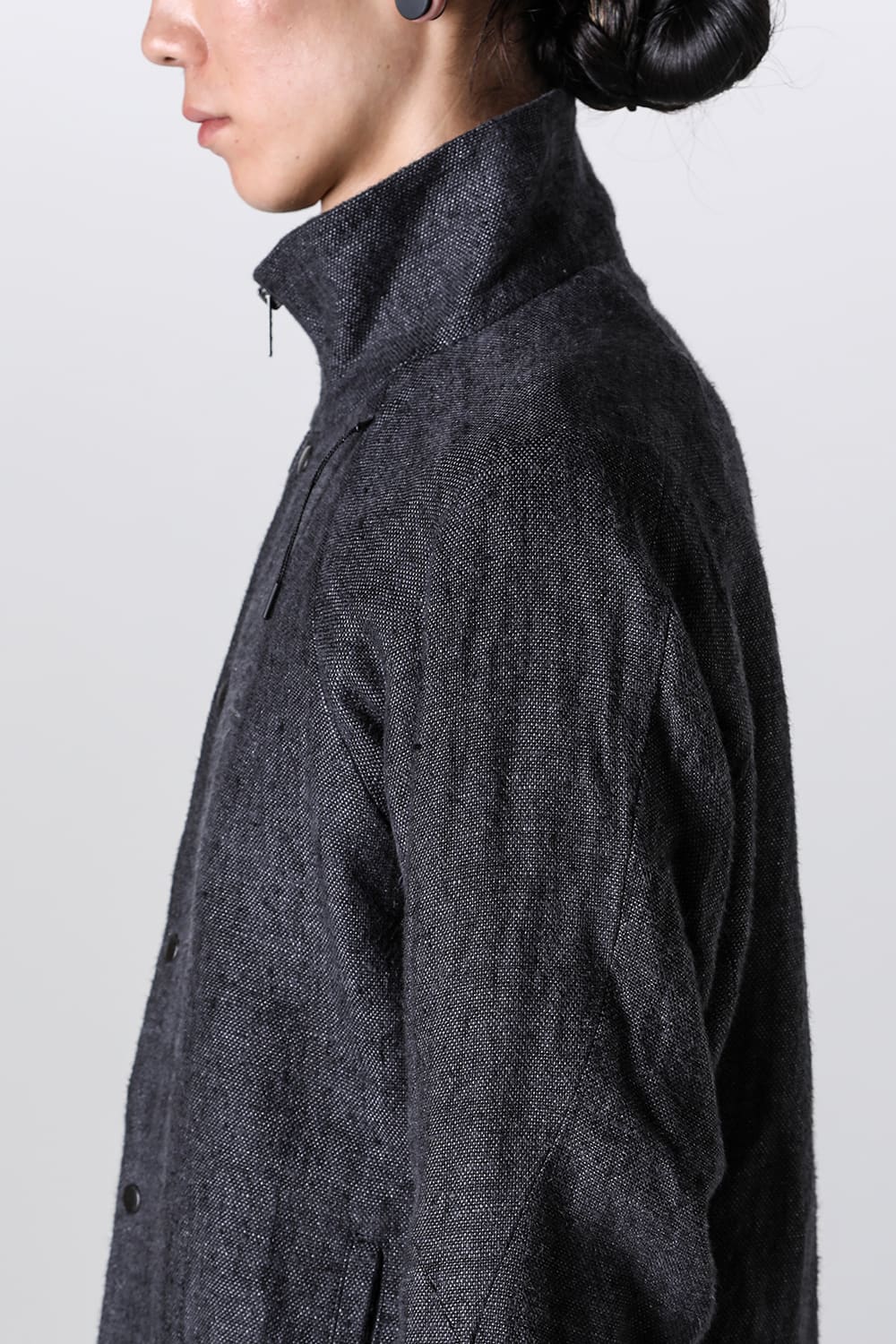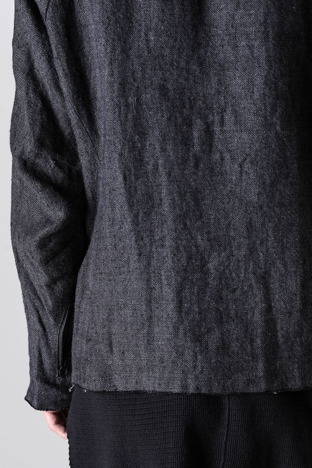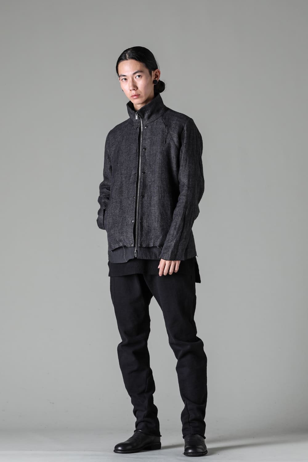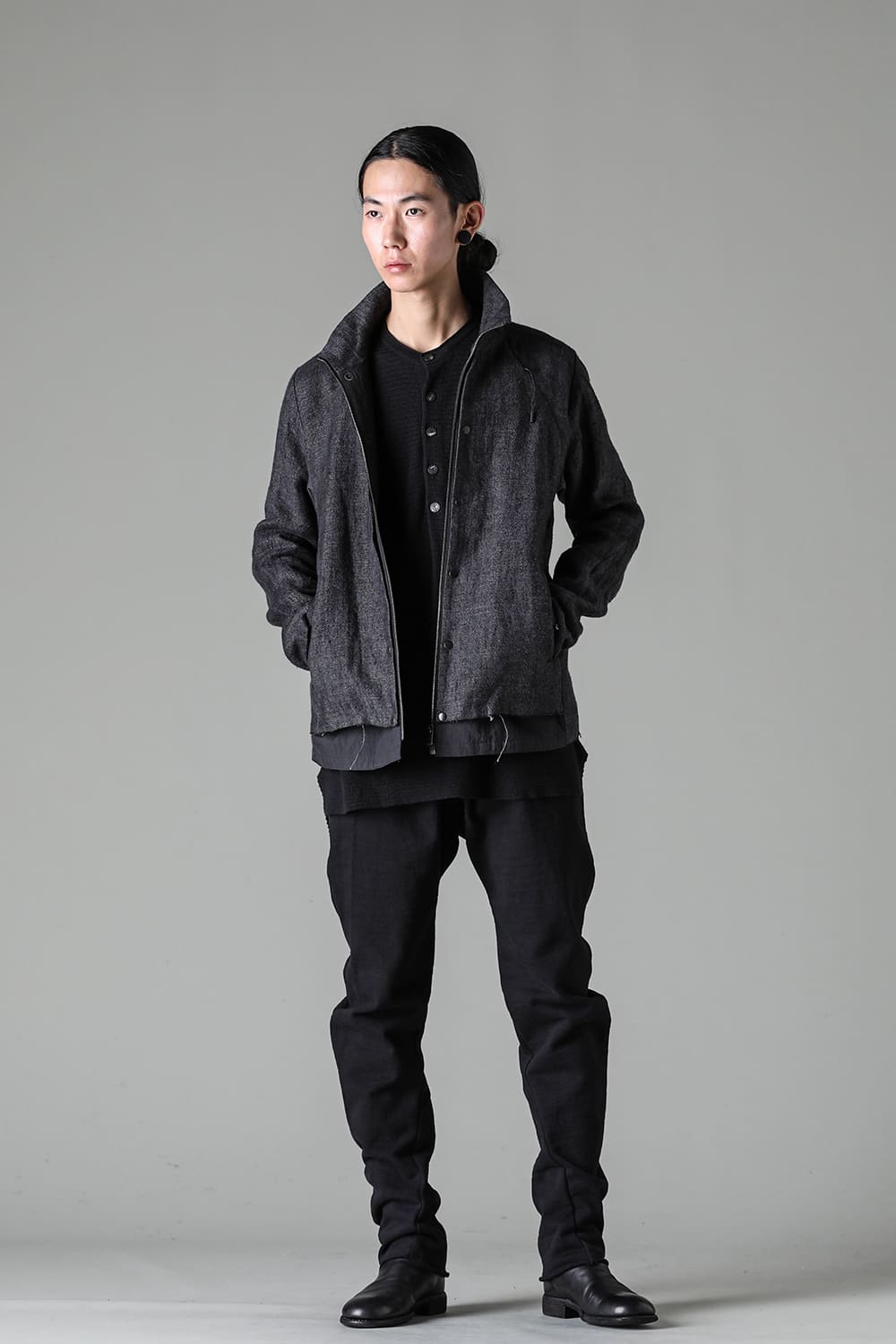 プルプルとした質感でしなるような動きとハリがある太いリネン糸を独自の加工を施し、着用者の皺がそのまま残るようなヴィンテージの雰囲気を持った特別なリネン素材です。