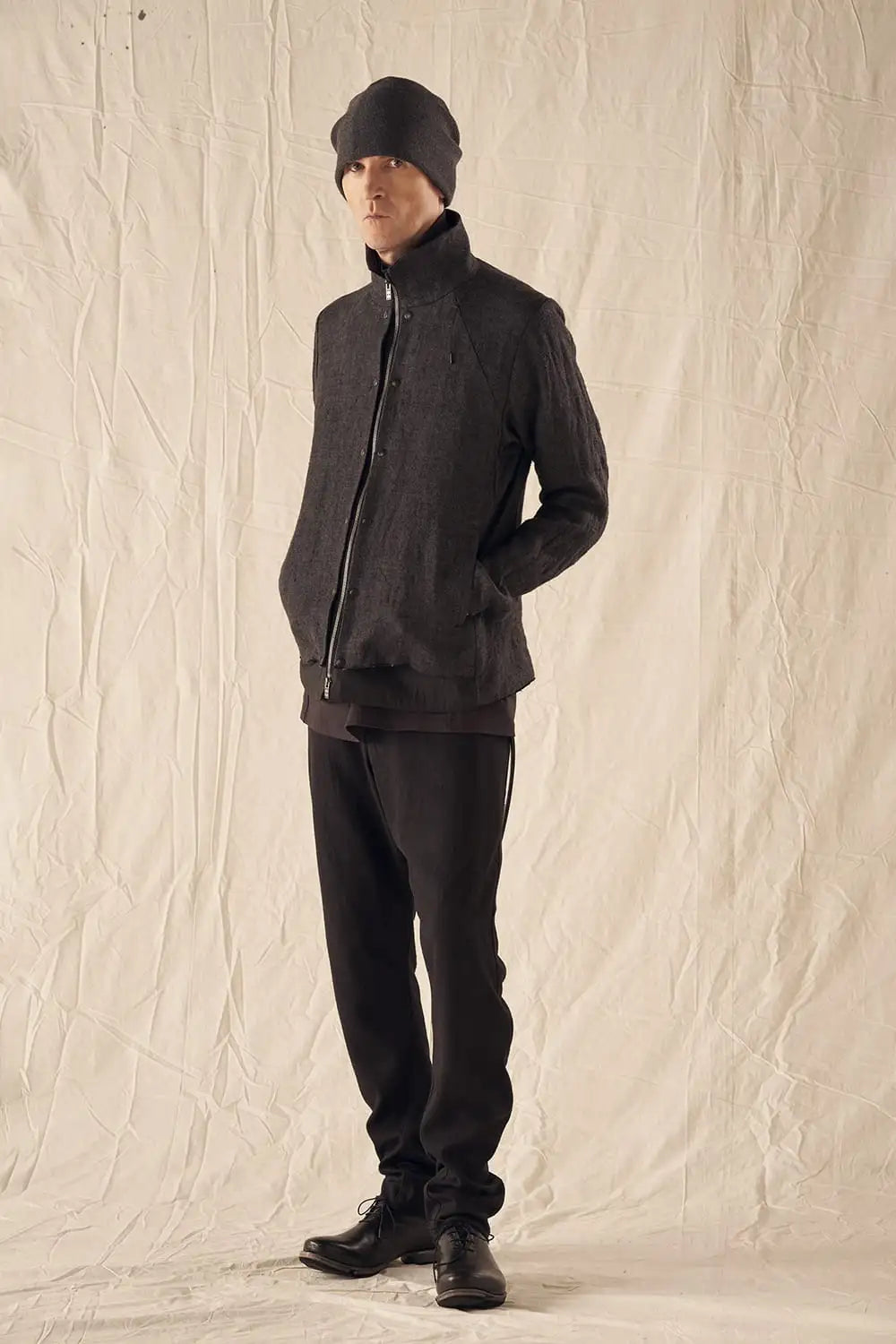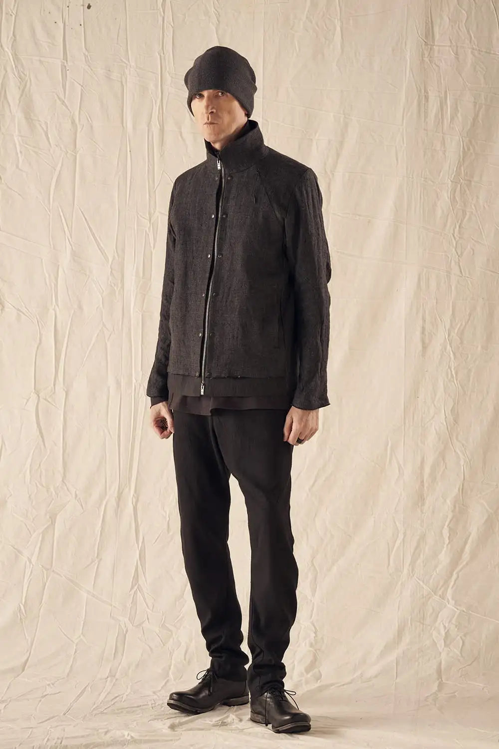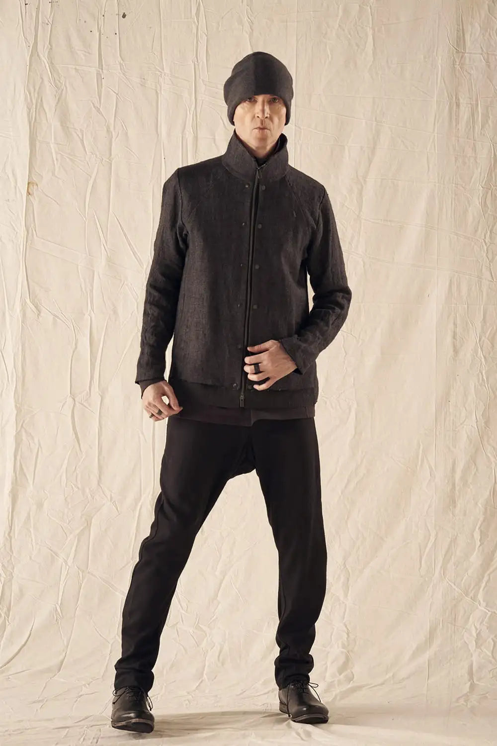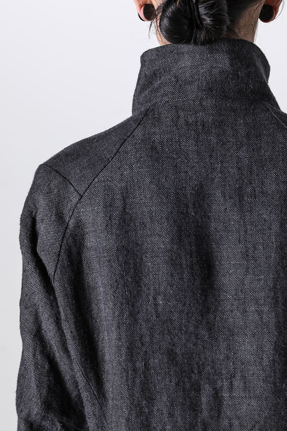 プルプルとした質感でしなるような動きとハリがある太いリネン糸を独自の加工を施し、着用者の皺がそのまま残るようなヴィンテージの雰囲気を持った特別なリネン素材です。