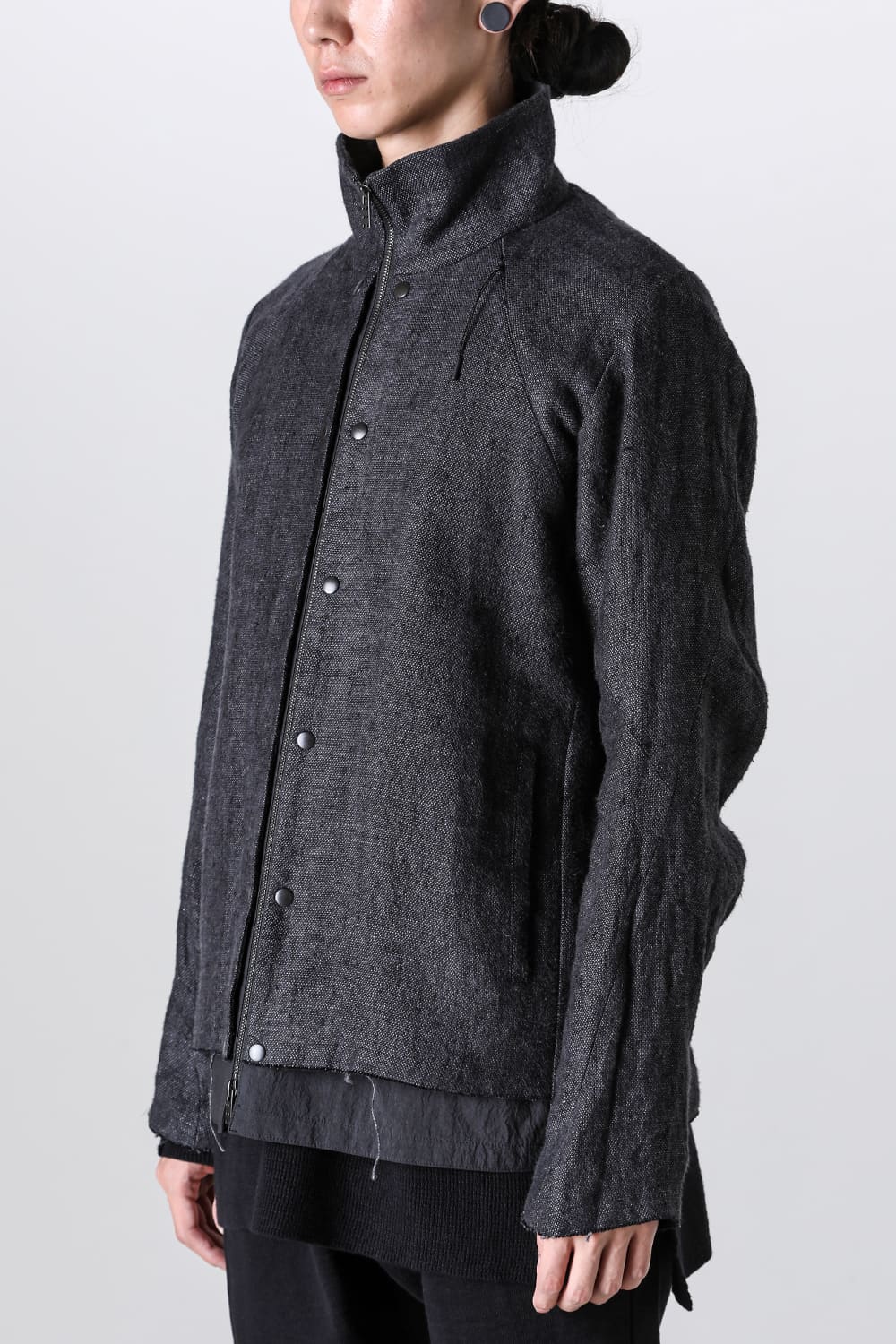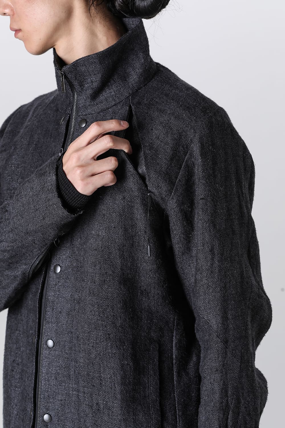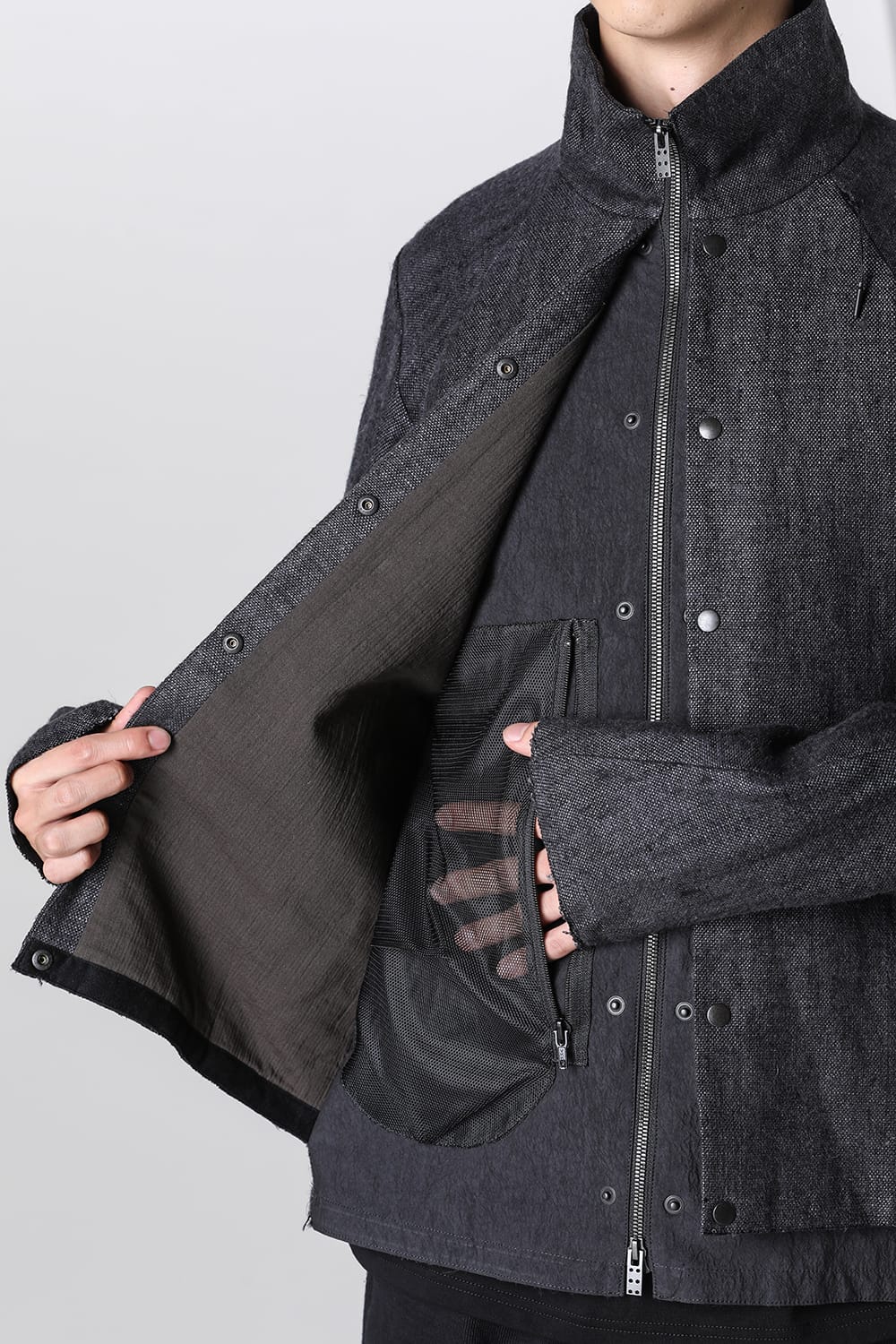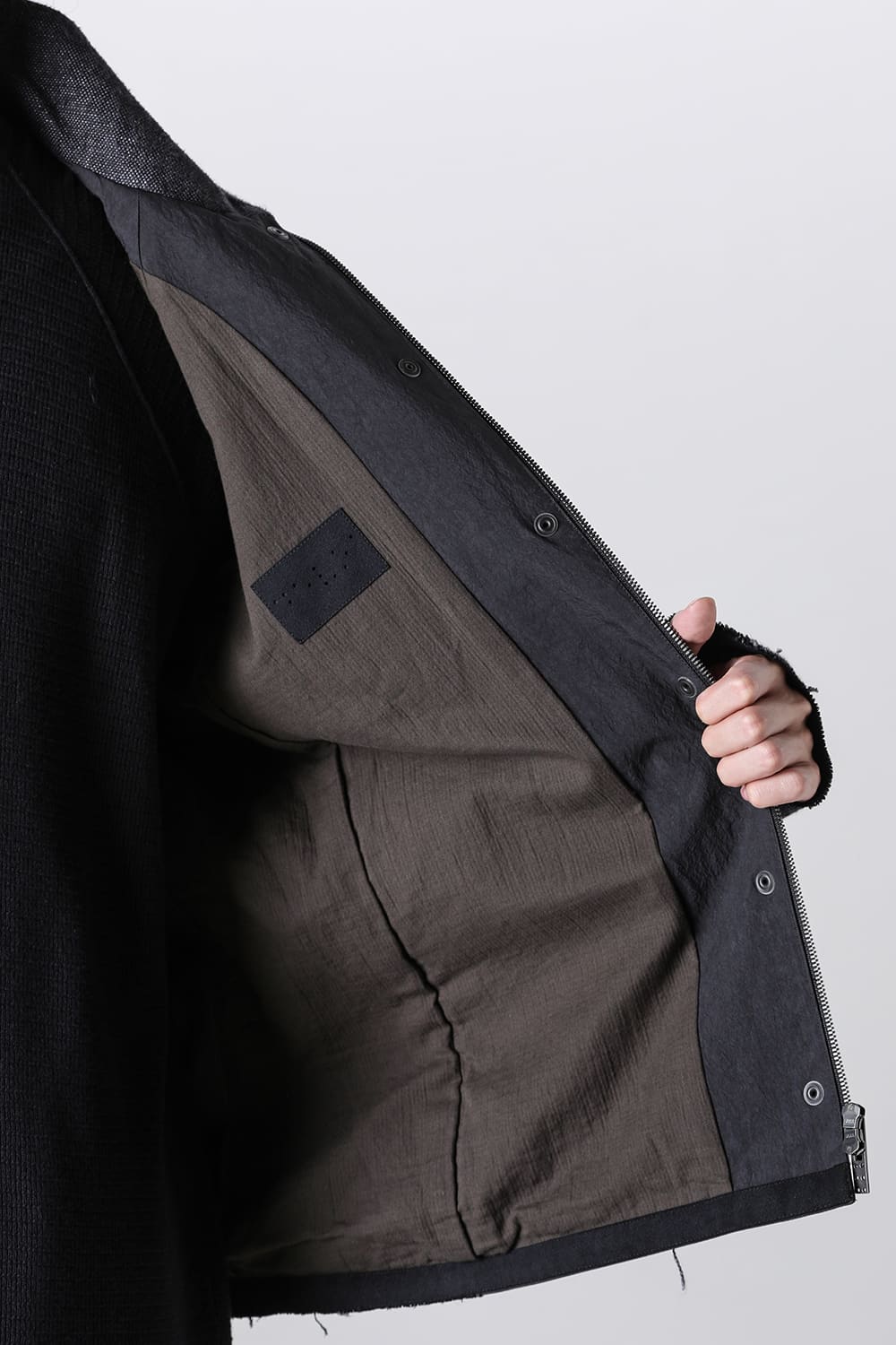 見返しから裾にかけてシュリンク加工をかけたコットンナイロンを使用したジャケット。