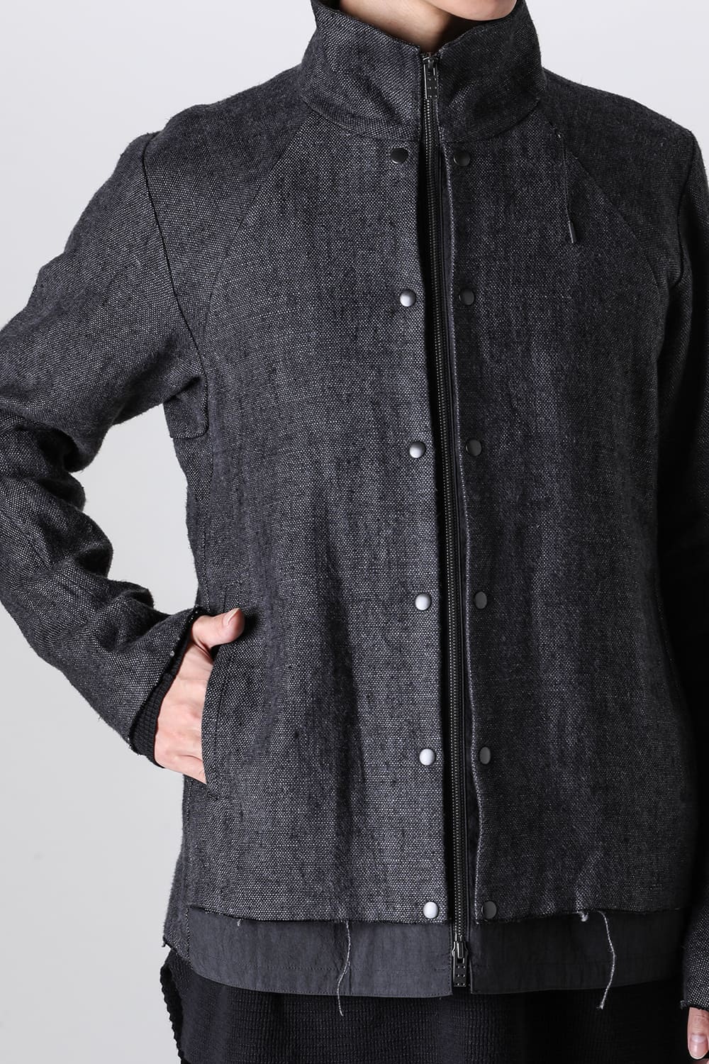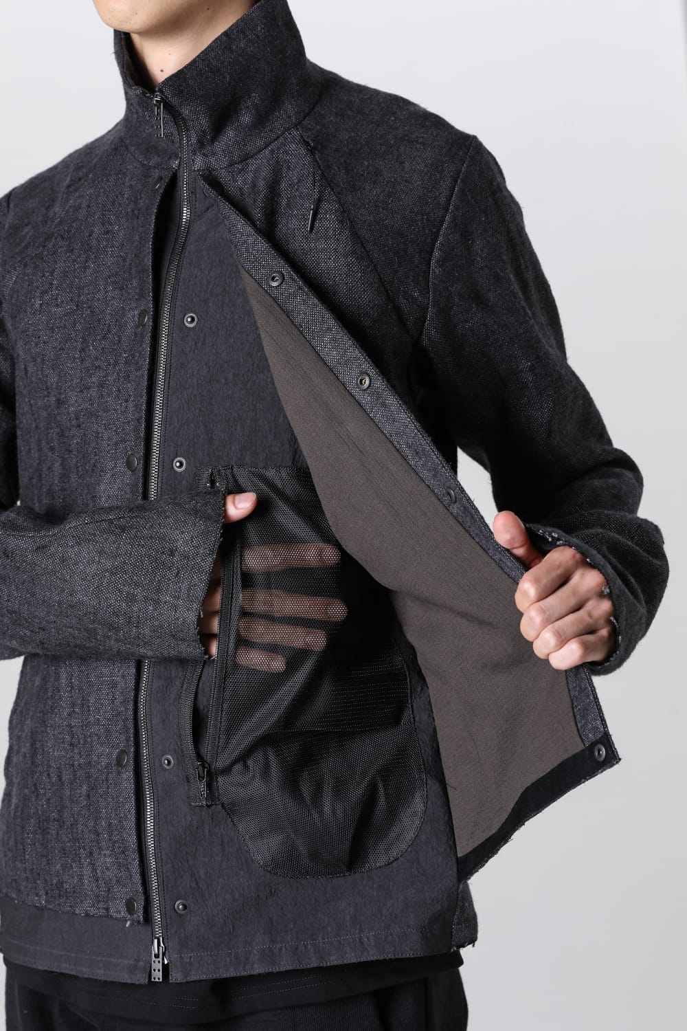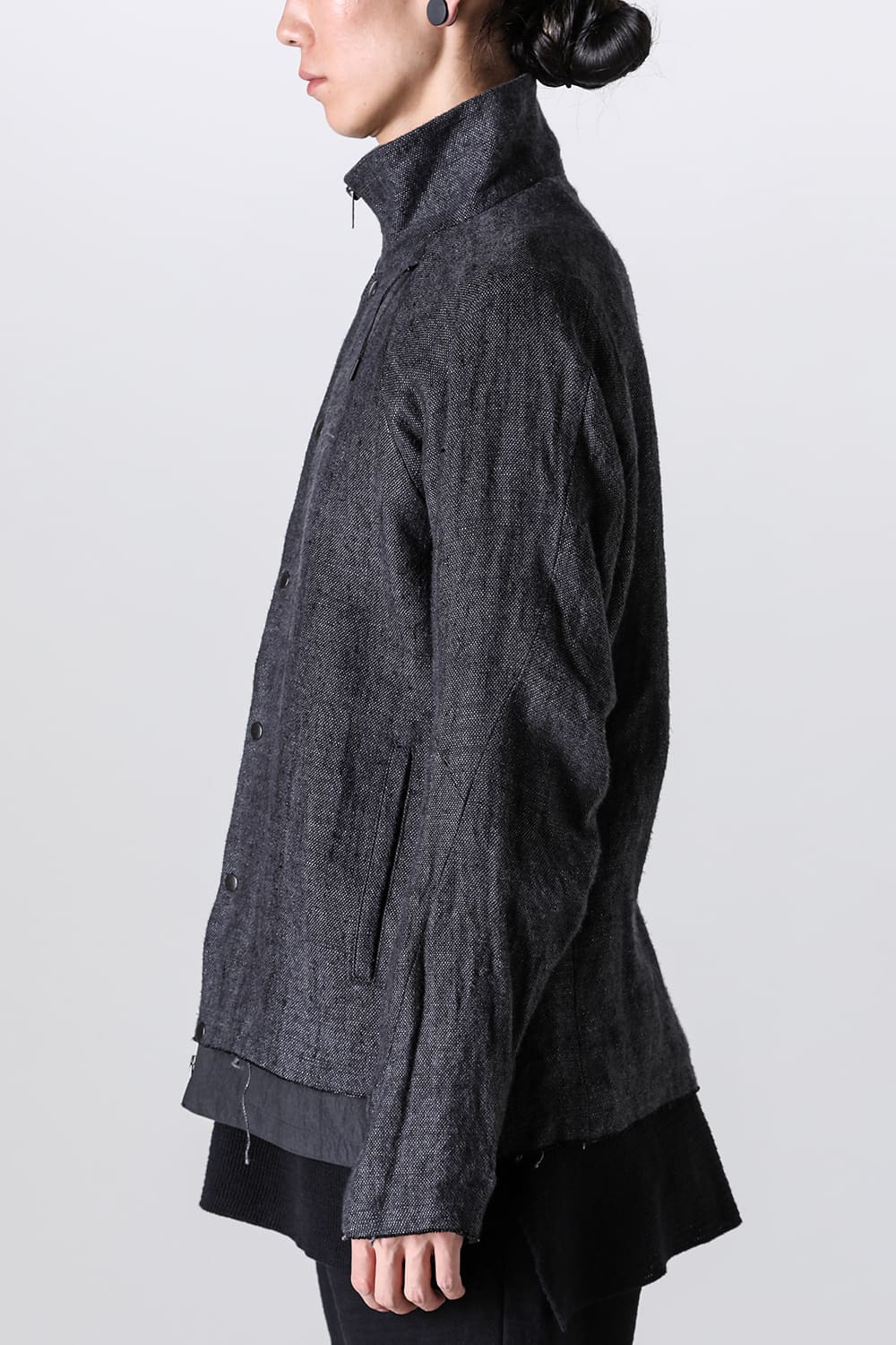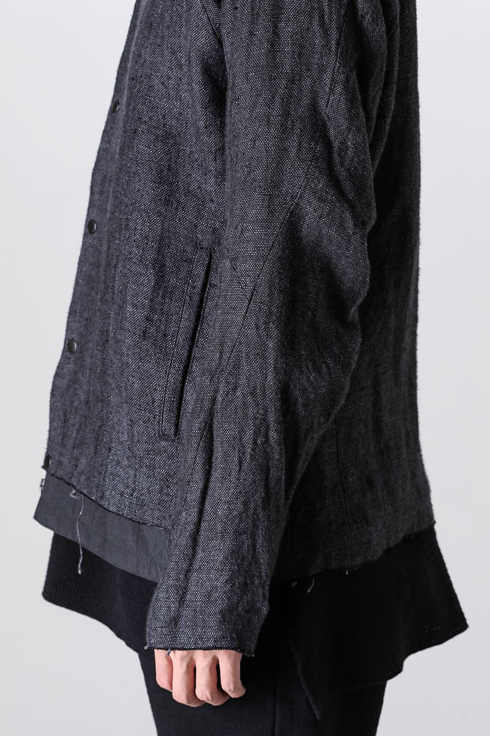 見返しから裾にかけてシュリンク加工をかけたコットンナイロンを使用したジャケット。