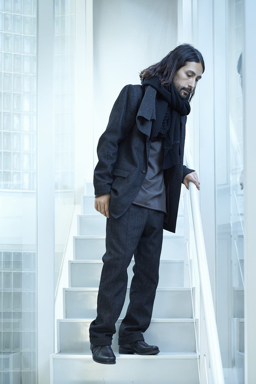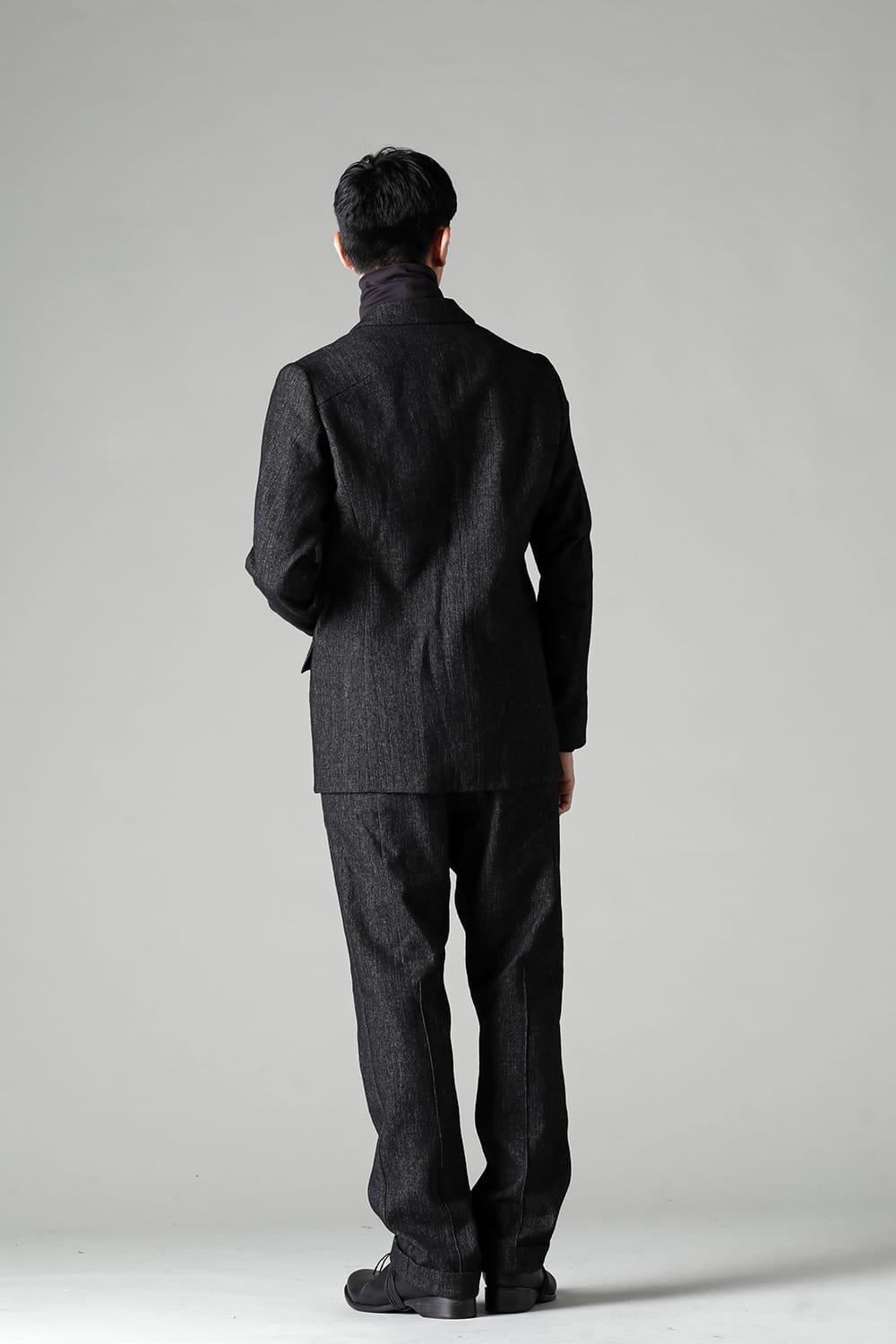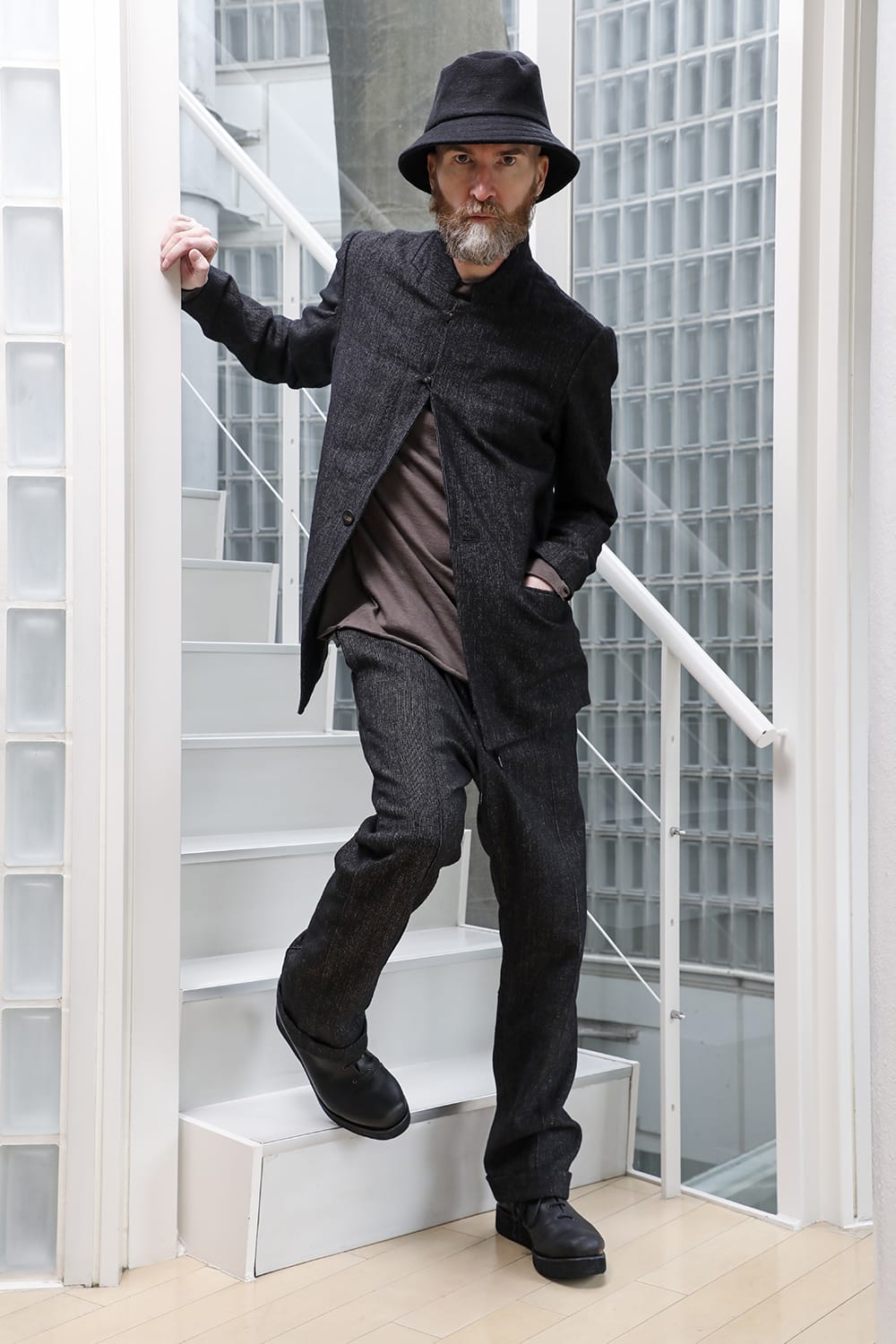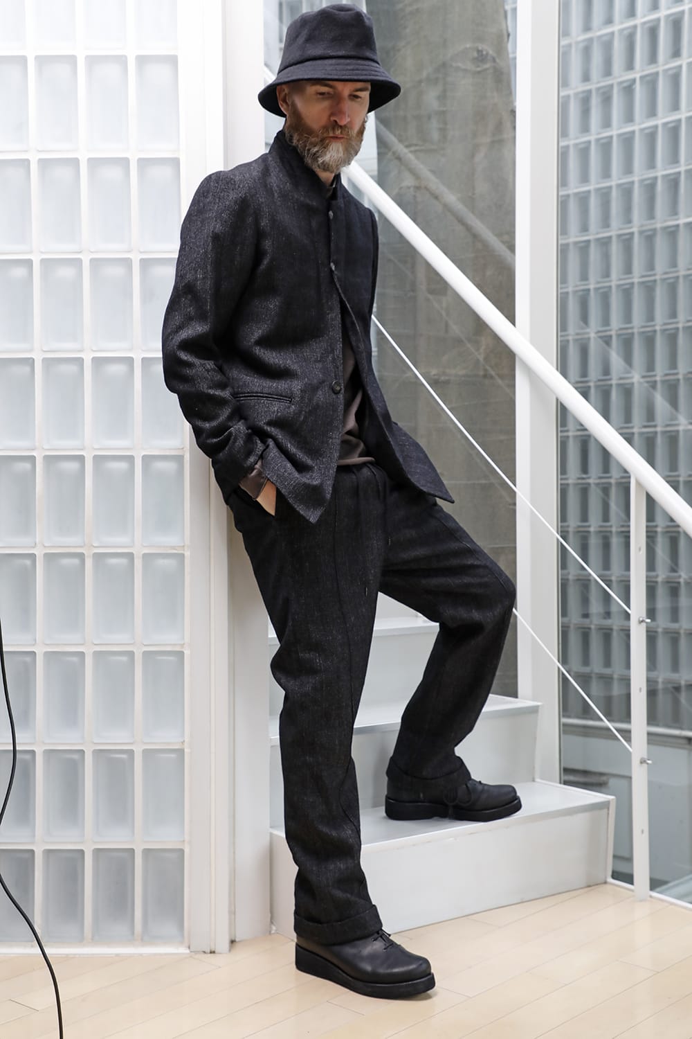 日本の毛織物産地、尾州にてシェトランドウールとリネンを混紡して柔らかさと丈夫さを兼ね備えた生地を制作。