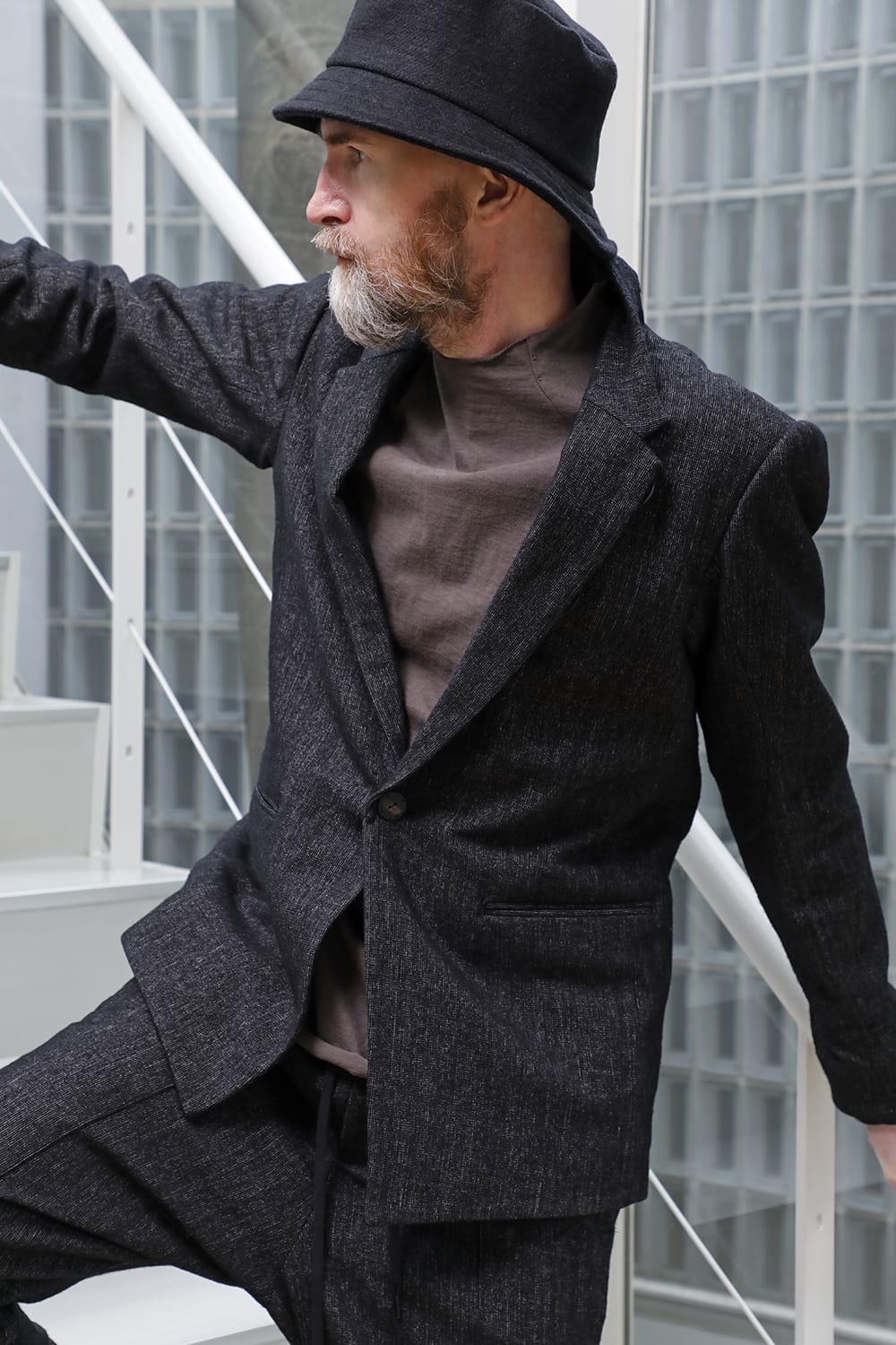 デザインはDEVOA定番の一つボタンのノッチドラペルのクラシックなテーラードジャケット。