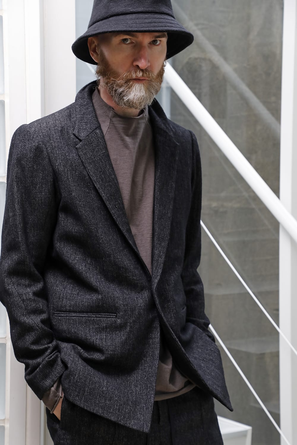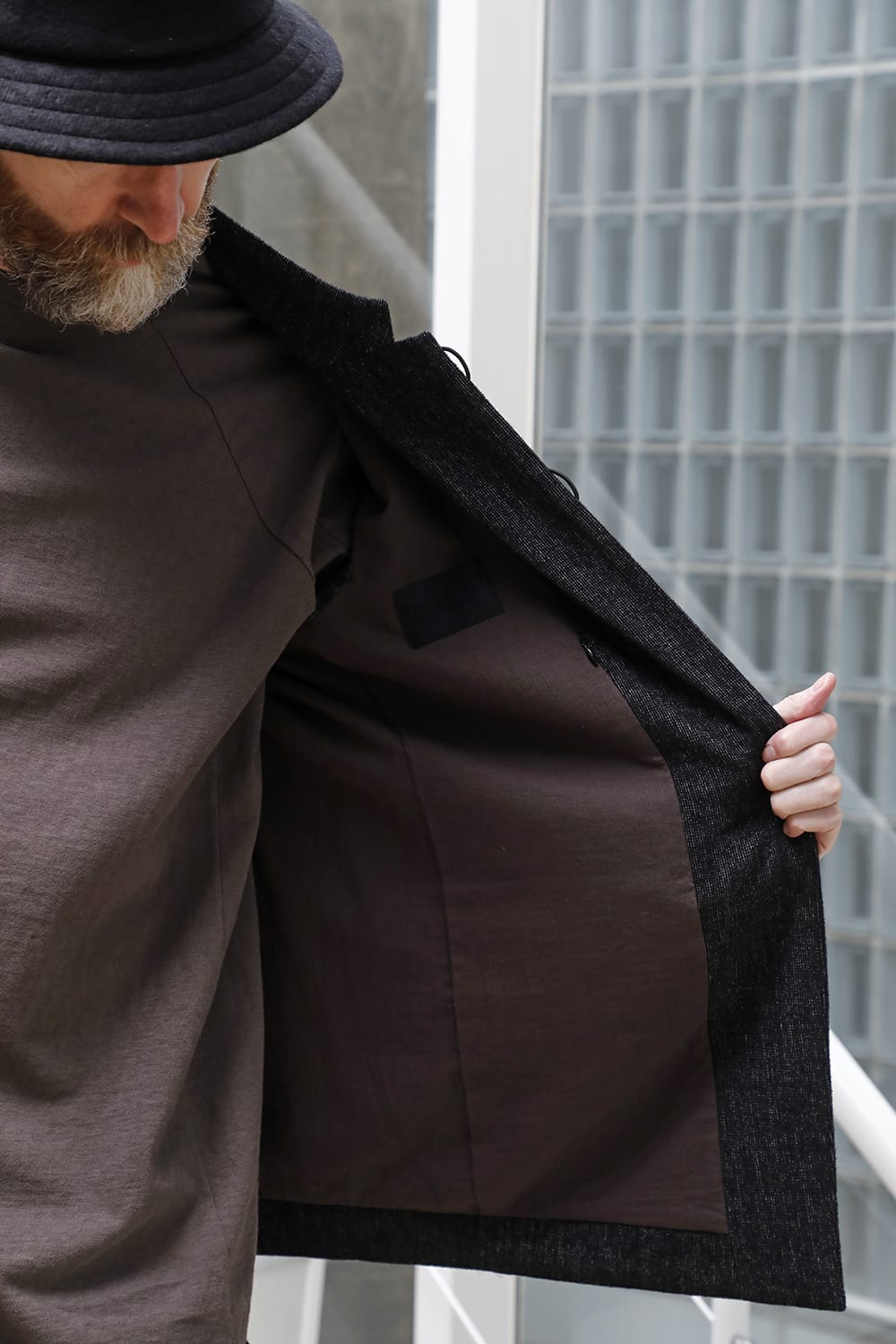 毛芯や薄手の肩バッドが入っていますが着心地は定番のジャケットよりもカチッとしすぎない柔らかい表情で制作されています。